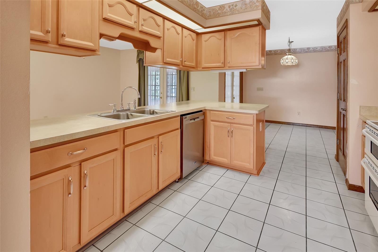 Beautiful Spacious 3 Bedroom, 2 Bath Home Nestled on a High Dry Corner Lot in a Quiet, Peaceful Area of Lovely Homes with No HOA. Living Room, Dining Room, Kitchen Opens to Large Family Room With Beautiful Fireplace and Built In Shelving, Dinette, Split Bedrooms, Multiple French Doors Lead to a Huge 27' X 11" Air Conditioned Florida Room, The Primary Bedroom Has a Walk In Closet With Built In Shelving. Two Car Garage Has Extra Cupboards for Storage and a Sliding Screen Door for those who Like To Work In the Garage. There is a Storage Shed. Newer Dishwasher, Disposal, Water Heater and Air Conditioning. There is a View of a Lake Across The Street. All Information Deemed Correct but not Guaranteed. Buyer and Buyers Agent to Verify. The Home may Be Under Audio/Video Surveillance. Sold As-Is. Call Today to Preview This Beautiful Home!