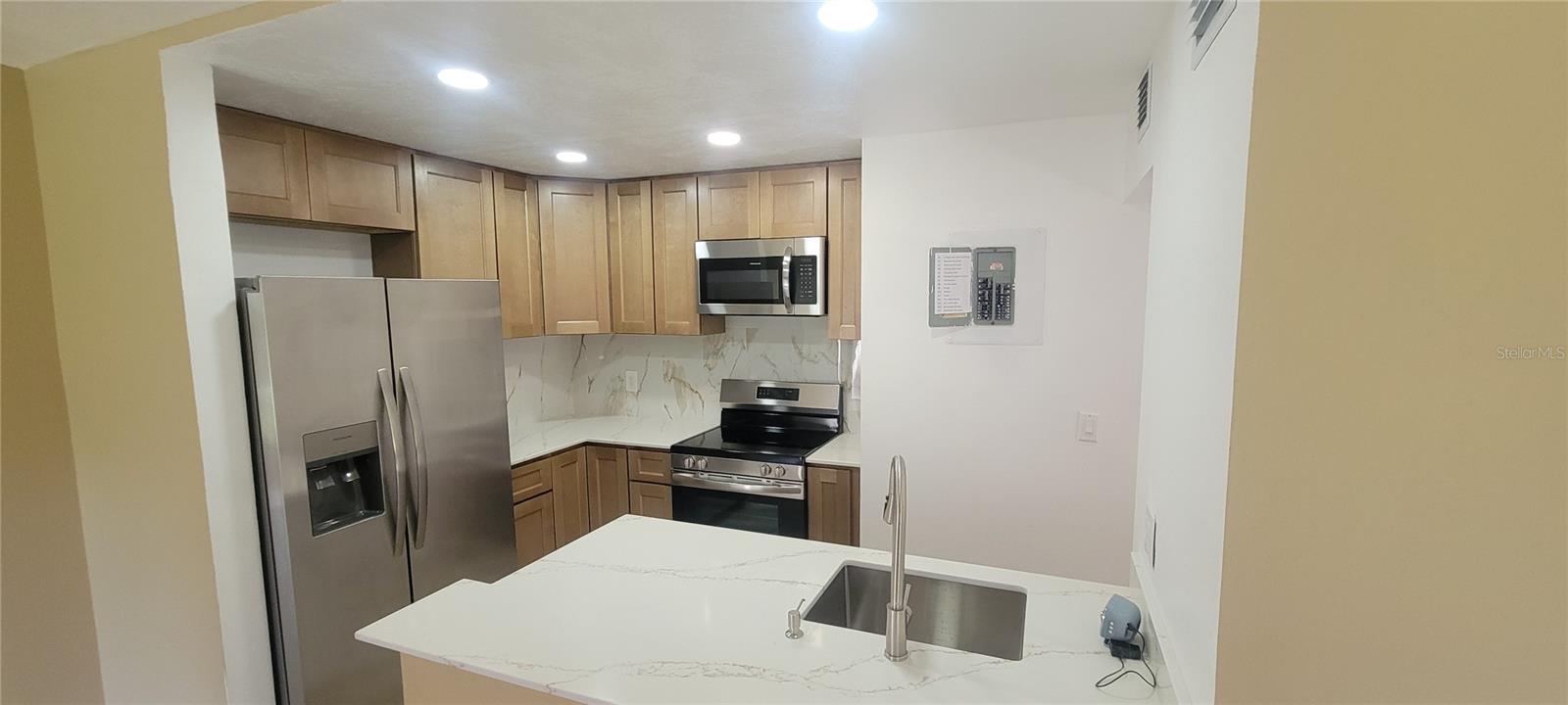 FULLY REMODELED UNIT, CERAMIC TILE THRU-OUT UNIT, FRESHLY PAINTED THROUGH OUT, NEW BASEBOARDS, NEW CEILING FANS, NEW CLOSET DOORS, NEW DOORS, BOTH BATHROOMS REMODELED WITH NEW VANITIES, MIRROR, LIGHT FIXTURE, TOILETS & TILE, NEW KITCHEN CABINETS, QUARTZ COUNTERTOPS, LIGHTING & APPLIANCES, NEW PLUMBING VALVES & FIXTURES, ALL CEILINGS POPCORN STRIPPED W NEW KNOCKDOWN, NEW WINDOWS, NEW WATER HEATER, NEW AC SYSTEM. MUST SEE TO APPRECIATE ALL NEW UPGRADES.