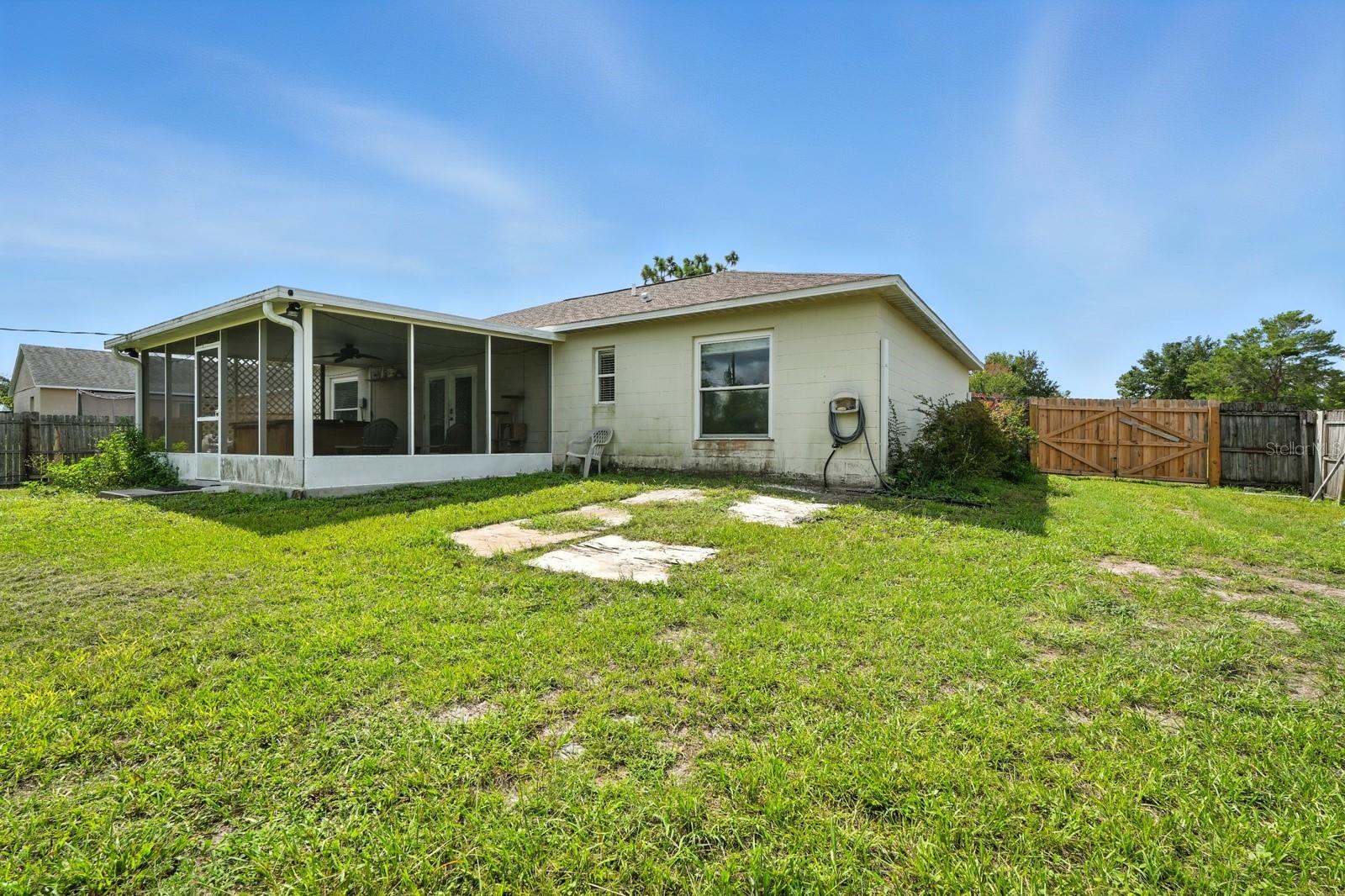 Welcome to this beautifully maintained 3 bedroom, 2 bath home in the heart of Deltona, Florida. Sitting high and dry on a lot that has never flooded, this property offers peace of mind along with modern upgrades, including a brand-new roof in 2023 and a new AC system in 2024. Step inside and you'll be greeted by an open and inviting living room with vaulted ceilings that create a spacious and airy feel. Fresh new carpet is being installed soon, adding a crisp and comfortable touch throughout the home. The kitchen and dining areas flow seamlessly into the living space, while sliding doors open to a screened Florida room, perfect for enjoying your morning coffee or entertaining friends in the evenings. The fully fenced backyard provides privacy and plenty of space for outdoor activities, gardening, or pets to roam freely. A two-car garage adds convenience and storage, rounding out the home's thoughtful features. This home is move-in ready and waiting for its next owner to enjoy. Don't miss your chance to make it yours schedule your private showing today!