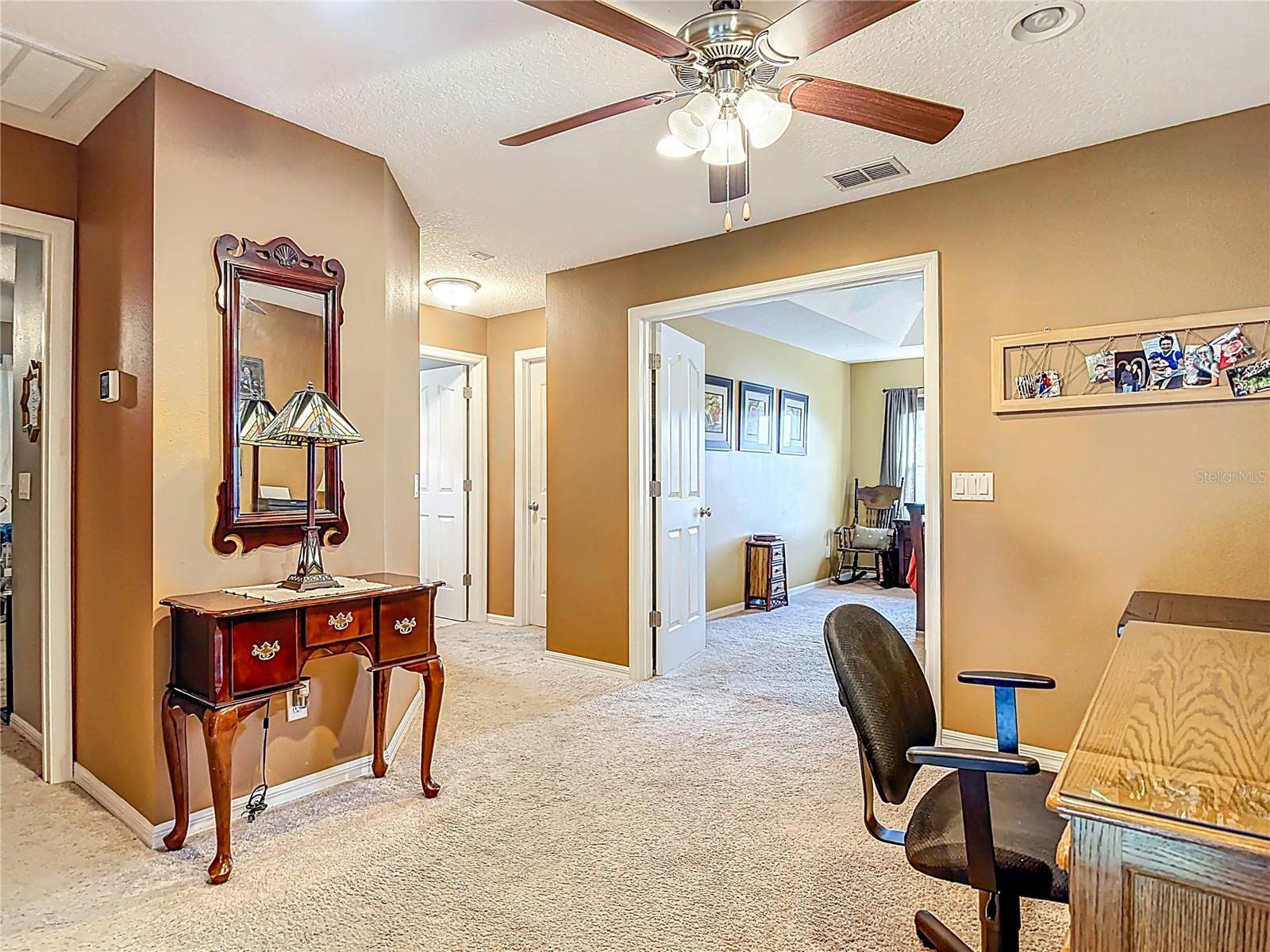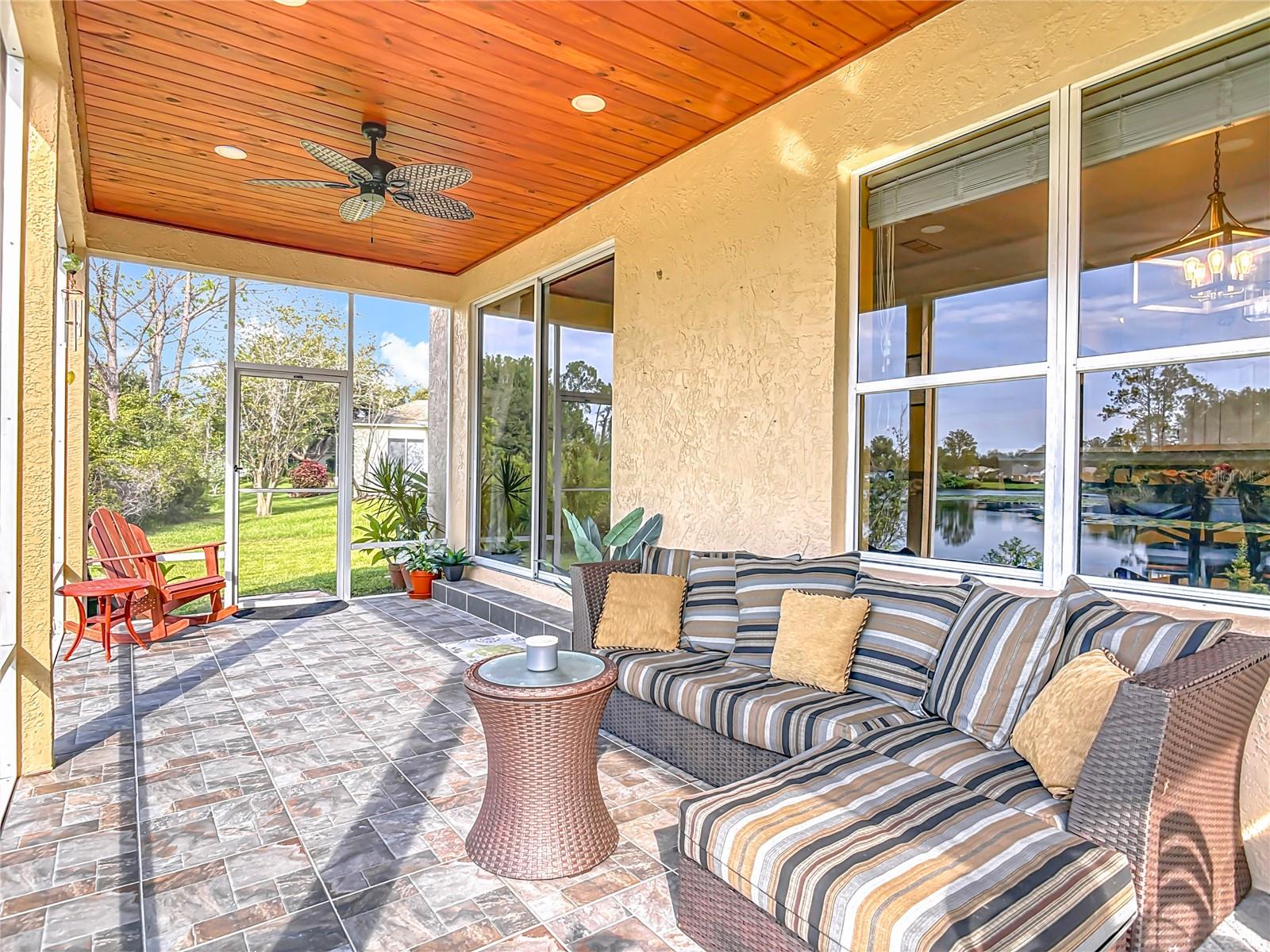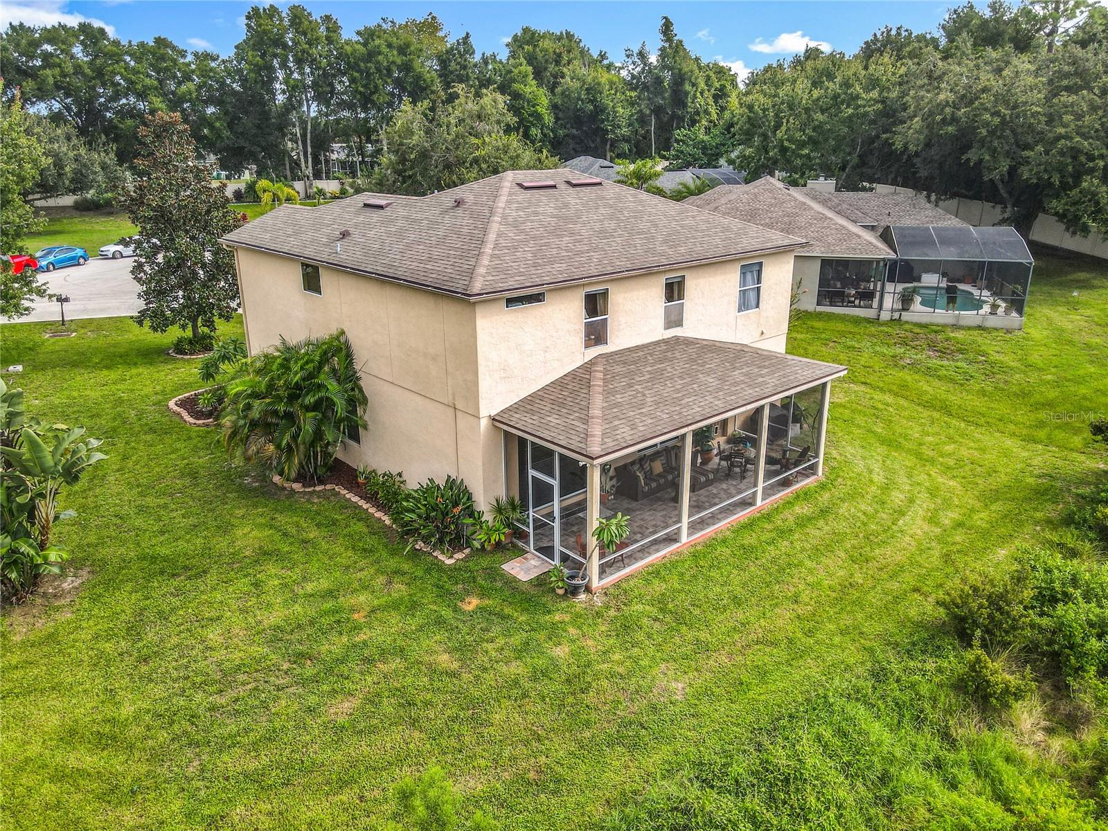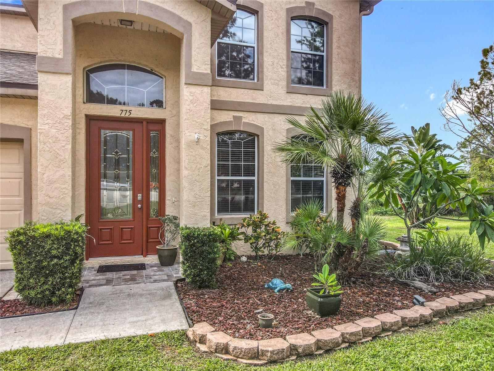 Lakefront Living – 4 Bedrooms + Office – Gated Community – Cul-de-Sac Lot tucked away on a quiet cul-de-sac in a gated neighborhood, this lakefront home offers incredible views and plenty of room to live and entertain. The large, landscaped lot provides wide side yards—perfect for everyone, pets, and outdoor fun. Step inside through the beautiful 8’ leaded-glass front door and into a bright living room with soaring 19’ ceilings and lots of windows. The main level features two separate living areas, a full bedroom and bath, a spacious kitchen and dining area, plus a private office/bonus room with elegant glass pocket doors. The heart of the home is the 540 SF open kitchen, family, and dining space. With a new gas range, dining bar, and direct access to the screened lanai, it’s an ideal gathering place. The lanai offers serene lake and nature preserve views, tile floors, ceiling fans, and a wood tongue-and-groove ceiling—true Florida living indoors and out. Upstairs you’ll find a versatile loft, the primary suite, and two additional bedrooms with a full bath. The primary suite features coffered ceilings, lake views, a private hall leading to an oversized 11’ walk-in closet with natural light, and a large ensuite with double vanities, soaking tub, and separate shower. All guest rooms are generously sized with ample closet space. RECENT UPGRADES & FEATURES: ROOF (5 years), AC UNIT (1 year), NEW WATER HEATER, decked attic for storage, natural gas for stove/dryer/water heater, and reclaimed water for irrigation. The private gated neighborhood is location centric, convenient to I4, shopping, and restaurants.