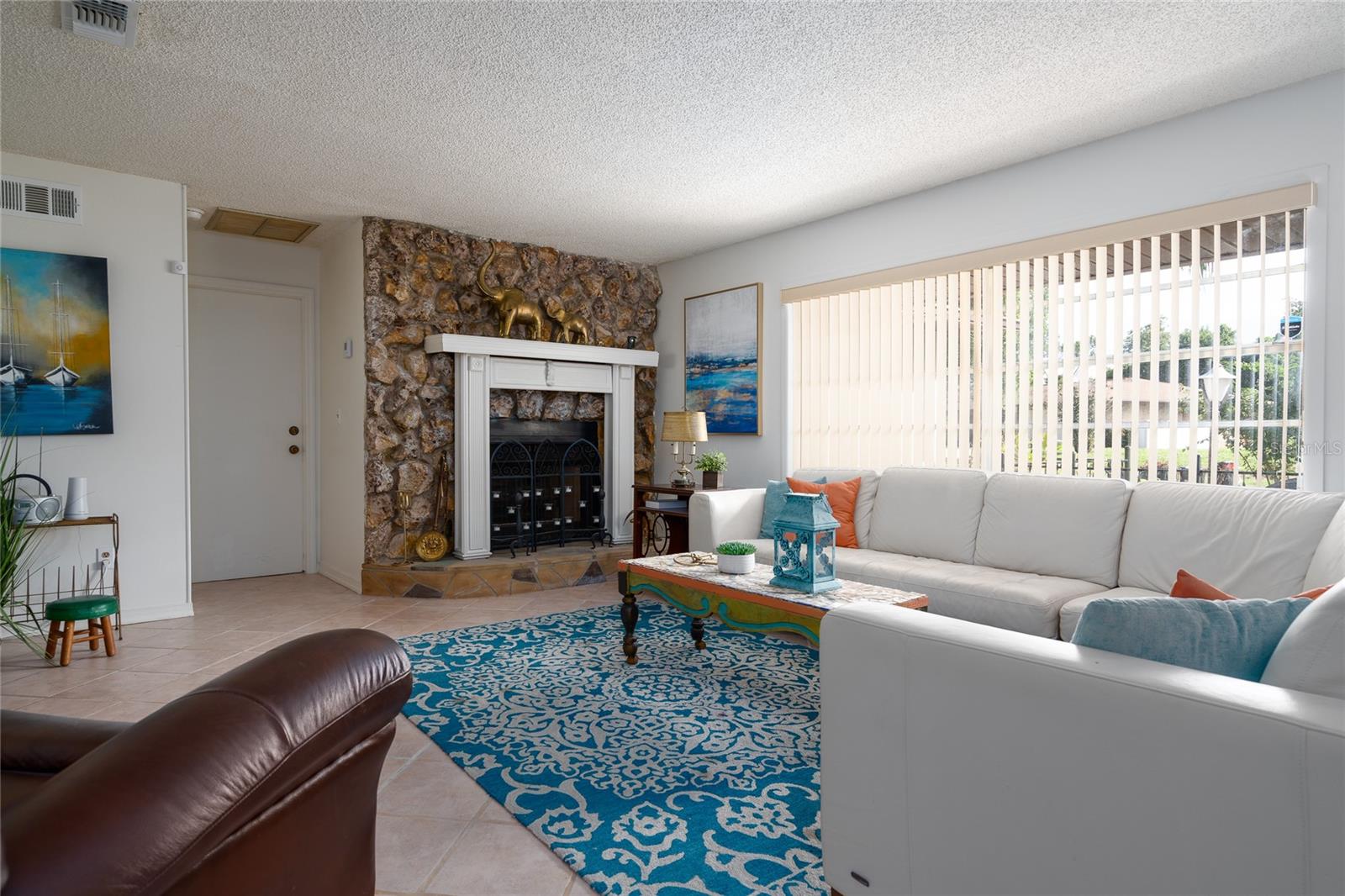 **Charming, Well-Maintained Home in a Prime Location!** This one-owner, meticulously cared-for home offers 1,611 square feet of comfortable living space, featuring three spacious bedrooms and 2 full bathrooms, with an additional 558 square foot LARGE FLORIDA ROOM. Featuring an open floor plan with tile flooring throughout the main areas, this home combines functionality and warmth. The inviting living room is bright and airy, showcasing a beautiful stone wood-burning fireplace with a mantle—perfect for cozy evenings. A large tiled foyer with a coat closet welcomes you in, setting the tone for the thoughtful layout. A smart thermostat has been installed and can be conveniently controlled from anywhere. The kitchen includes a charming window box over the sink with a tranquil view of the lush backyard, a breakfast bar, tiled dinette area, and sliding doors that lead to an expansive 31’ x 18’ Florida room. This light-filled bonus space features 15 windows, carpeted flooring, four ceiling fans, and panoramic views of the tree-filled yard—ideal for entertaining or relaxing while watching the Florida sunsets year-round. The primary suite offers generous space, newly installed luxury vinyl plank flooring, a walk-in closet, and a private ensuite with a tub/shower combo. Two oversized guest bedrooms also feature new luxury vinyl plank flooring and double built-in closets. Enjoy mornings or evenings on the covered front patio (over 21 feet long), perfect for sipping coffee, reading, or winding down the day. Should you be looking for a private school for the children, there is one a few doors down! Additional highlights include a 2-car garage, a roof replaced in October 2020, and a lush backyard, waiting for your ideas. **Note:** Home is under audio and video surveillance—please be mindful during showings. Please note that all information and measurements are provided for accuracy but are not guaranteed. Buyers and their agents should verify all property details, including zoning, schools, HOA rules, pet policies, and other potential uses.