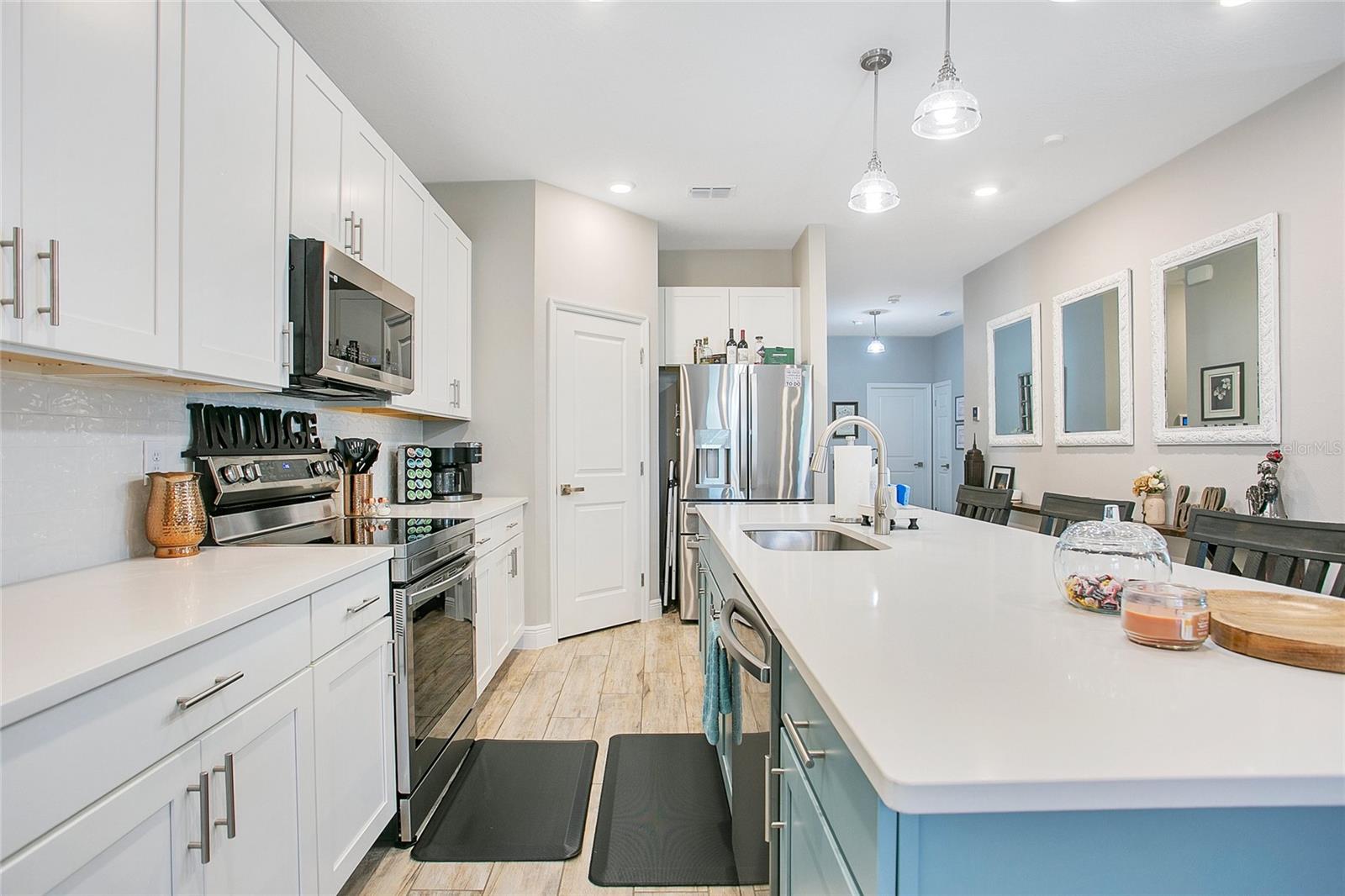 Owners are motivated. Don’t miss this beautiful home in one of the sought-after Hampton Oaks neighborhoods with low HOA fees. This stunning home offers modern elegance and spacious living. Step inside to find beautiful wood-look flooring throughout. Enter your open-concept family room and beautifully designed kitchen. This chef's kitchen, in the heart of the home, features quartz countertops, 42” cabinets, stainless steel appliances, a pantry closet, a large center island, and ample counter and cabinet space. Overlooking a perfectly appointed dinette area, the kitchen features a French door with built-in blinds and access to a screened-in, epoxy-floored lanai with expansive views of the backyard, ideal for entertaining or relaxing. An outdoor kitchen stubout is in place, and a gazebo offers a perfect place to relax and enjoy the beautiful breeze all year, as you look out to the view of the water/conservation area. The primary en-suite offers a private retreat with plenty of natural light, dual sinks, an enclosed shower with a rain showerhead, and a water closet. The three additional bedrooms (one currently set up with speakers for a movie room) are located in the front of the house. This split-floor plan is ideal for any growing family or a work-from-home office. Schedule your viewing today. Hampton Oaks is conveniently located with quick access to I-4 via Saxon Blvd and an easy commute to Orlando or Daytona Beach. This home is minutes from local shopping, dining, and scenic lakes.