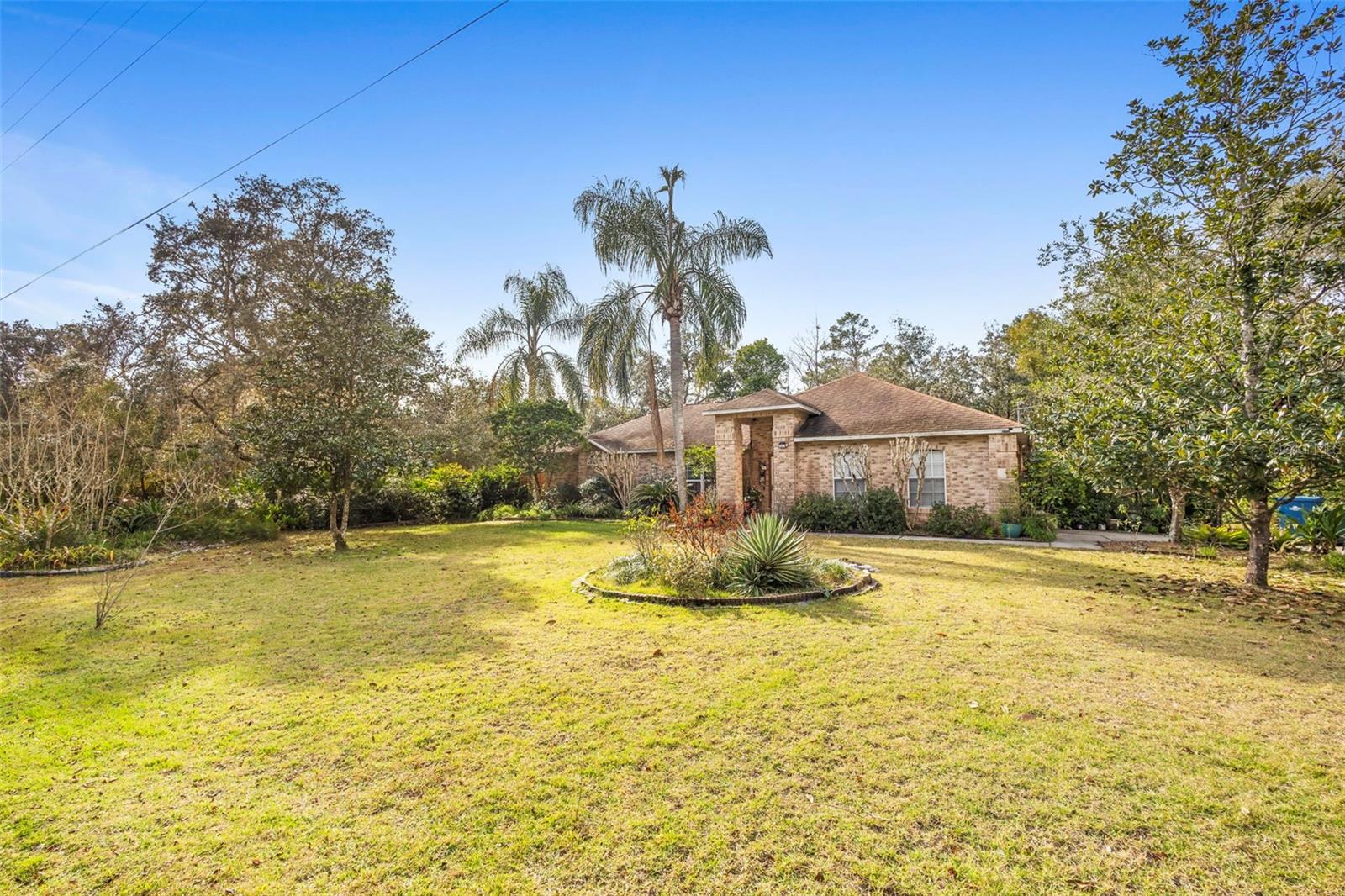 Seller is offering a $20,000 CREDIT toward a NEW ROOF, which includes reinstallation of the fully paid-off solar system. Combined with a recent $25,000 price reduction, this is an incredible value - act quickly! This classic brick beauty sits on a gorgeous 1.22 acres (zoned A-3), privately tucked away in a lovely neighborhood. If privacy while remaining close to everything is what you're looking for, this is the home for you!! Enjoy the benefits of a FULLY PAID-OFF Whole Home Solar System, well water with a Brand-New Filtration System and Newer Energy-Efficient Windows (3 years old). An extended double-entry driveway and 2-car garage provide plenty of space and convenience. With a little TLC, you can bring the lush landscaping and backyard garden back to life and create your own magical Florida oasis. Inside, this home features a desirable split floorplan with tile and wood laminate flooring throughout—no carpet. You’ll love the separate living and family rooms, an updated kitchen with tall wood cabinets for extra storage, and beautiful granite countertops that let you cook while overlooking the serene backyard. Host gatherings in the formal dining room or enjoy everyday meals in the cozy dinette area. The wood-burning fireplace adds charm and warmth to the family room on cool Florida winter nights, and the spacious screened-in porch offers the perfect spot to relax and enjoy the peaceful surroundings. All of this while being less than a 5-minute drive to I-4 and Publix, with endless shopping and dining options nearby. Plus, you’re just 30 minutes to Florida’s beautiful beaches and 45 minutes to Orlando. This home truly offers the best of privacy, convenience, and classic charm.