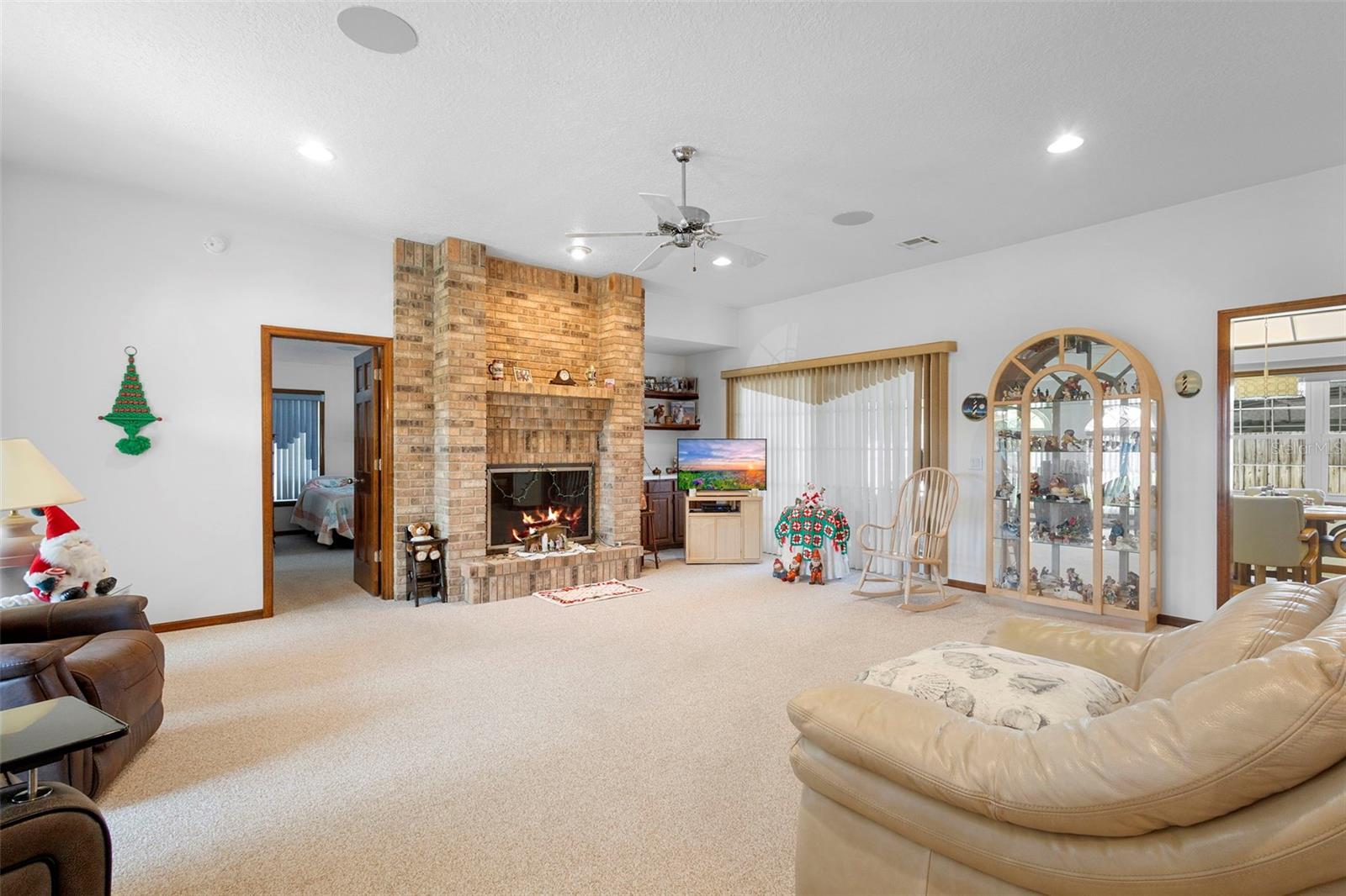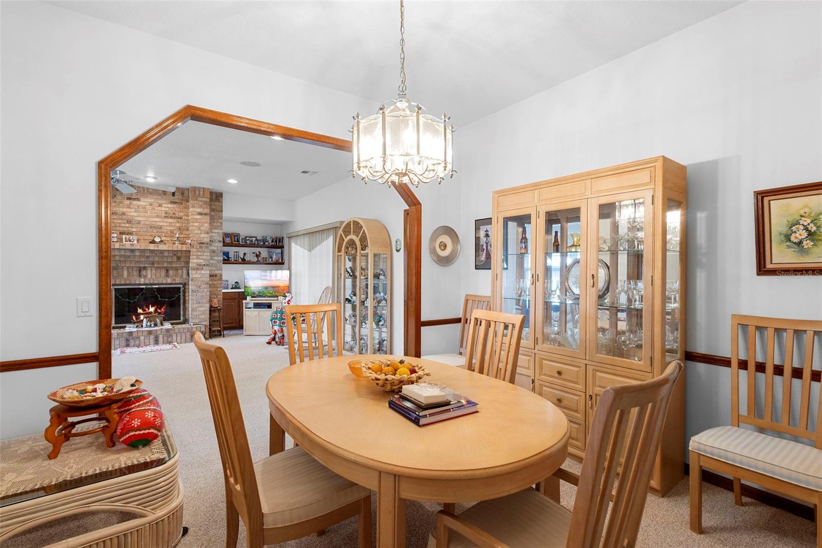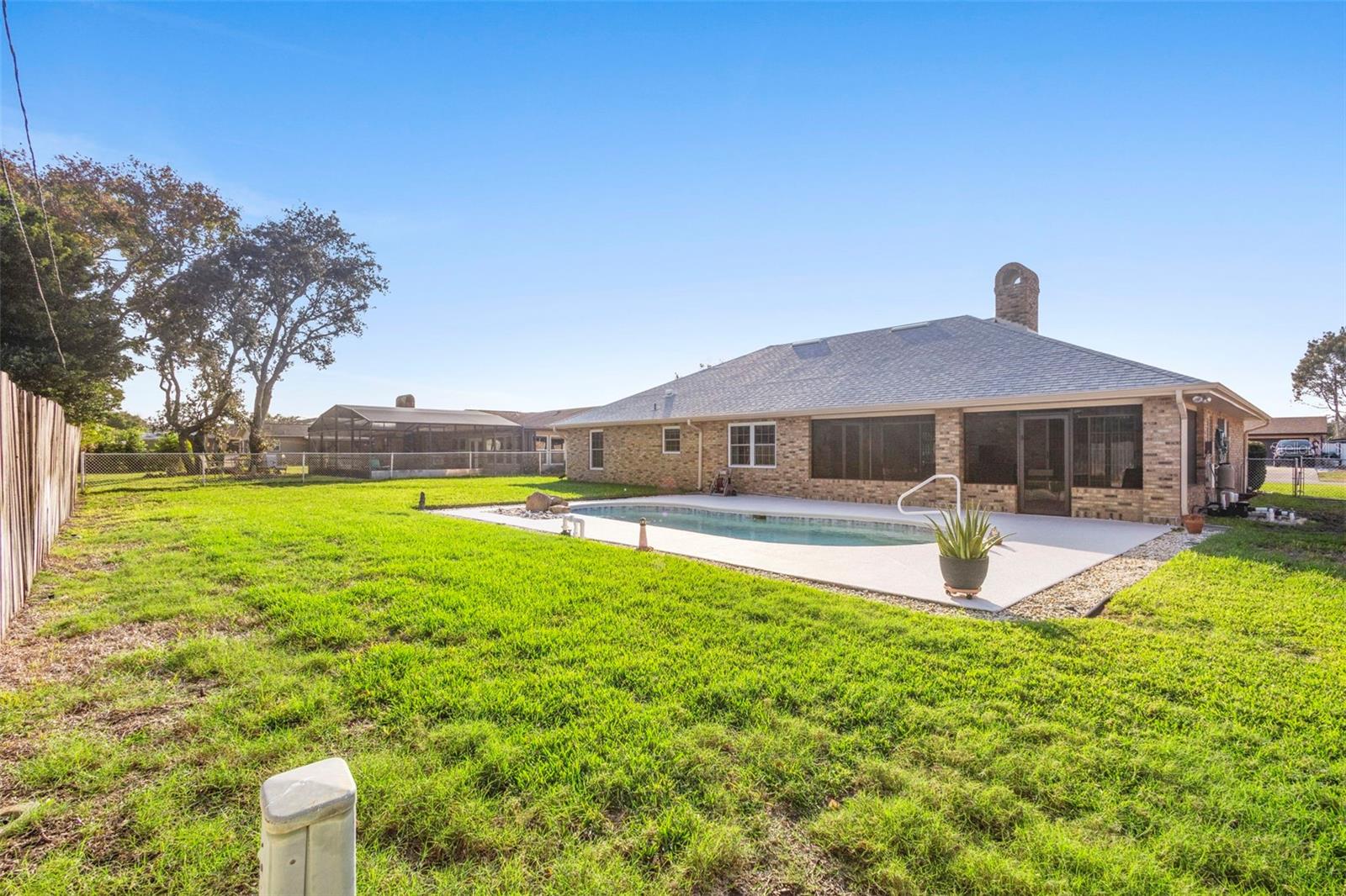 This beautiful 3 bedroom, 2 bath home sitting pretty on nearly a 1/4 acre complete with updates galor, fanced in yard and a sparkling self cleaning pool! Walk through the foyer into the expansive living room with a stately brick fireplace that can be electric or wood burning. With both a formal dining room with chair rail and a fully appointed kitchen with wood cabinets and a eat in kitchen with a bar, it is perfect for all of your entertainment needs. Spacious first floor primary bedroom with en suite as well as two other well appointed bedrooms perfect for guests or flex spaces. Looking for Florida living, look no further than the huge screened room overlooking the gleaming pool in the huge back yard perfect for outdoor living. Updates abound: new roof 2020, new windows, doors, electric in the last 5 years. This Deltona home is only missing one thing - you! So reach out today for your own private showing!