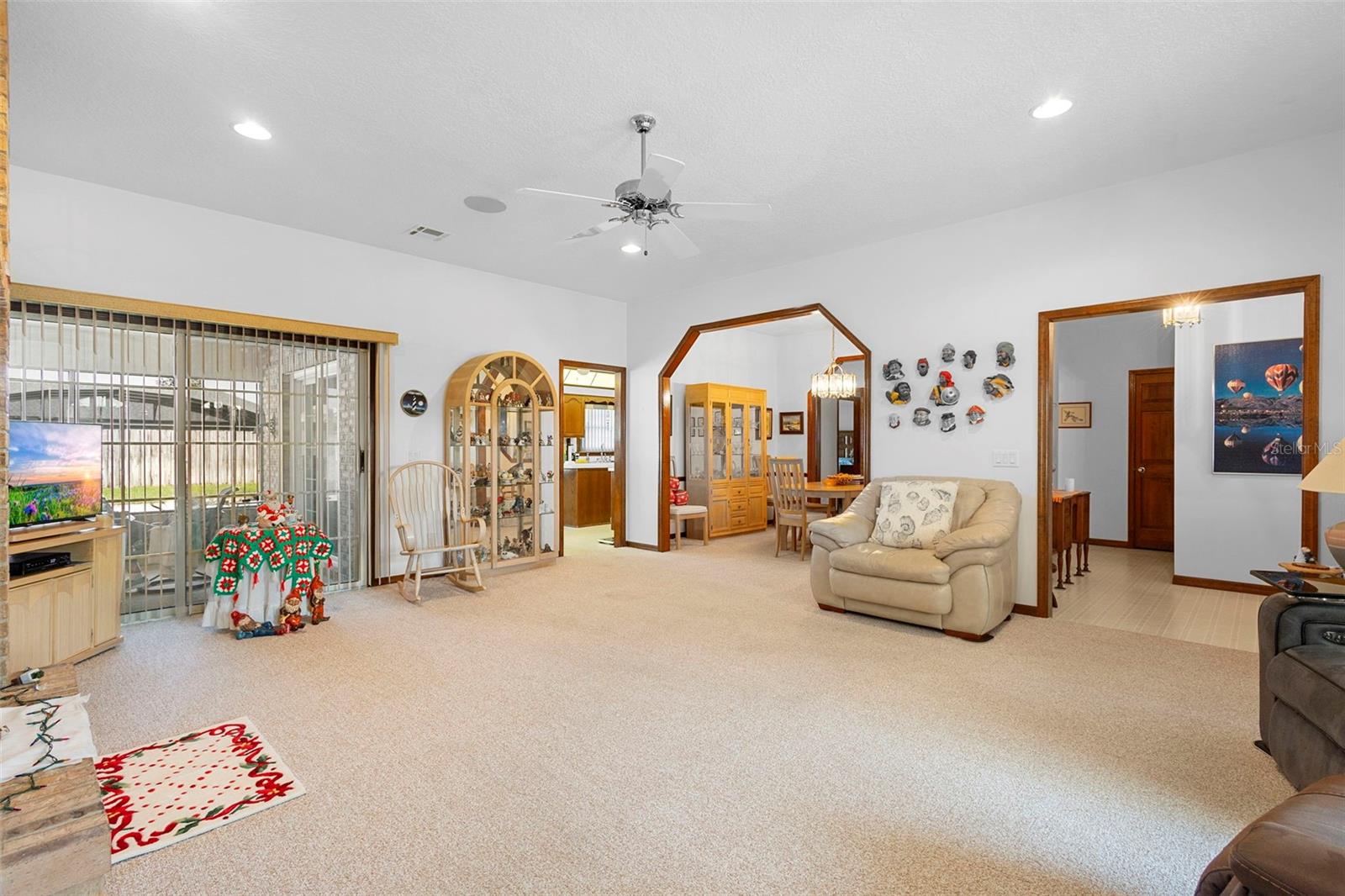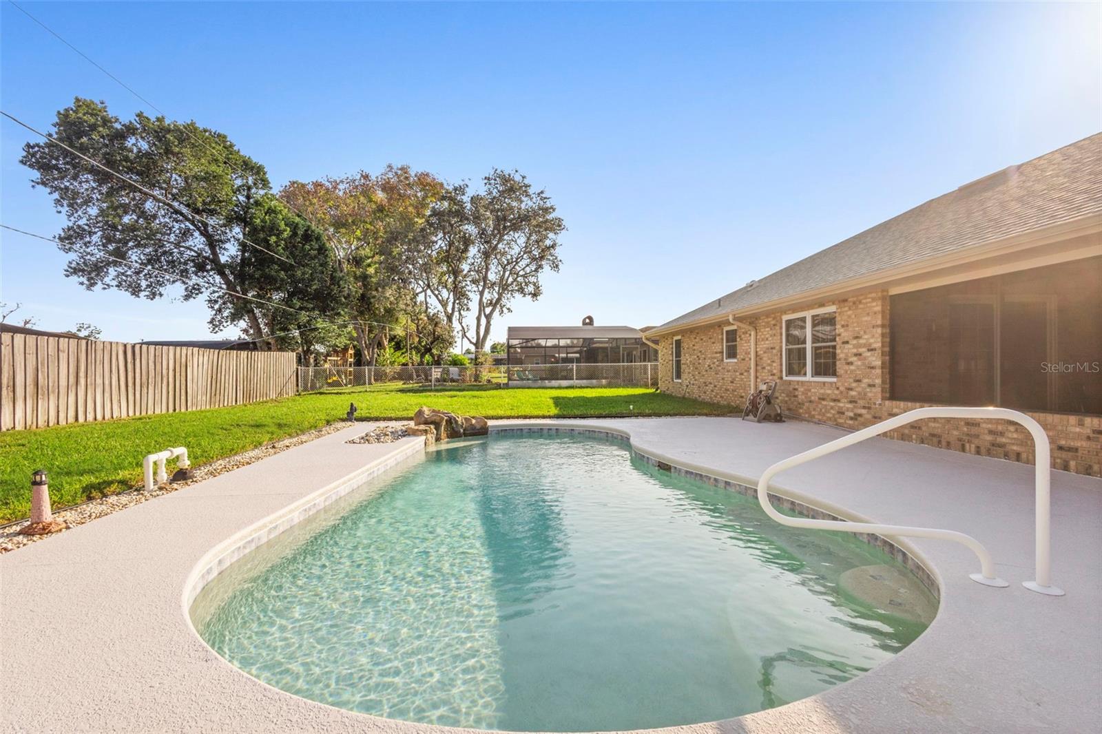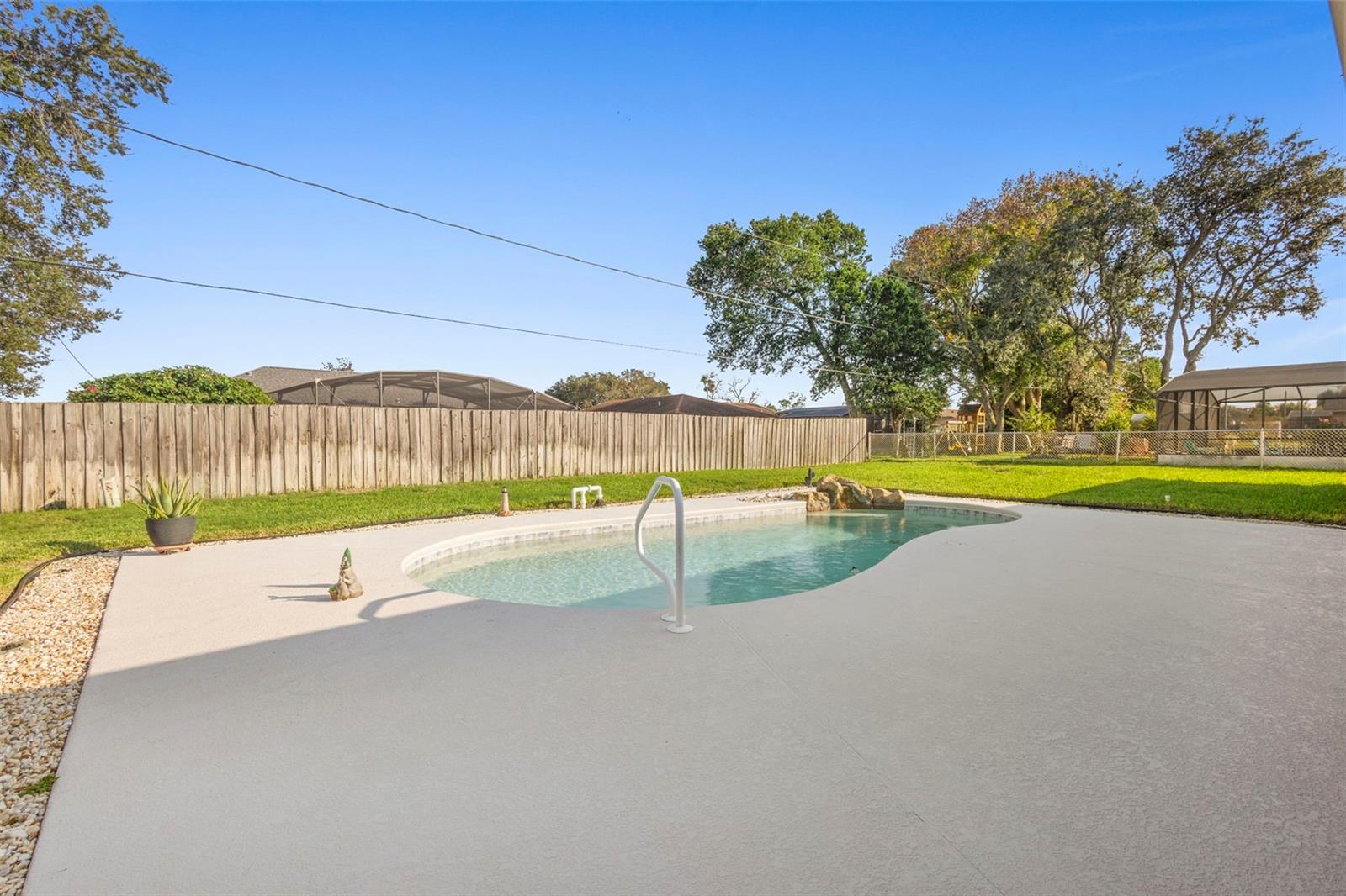 This beautiful 3 bedroom, 2 bath home sitting pretty on nearly a 1/4 acre complete with updates galor, fanced in yard and a sparkling self cleaning pool! Walk through the foyer into the expansive living room with a stately brick fireplace that can be electric or wood burning. With both a formal dining room with chair rail and a fully appointed kitchen with wood cabinets and a eat in kitchen with a bar, it is perfect for all of your entertainment needs. Spacious first floor primary bedroom with en suite as well as two other well appointed bedrooms perfect for guests or flex spaces. Looking for Florida living, look no further than the huge screened room overlooking the gleaming pool in the huge back yard perfect for outdoor living. Updates abound: new roof 2020, new windows, doors, electric in the last 5 years. This Deltona home is only missing one thing - you! So reach out today for your own private showing!