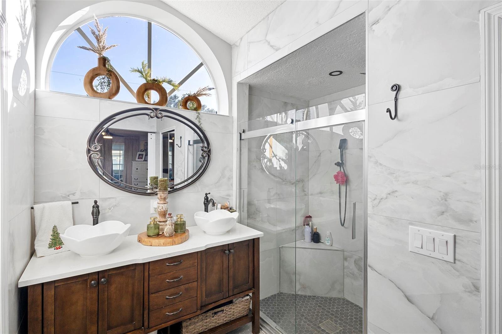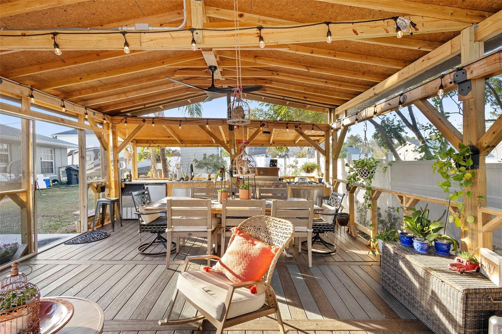 Welcome to this fully renovated split plan, 3-bedroom, 2-bath block home offering 1,854 square feet of beautifully updated living space. Situated on a .24-acre lot, this home blends solid construction with modern upgrades throughout. NO HOA. Major improvements include full home renovations, a newer A/C (2021) and roof (2022), providing peace of mind for years to come. Inside, you’ll appreciate the updated kitchen and bathrooms, complemented by tile flooring throughout for a clean, cohesive, and low-maintenance finish. Nearly new appliances and upgraded finishes create a truly move-in-ready interior. The home features a screened-in Florida room/porch off the back, extending the living space and offering the perfect spot to relax or entertain year-round. Outside, the vinyl-fenced backyard provides privacy and space, while the backyard cabana with an outdoor kitchen makes this home ideal for gatherings and Florida-style living. Irrigation system. Home is perfectly located between the sandy beaches and Orlando theme parks. Washer and Dryer DOES NOT CONVEY - Please see realtor remarks for other items that do not Convey.