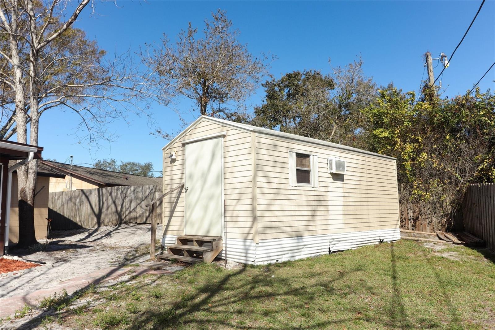 WELCOME HOME! Enjoy the freedom of NO HOA. This residence is not your typical floor plan. It beautifully balances comfort and convenience, featuring an impressive layout with a split bedroom floor plan that maximizes space. The inviting kitchen is generously sized and has been tastefully updated with stylish wood cabinets, butcher block countertops, and an island to provide extra workspace—perfect for culinary enthusiasts. Step into the living room, where soaring vaulted ceilings create an airy atmosphere, complemented by built-in shelving with lighting and a beautiful built-in fireplace that adds warmth and charm. French doors lead you to a screened-in deck, an ideal spot to unwind while enjoying the soothing hot tub. The master bedroom serves as a true retreat, showcasing a beautifully remodeled bathroom with a spacious shower. NUMEROUS UPGRADES enhance this home’s appeal, including newly installed hurricane storm doors, a new air conditioning system, a tankless water heater, a water treatment system, and more. The expansive backyard is perfect for outdoor activities, and the BONUS: 10x20 portable insulated building equipped with electricity and air conditioning—perfect for a workshop, home office, or creative studio! This peaceful Deltona neighborhood is conveniently located just minutes from County Road 415 and I-4, providing easy access to Orlando/Sanford International Airport and Florida’s breathtaking east coast beaches. Make this your new sanctuary today! THIS PROPERTY IS ELIGIBLE FOR UP TO $3,000 IN CLOSING COST CREDIT FROM CENTURY FINANCIAL GROUP**A NEW ROOF WILL BE INSTALLED BEFORE CLOSING!**ALL MEASUREMENTS ARE TO BE VERIFIED**