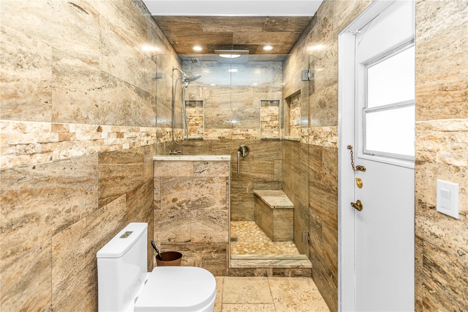 No HOA, corner lot, POOL and an exceptional outdoor oasis, this Deltona Lakes gem checks every box! Situated on a large (.34 acres), fully fenced lot with white vinyl fencing, this beautifully updated home offers privacy, space, and standout features throughout. Enjoy Florida living at its best with a screened vinyl pool, paver patio, firepit, fruit tress, roll-down shades, ceiling fans, and solar pool heating with a new pool filter—perfect for year-round enjoyment. Inside, double front doors welcome you into a thoughtfully designed layout featuring LVP flooring, tile in the formal living and dining rooms, and a cozy brick wood-burning fireplace. The fully renovated kitchen is a showstopper with quartz countertops that extend to the backsplash, soft-close cabinetry, drawers in the island, farmhouse sink overlooking the pool, and stainless steel appliances. The spacious primary suite offers 2 closets (Plus a linen closet) and a spa-like bath with travertine stone tile, a rainfall shower, and upgraded finishes. Secondary bedrooms feature double closets and share a beautifully remodeled bath with custom tile and quartz vanity. Additional highlights include a 2021 roof, gutters, black wrought-iron porch railing, upgraded bathrooms, oversized two-car garage with ample storage. Located in the heart of Deltona Lakes, this move-in-ready home combines modern upgrades, generous indoor space, and an unbeatable outdoor setting—perfect for entertaining or everyday enjoyment. Schedule your private tour today. This home may be under audio or visual surveillance.