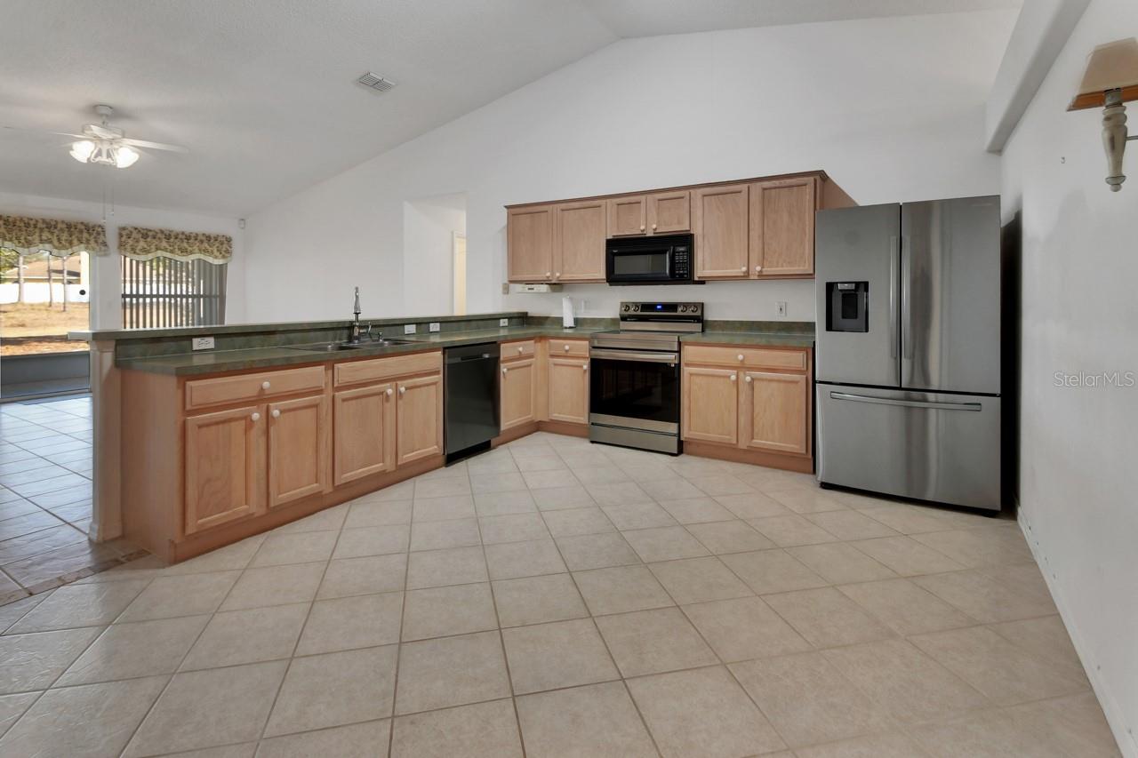 One or more photo(s) has been virtually staged. The staging allows you to see the potential. Welcome to this spacious 3-bedroom, 2-bath home offering 2,199 square feet under roof in the desirable Autumn Woods community of Deltona. Designed with a sought-after split floor plan, this residence blends comfort and functionality for everyday living. The heart of the home is the generously sized kitchen, featuring stainless steel appliances, ample counter space, a cozy eat-in area, and an extended breakfast bar—perfect for casual meals and entertaining. A separate dining room provides additional space for gatherings and special occasions. An additional flex room offers endless possibilities—ideal for a home office, playroom, formal living area, or whatever suits your lifestyle. Vaulted ceilings enhance the open, airy feel throughout the main living spaces. The spacious primary suite serves as a relaxing retreat with plenty of room to unwind at the end of the day. Step outside to the screened-in patio and enjoy peaceful evenings in comfort. Conveniently located near shopping, dining, schools, and the I-4 corridor, this home offers an easy commute while keeping you close to everything you need. Don’t miss your opportunity to make this home yours! ROOF 2018, Water Heater 2024