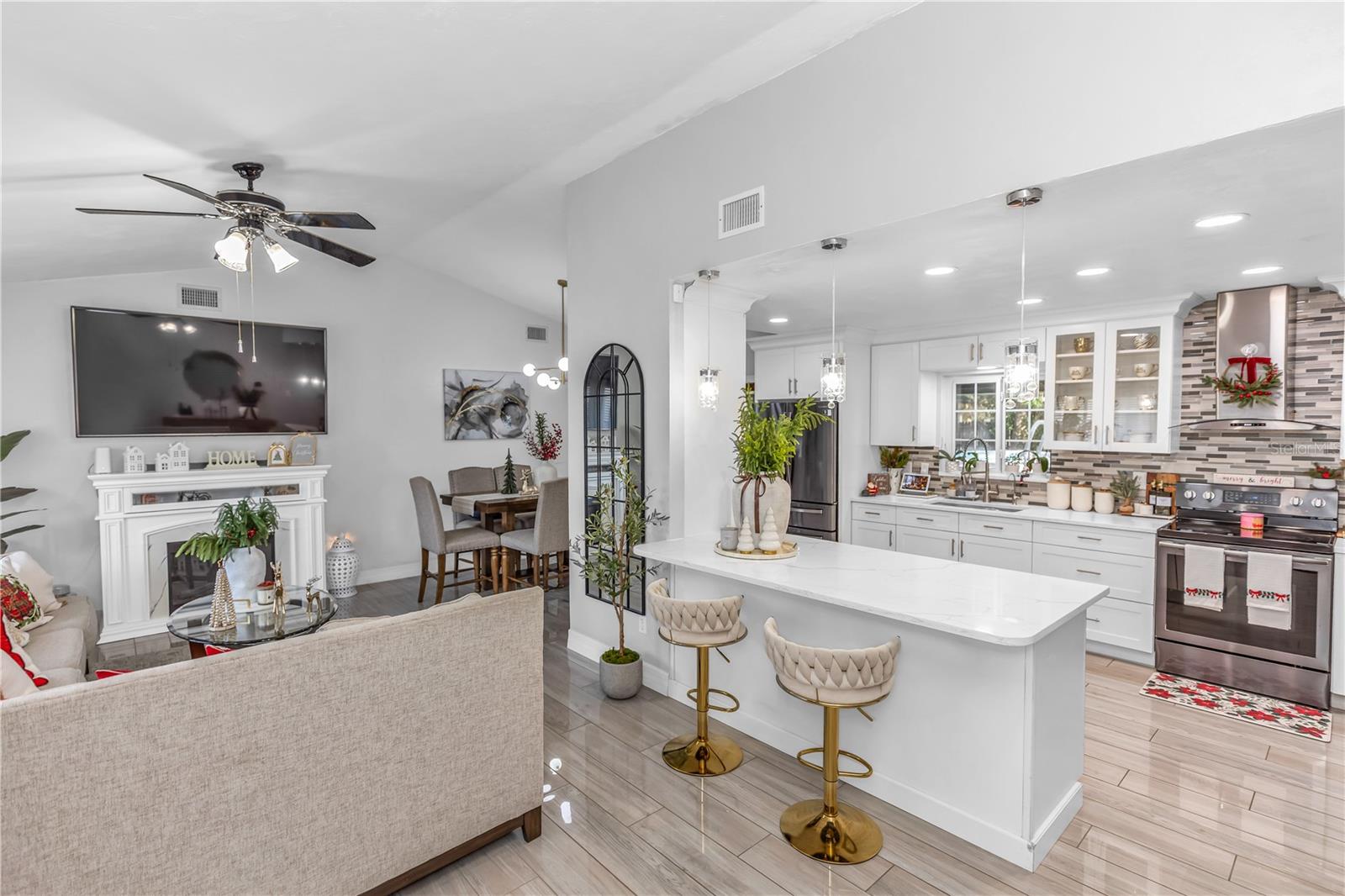 Welcome to this fully renovated, move-in-ready residence in the heart of Deltona, offering modern finishes, generous space, and effortless flow. This beautifully updated home features a stunning brand-new kitchen complete with elegant marble countertops, stainless steel appliances, and an open-concept layout that seamlessly connects the main living areas — perfect for both everyday living and entertaining. A separate formal dining space provides an inviting setting for gatherings and special occasions. Luxury polished ceramic tile flooring runs throughout the home, enhancing its clean, contemporary aesthetic while offering durability and easy maintenance. The interior has been meticulously maintained and thoughtfully updated, creating a bright, welcoming atmosphere that feels both stylish and comfortable. The exterior offers exceptional curb appeal with a spacious circular driveway, expansive front yard, and a two-car garage providing ample parking and storage. The oversized screened-in rear porch creates the perfect indoor-outdoor living space — ideal for relaxing evenings, hosting guests, or enjoying Florida’s year-round sunshine in comfort and privacy. Ideally located with convenient access to major roadways, shopping, dining, parks, and everyday essentials, this home offers the perfect balance of tranquility and accessibility. Enjoy proximity to Orlando for work and entertainment, while still being within comfortable reach of Daytona Beach and Florida’s beautiful east coast attractions. Whether you’re looking for space, upgrades, or location, this property delivers exceptional value in a growing and desirable community.