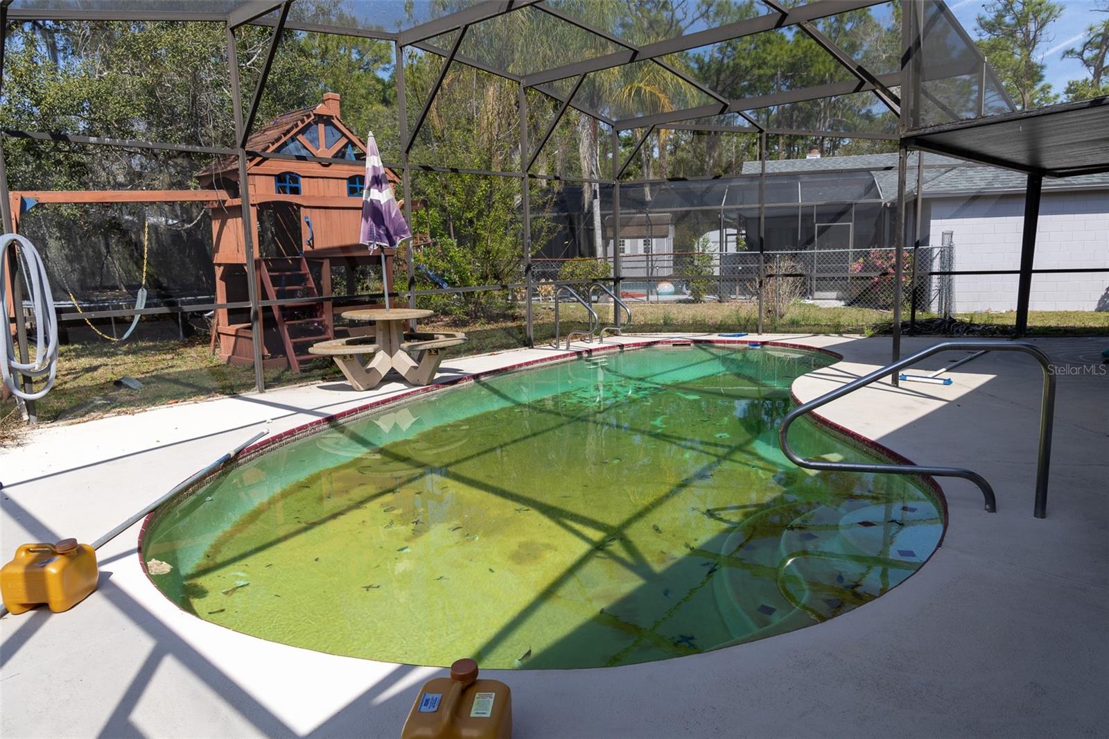 Welcome to 1131 Gage Avenue, a 3-bedroom, 2-bathroom home located in an established residential area of Deltona, Florida. This property features an enclosed private pool, a two car garage, and approximately 1,416 square feet of living space. The interior of the home currently requires cosmetic updates, repairs, and general maintenance. The layout includes interconnected main living areas that receive natural light, leading to standard bedroom and common spaces. Outside, the backyard includes a private swimming pool. Please note: the pool pump is currently non-operational and will require repair or replacement. Buyer to verify all room sizes and dimensions.