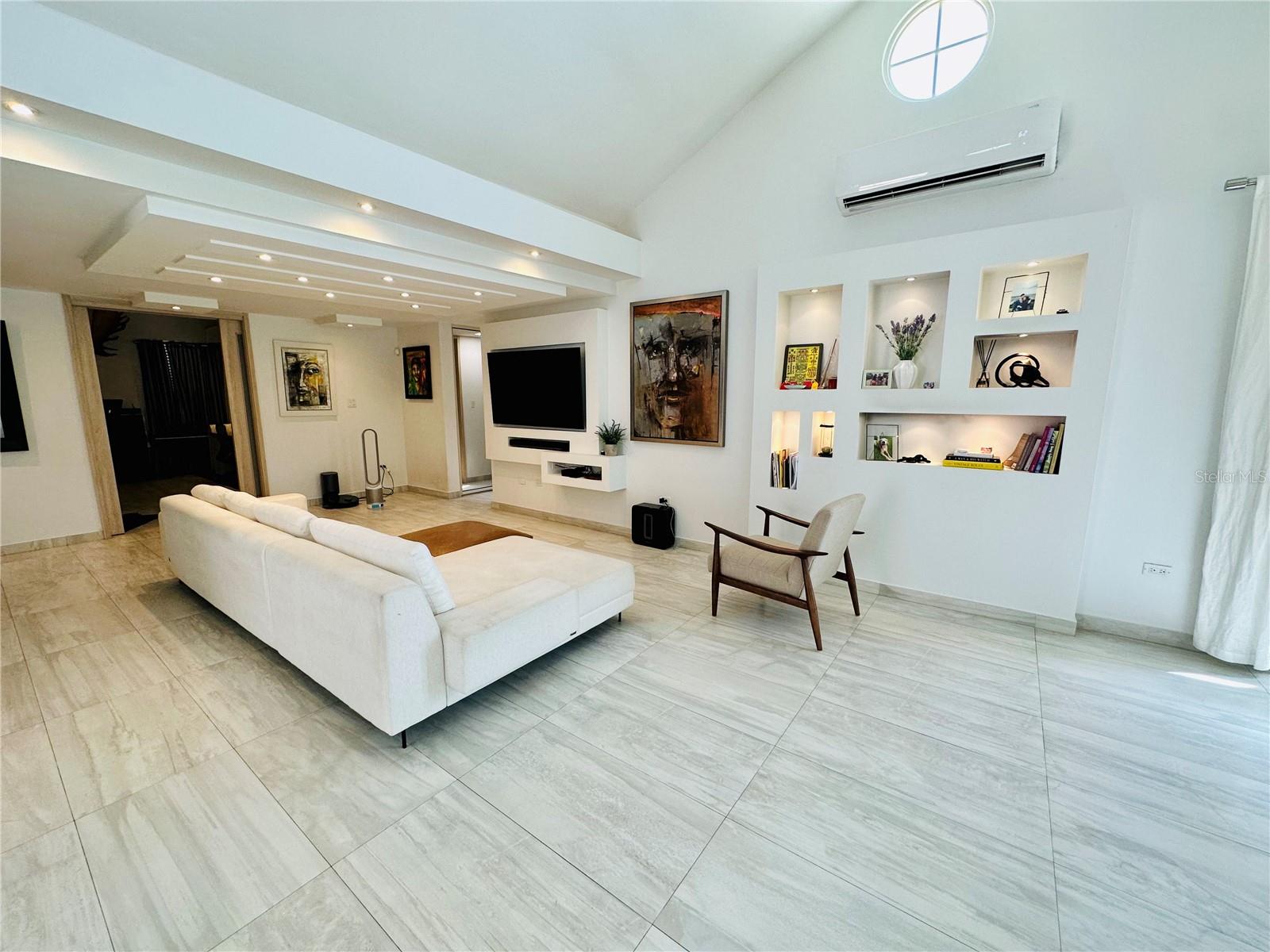 Experience upscale beach living in Sabanera de Dorado. Sabanera de Dorado is a neighborhood located in Dorado, Puerto Rico. It is considered to be one of the premier neighborhoods on the island, with a range of amenities and facilities that make it the epitome of luxury living. This listing is a one-of-a-kind 3,900 square foot estate home located on an oversized lot of 1,046 square meters, providing privacy and easy access to the community through its privileged location. The open-concept interior features 14 ft cathedral ceilings, walls of windows and doors, and an abundance of natural light, offering lush landscape views from the living and dining rooms. The functional kitchen includes ample storage, a large pantry, and top-of-the-line appliances. Each of the four bedrooms has a private en-suite bathroom with upscale tile, quartz vanities, and chrome fixtures. A home office that can easily be converted into a fifth bedroom, and the primary suite features 14 ft ceilings, a walk-in closet, double vanity en-suite bath, and built-in dresser.