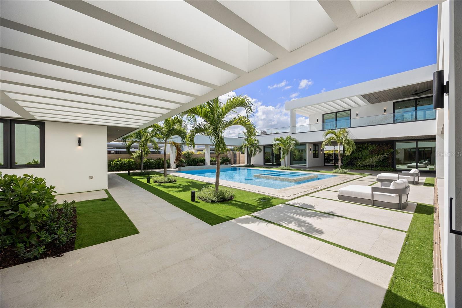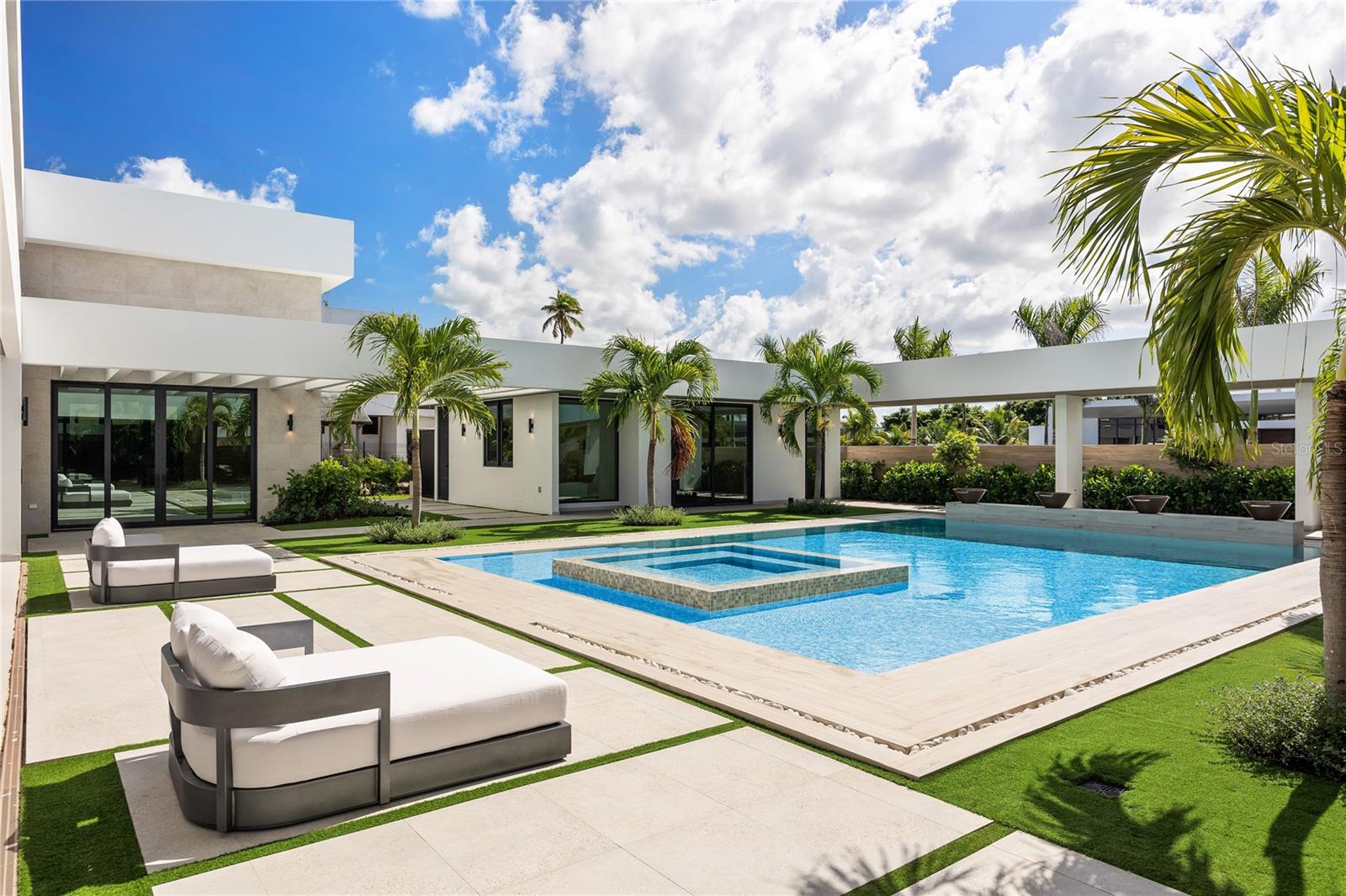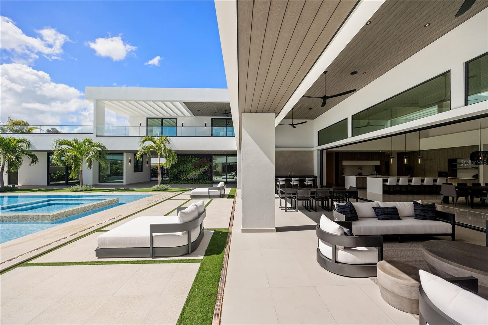Dorado Country Estates - A Boutique Hotel-Inspired Property Step into one of the most extraordinary properties at Dorado Country Estates, a home that redefines luxurious living with the ambiance of a boutique hotel. At its heart lies a stunning interior courtyard featuring a vertical plant wall, a serene waterfall jacuzzi, and a sparkling pool, allowing abundant natural light to flood nearly every room. Thoughtfully designed with unparalleled attention to detail, this estate offers 6 spacious bedrooms, each with ensuite bathrooms. Two downstairs guest suites stand out with their own separate entrances, private kitchenettes, and direct access to the pool, creating the ultimate retreat for visitors or multi-generational living. The master suite is a private oasis, complete with a spa-like bathroom featuring dual showers and a soaking tub, an oversized closet with a center island, and an adjacent private office. The great room flows seamlessly into a chef’s kitchen outfitted with dual islands, Sub-Zero and Wolf appliances, a wine fridge, and a pantry. This space opens to a covered terrace equipped with an outdoor kitchen and living area, perfect for entertaining. The home is equipped with premium upgrades throughout, including a Culligan water softener, ceiling speakers, sound bars, and subwoofers for an immersive audio experience. Doors and windows by Alumni from the Durabella Group combine elegance with durability. The property’s thoughtful infrastructure includes an 800-gallon cistern and a 300-gallon irrigation system to support sustainable water management. The upper level feels like a home within a home, featuring three additional bedrooms, a family room, a second laundry room, and two terraces—one covered with views of the courtyard and another open-air terrace overlooking the surrounding mountains. Designed for relaxation and entertaining, the outdoor spaces include expansive covered terraces, a large pool, a convenient pool bath, and an outdoor shower nestled within lush landscaping on a 2,500-square-meter (26,909 sq. ft.) lot. A three-car garage with a golf cart bay and extra storage completes the home. This exquisite property is more than just a residence—it’s a luxurious sanctuary designed for family connection and entertaining on the beautiful island of Puerto Rico