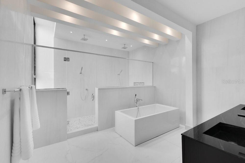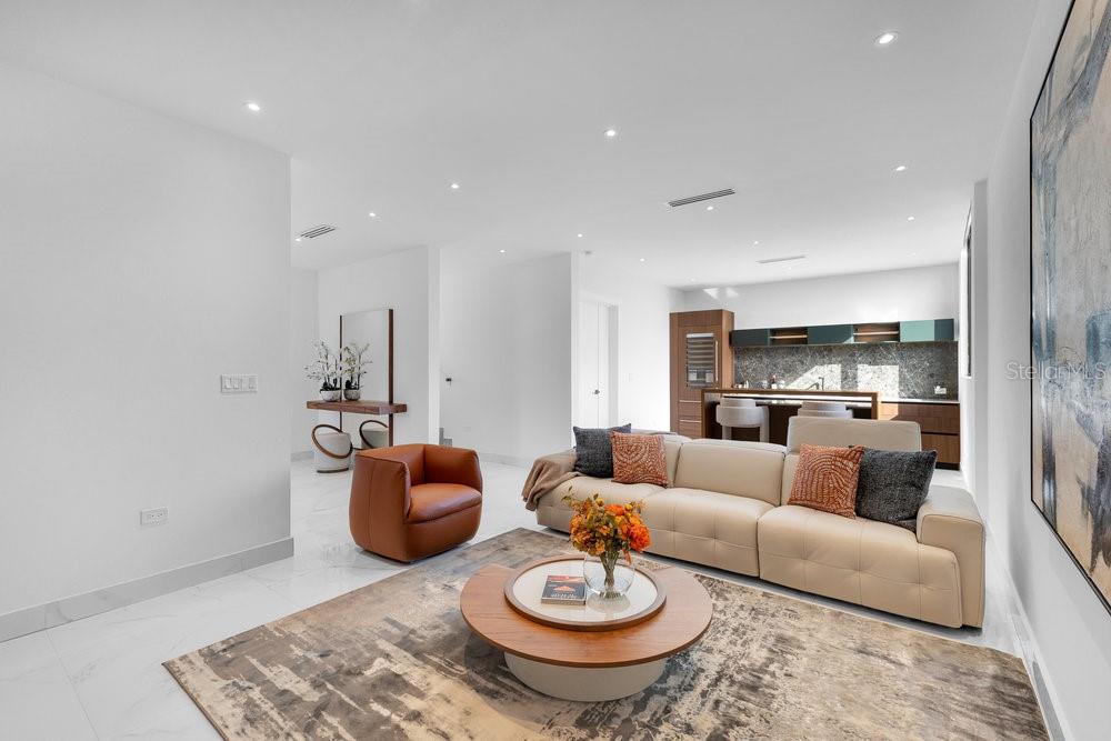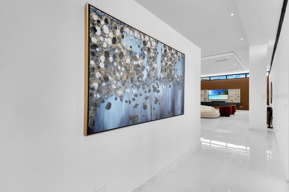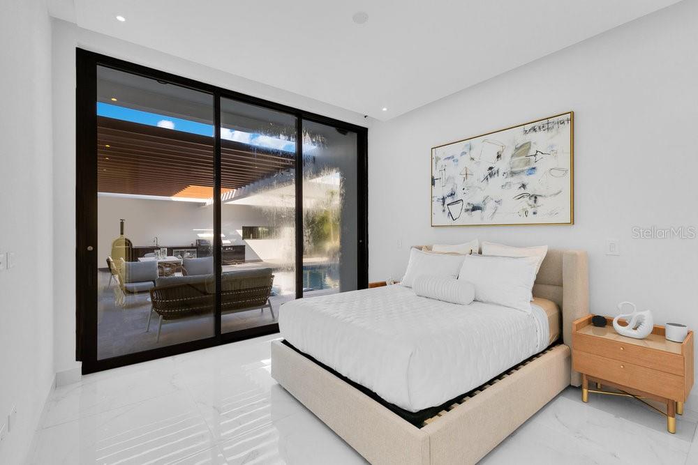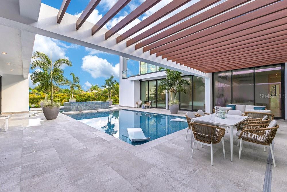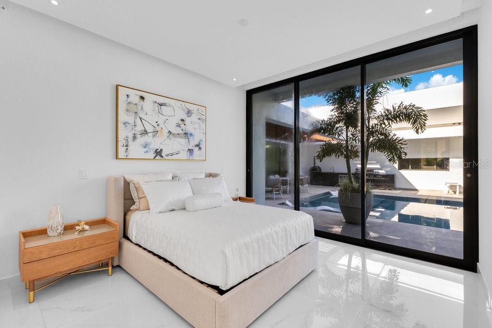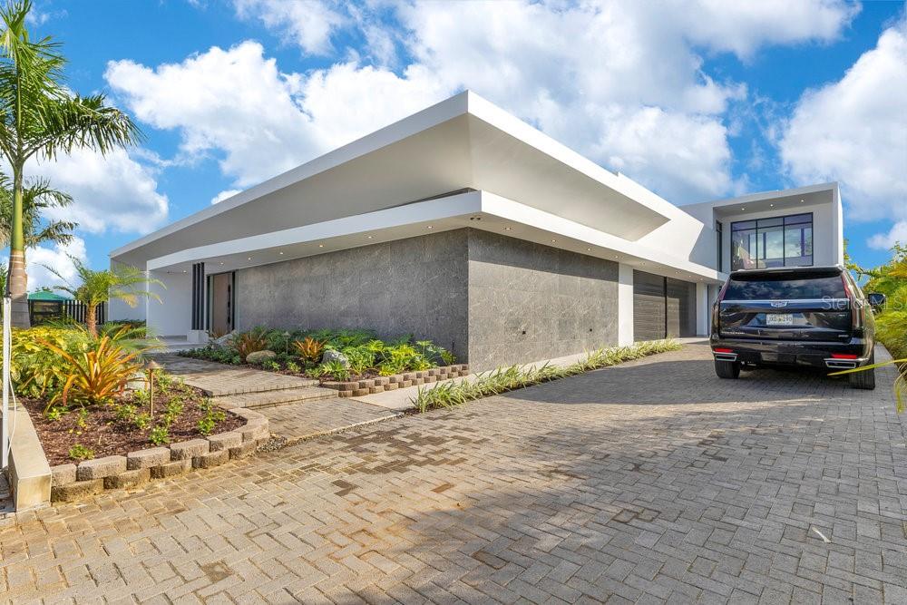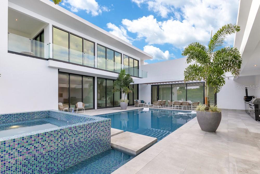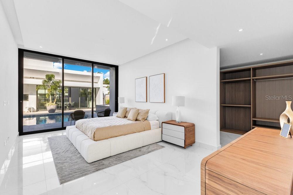 Situated in one of Dorado Beach's most desirable neighborhoods, known for exceptional value in custom homes, this 10,385 sq. ft. estate exudes serene luxury. A tranquil courtyard pool with a cascading waterfall sets the tone for resort-style living. The home features six spacious bedrooms, including four on the main floor with ensuite baths and custom closets. Upstairs, a cozy living area features a bar equipped with a Sub-Zero wine fridge, refrigerator, and ice maker. The expansive primary suite boasts a sitting area, custom Italian walk-in closet, and a spa-like bath with dual showers and a freestanding tub. Additional highlights include an exterior BBQ kitchen with a pizza oven, a wet bar by the dining room, and a hidden pantry.