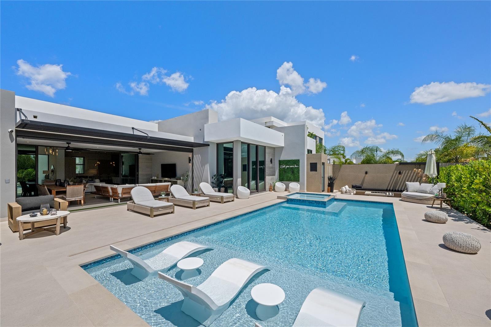 Welcome to a contemporary tropical haven in The Isles, one of Dorado’s most sought-after communities. This stunning residence blends modern elegance with island serenity, boasting clean architectural lines, soaring ceilings, and oversized windows that flood the space with natural light. From the moment you step inside, you’re greeted by a grand open-concept living area that flows effortlessly into the dining room and gourmet kitchen—ideal for entertaining or simply relaxing in style. The heart of the home is its chef’s kitchen, beautifully appointed with premium appliances, sleek cabinetry, waterfall quartz countertops, and a central island ideal for entertaining. Floor-to-ceiling glass doors lead to a beautifully landscaped backyard complete with a covered terrace, outdoor lounge area, and a resort-style swimming pool—perfect for enjoying the Caribbean breeze. The primary suite offers a tranquil retreat with an expansive walk-in closet, and a luxurious en-suite bathroom featuring a freestanding soaking tub, dual vanities, and a glass-enclosed rain shower. Set within a gated resort community, this home offers not only luxurious living, but also exclusive access to Dorado Beach’s world-class amenities. Residents enjoy 24/7 security, golf courses, beaches, tennis courts, and fine dining—all just minutes away. This property is a true gem in the Caribbean.