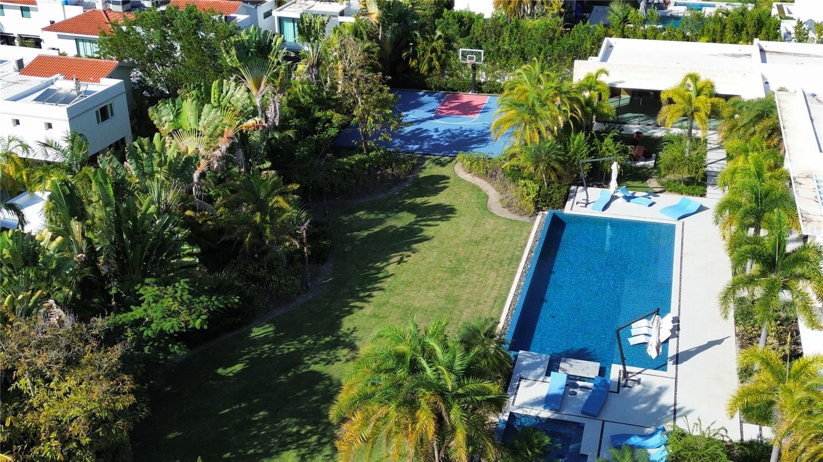 Situated within the prestigious Legacy neighborhood of Dorado Beach, this distinguished estate presents an exceptional blend of privacy, scale, and tailored luxury. Positioned on an expansive 4,800 square meter parcel, among the largest within the community, the residence enjoys a discreet setting along one of the resort’s most secluded streets. Offering approximately 16,746 square feet of total construction, the estate has been thoughtfully conceived to accommodate refined daily living as well as high-level entertaining. Bespoke amenities include a private two-lane bowling alley, a half basketball court, and a series of elegant indoor and outdoor gathering spaces. The exterior environment is anchored by a resort-style pool, a covered outdoor BBQ grill and kitchen, and a poolside dining area designed for seamless entertaining. The residence features three bedroom suites on the main level, each opening to private terraces, while the upper level is dedicated to two additional bedrooms and an expansive primary suite occupying its own wing. The primary retreat offers a generous private terrace, an oversized walk-in closet with center island, and a spa-inspired bathroom with an outdoor shower. A private office, an independent guest suite with its own entrance, and a dedicated salon space further elevate the home’s versatility and exclusivity. Architectural highlights include double-height ceilings, curated materials and finishes, a custom hand-blown chandelier, and fully integrated smart home and audio-visual systems. This is a rare and distinguished offering within Dorado Beach, delivering exceptional land value, custom amenities, and a lifestyle defined by understated elegance and modern luxury.