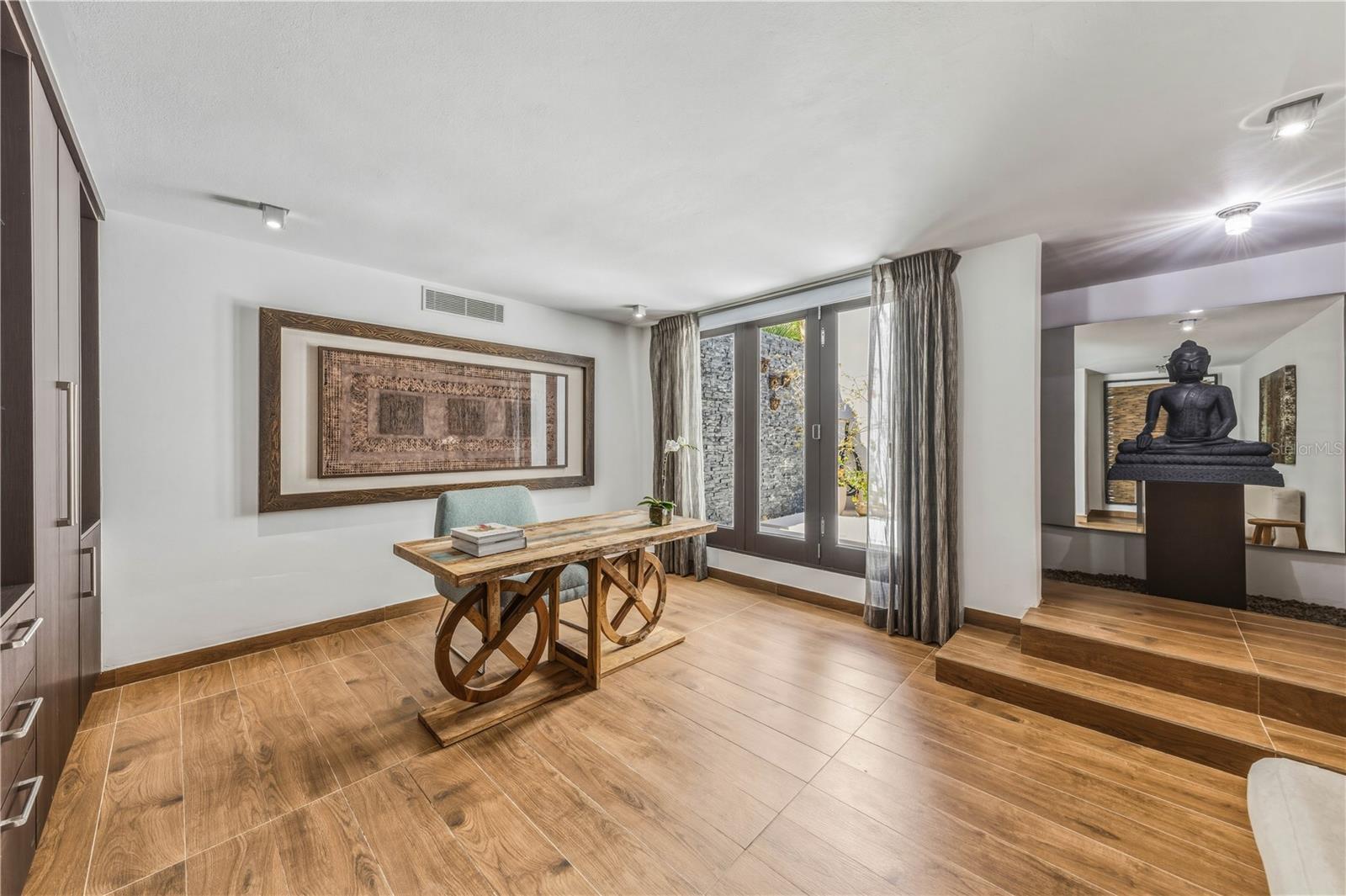 Set within the prestigious enclave of Dorado Beach East, 29 Dorado Beach East is a thoughtfully designed tropical residence distinguished by its scale, privacy, and seamless connection to nature. The property is conveniently accessed through the more secluded north entrance of Dorado Beach East, offering proximity to the beach, Encanto Beach Club, and the Ritz-Carlton Reserve. Arrival is marked by a tranquil, multi-level koi pond at the main entrance, creating a calm and welcoming introduction to the home. Inside, a grand formal living room unfolds with ceilings rising over 22 feet, filling the space with natural light and a sense of openness. The main level is designed for effortless living and entertaining, with a fluid layout that connects the formal dining room to a more intimate family room, highlighted by a bay window overlooking lush greenery. The expansive kitchen serves as the heart of the home, featuring a generous center island and a separate breakfast area with its own wet bar, equally suited for relaxed mornings or more formal gatherings. Two well-appointed bedrooms with ensuite bathrooms complete this level. The second floor is conceived as a private retreat, centered around a charming courtyard filled with potted plants that offers a quiet focal point upon arrival. The primary suite is notably spacious, with 19-foot ceilings and bay windows that invite abundant natural light. Three additional bedrooms, each with its own ensuite bathroom, provide privacy and comfort for guests. What truly defines the home is its relationship with the outdoors. Retractable large-format doors in the living room and kitchen open fully to the grounds, dissolving the line between interior and exterior spaces. Situated on a private corner lot of nearly half an acre, the property is surrounded by mature landscaping, tropical foliage, and flowering gardens that create a serene and secluded setting. The outdoor areas include an infinity pool, a fully equipped summer kitchen with BBQ, and ample seating for comfortable alfresco living. Residents of Dorado Beach East enjoy access to the world-renowned Dorado Beach Resort, which offers an unparalleled lifestyle with championship golf courses, miles of swimmable beaches, nature trails, spa sanctuaries, and a celebrated Beach Club featuring oceanfront dining. Additional amenities include state-of-the-art fitness centers, pickleball and tennis courts, as well as volleyball and basketball facilities. Residents and visitors alike are drawn to the resort’s dedicated water park and year-round programming, while seven on-property restaurants offer a diverse range of dining experiences, from casual beachfront fare to refined culinary destinations. In addition, residents have access to private events hosted exclusively within Dorado Beach, fostering a strong sense of community while preserving the privacy and exclusivity for which the resort is known.
