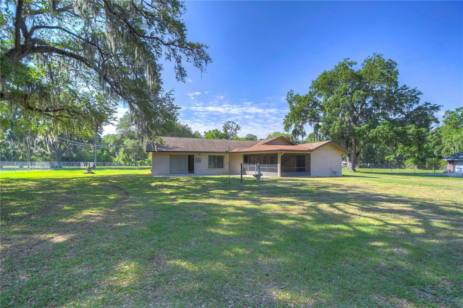 Welcome to this charming home located in the heart of Dover offering the perfect blend of comfort and versatility, situated on a generous 1.17-acre lot with a fenced yard. This home features a newer roof and upgraded well that was installed in 2019 and is surrounded by beautiful grandfather oak trees, providing the perfect amount of shade throughout the property. Boasting 3 bedrooms and 2 baths, this home offers an abundance of space and beautiful tile floors throughout! Notably, the property is zoned for horses, allowing equestrian enthusiasts to pursue their passion right from the comfort of home. With no HOA or CDD fees, you'll enjoy the freedom to personalize and utilize your space as you see fit. The home itself is thoughtfully designed with split bedrooms, offering privacy for all. The spacious kitchen is a focal point, featuring elegant wood cabinets, tons of counter space, and storage options to accommodate all your culinary needs. Equipped with newer appliances, cooking and entertaining become a breeze in this inviting space. Outside, a spacious screened patio offers a peaceful place to enjoy your morning coffee or entertain friends and family. A large shed with electricity provides additional storage or workshop space, catering to a variety of hobbies and endeavors. With plenty of room to spare, the expansive yard presents endless possibilities, inviting you to create your own dream oasis tailored to your unique preferences and lifestyle. Whether you're drawn to the tranquility of rural living or seeking a spacious retreat with room to roam, this home offers the perfect canvas for realizing your vision of idyllic living. This home is conveniently located just minutes from shopping, dining experiences, and major roads offering peaceful travel. Close to Disney and Florida’s famous beaches, you don't want to miss out on the opportunity to make this your own slice of paradise. VIew the home virtually with this link: https://my.matterport.com/show/?m=zFSG9jFsvrU&mls=1