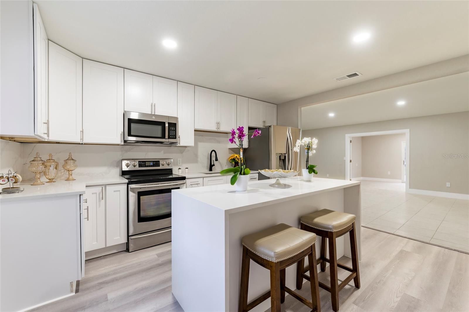 ** Price reduction** Completely renovated 4-bedroom 2 bathroom on a .34 Arce lot is move in ready! Roof installed January 2024,permitted and inspected by county. Brand new kitchen featuring all new stainless-steel appliances, (refrigerator, microwave, farmhouse sink and stove) new cabinets and oversized island with beautiful quartz countertop throughout kitchen. Both bathrooms have been beautifully remodeled with quartz countertops as well. The Master bathroom has an oversized shower with a double sink. This home features a living room, family room and a Florida room with bar, perfect for entertaining and getting together. As an added feature the Florida room leads out to a large screened in lanai allowing you to bring the entertainment outside! With a separate entrance there is a two-story garage that is permitted to be converted into a mother in-law suite! Great income producing option! Also included with this property is an outside grill, workshop and storage shed. No HOA or CDD, so bring your RV and boats. You’ll have everything you need to make this your forever home! Schedule a showing today!