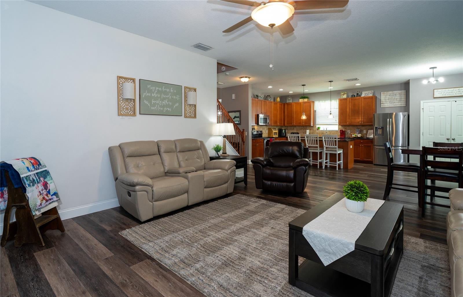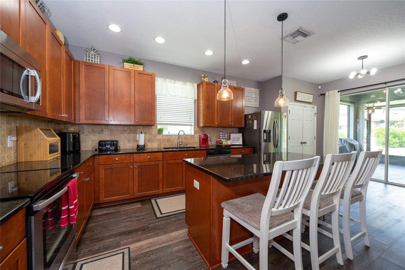 Price Improvement!!! Stunning Family Retreat! Discover the perfect blend of luxury and comfort in this immaculate, expansive 3050 square feet 4-bedroom, 2.5-bathroom, 3-Car Garage home nestled on a premium OVERSIZED PREMIUM LOT with LAKE VIEW spanning nearly half an acre in the desirable Ridge Crest Community. Situated on a peaceful CUL-DE-SAC, this residence offers privacy and tranquility with a fenced backyard and a GORGEOUS 15X2 hard roof screened in Lanai Extension ideal for entertaining and relaxation, complete with FIREPIT and ample space for a pool. Some key features of this home include - recently upgraded new floors, baseboards, painted inside and out, updated sprinkler system for easy lawn maintenance, epoxy coating floors in the garage and enclosed lanai, and upgraded lighting/ceiling fans. The Ridge Crest Community offers the benefits of no CDD fees and low HOA dues and close proximity to parks, schools, restaurants, shopping, etc. This meticulously maintained home is perfect for those seeking a blend of elegance, comfort, and functionality. Whether you're relaxing in the expansive backyard oasis, enjoying the lakeview from the front porch or enjoying the spacious interior, this home offers the ideal sanctuary for family living. Schedule your private tour today and experience the luxury and charm of this Ridge Crest gem firsthand.