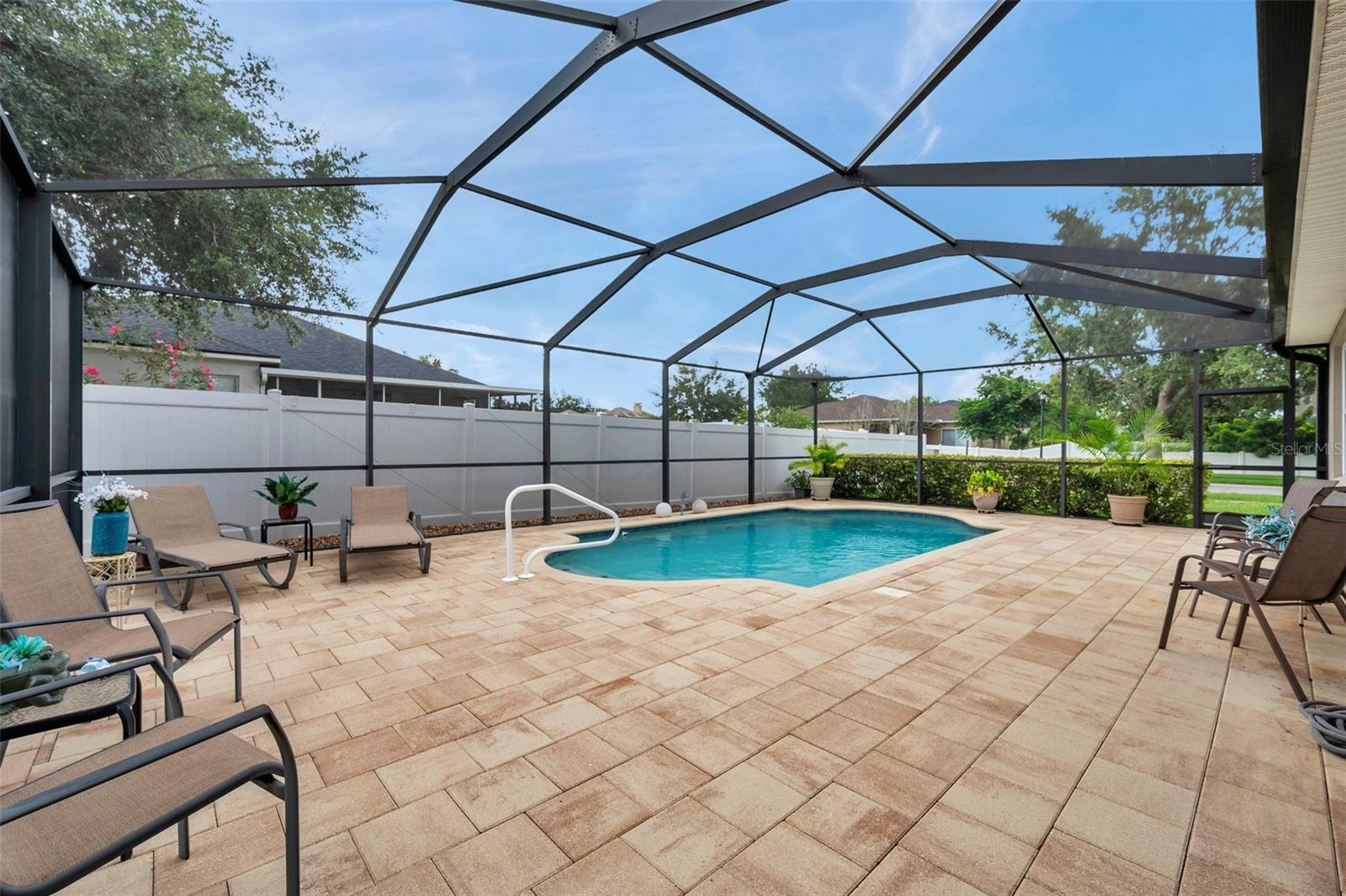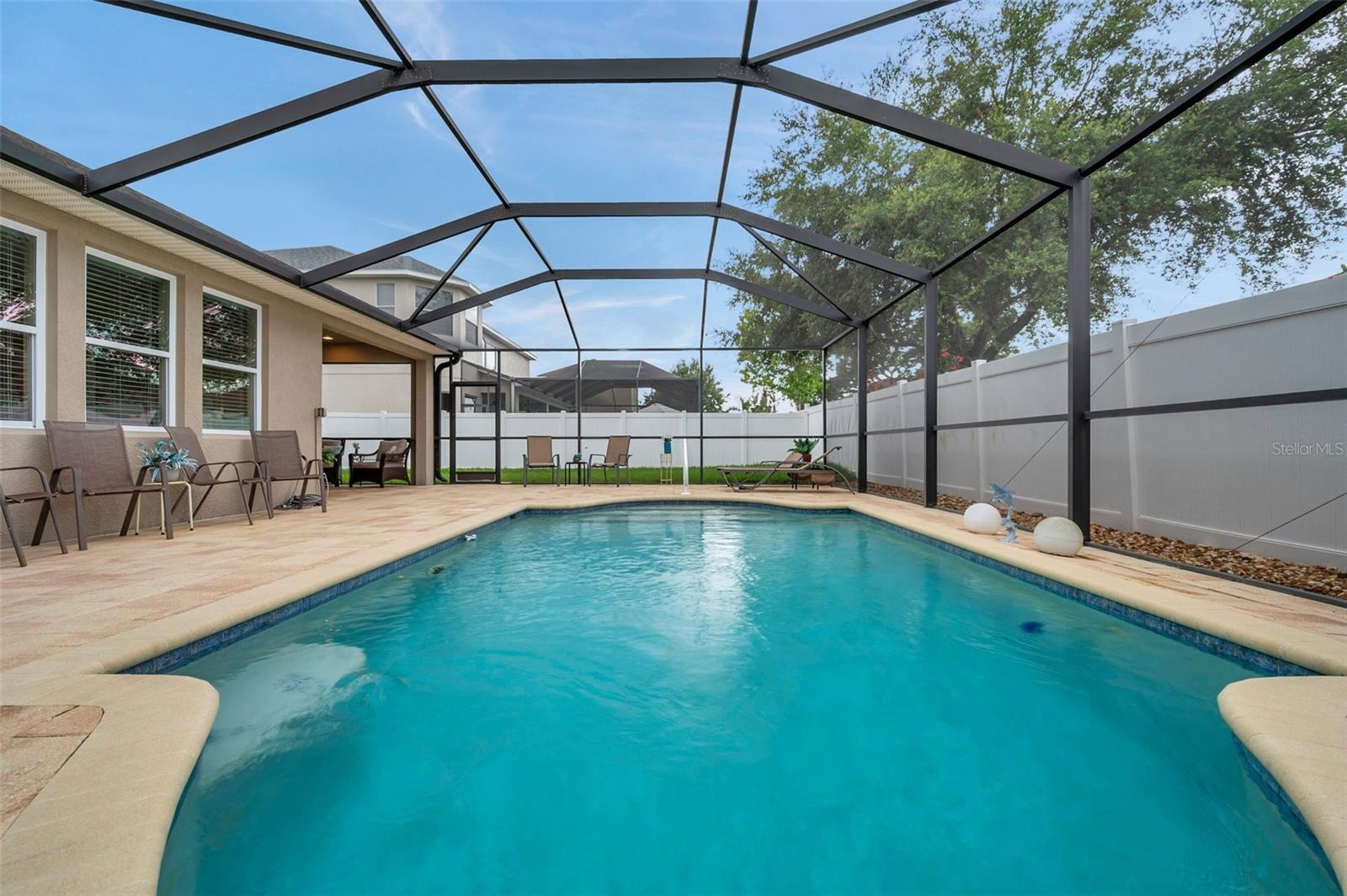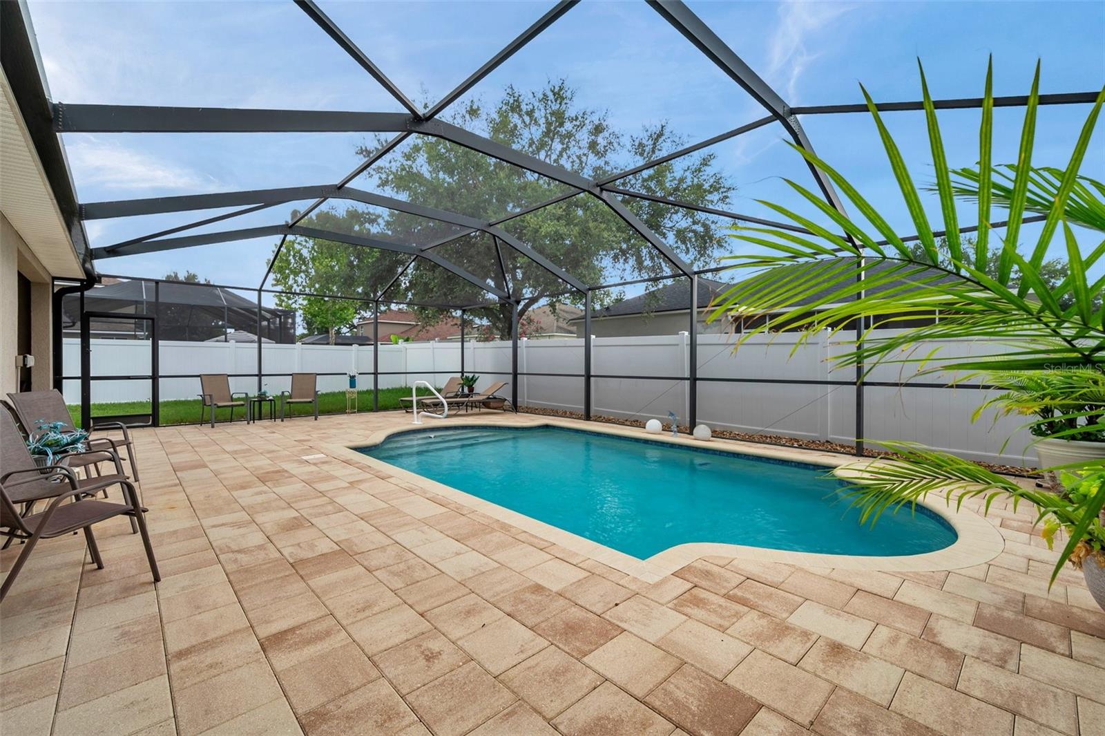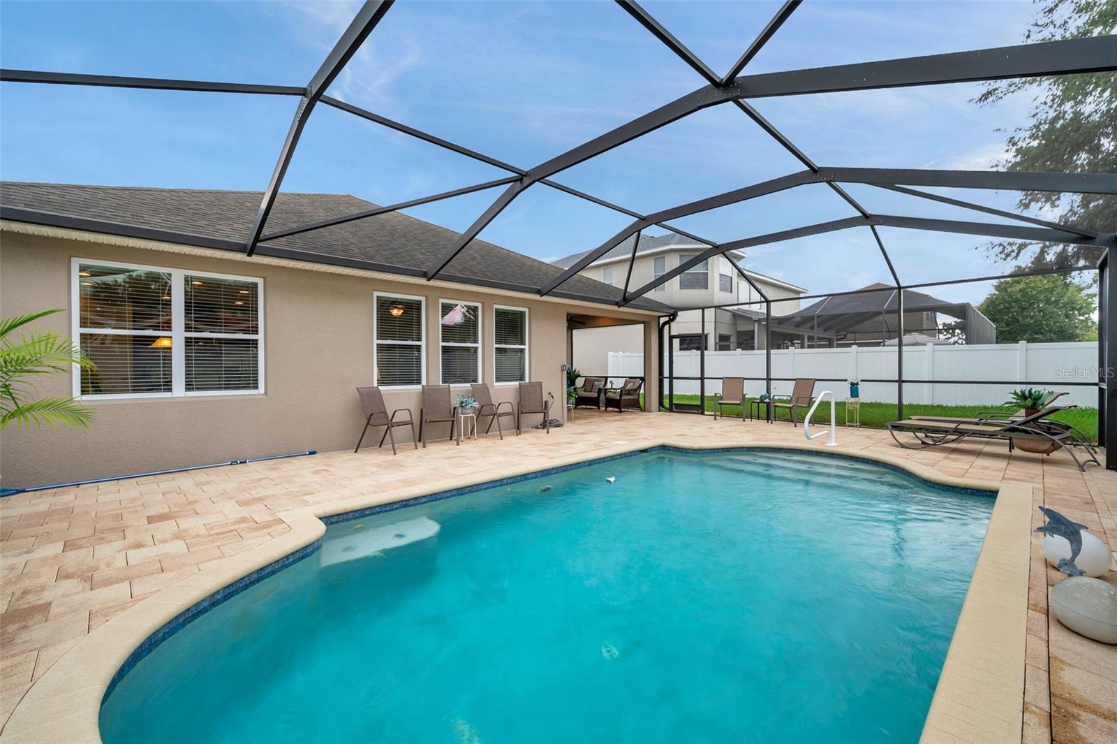 Welcome home to this beautifully maintained 3-bedroom, 2-bathroom gem located in the quiet and desirable community of Dover. Set on a spacious lot, this single-story home combines modern convenience with a welcoming atmosphere—perfect for families, professionals, or anyone seeking a peaceful Florida lifestyle. Step inside to an open-concept layout filled with natural light, highlighting the spacious living area, high ceilings, and stylish finishes. The well-appointed kitchen features granite countertops, stainless steel appliances, a breakfast bar, and plenty of cabinetry—ideal for both everyday living and entertaining. The split-bedroom floor plan offers privacy, with a large primary suite that includes a walk-in closet and an ensuite bath with dual sinks, a soaking tub, and a separate shower. Two additional bedrooms provide flexibility for guests, a home office, or a growing family. The home's bedrooms have LUXURY VINYL and with the NEWER AC you have nothing to worry in the warm summer months. Enjoy Florida’s sunshine in your oversized backyard—perfect for grilling, gardening, or relaxing with a cup of coffee. Don't forget about the meticulously maintained SALT WATER pool ( built in 2016) to enjoy the extra water fun in your backyard. With low HOA fees and a serene neighborhood feel, this home is a rare find in a rapidly growing area.