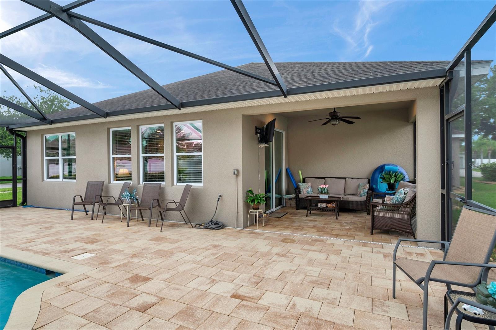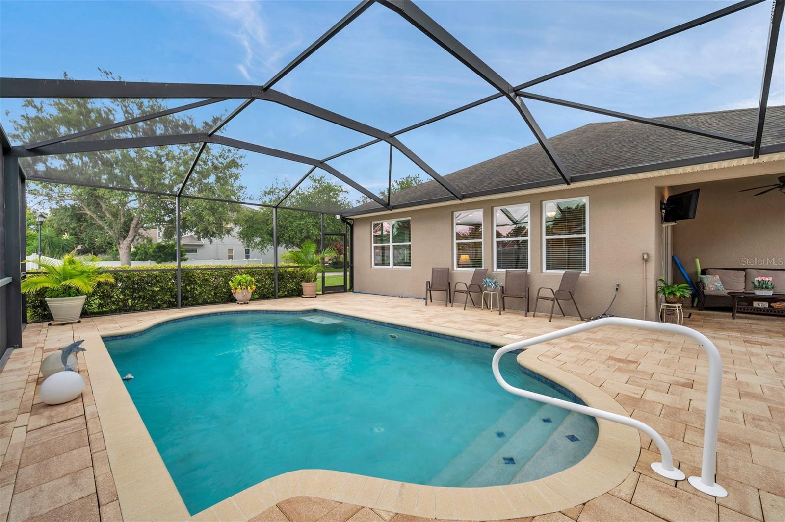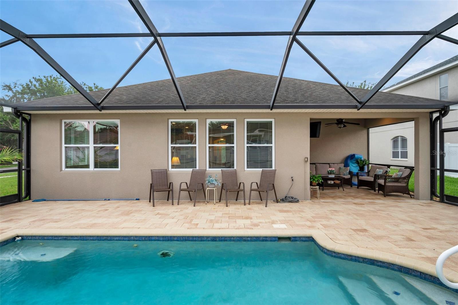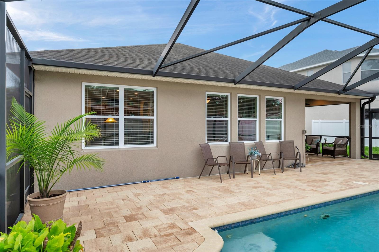 Welcome home to this beautifully maintained 3-bedroom, 2-bathroom gem located in the quiet and desirable community of Dover. Set on a spacious lot, this single-story home combines modern convenience with a welcoming atmosphere—perfect for families, professionals, or anyone seeking a peaceful Florida lifestyle. Step inside to an open-concept layout filled with natural light, highlighting the spacious living area, high ceilings, and stylish finishes. The well-appointed kitchen features granite countertops, stainless steel appliances, a breakfast bar, and plenty of cabinetry—ideal for both everyday living and entertaining. The split-bedroom floor plan offers privacy, with a large primary suite that includes a walk-in closet and an ensuite bath with dual sinks, a soaking tub, and a separate shower. Two additional bedrooms provide flexibility for guests, a home office, or a growing family. The home's bedrooms have LUXURY VINYL and with the NEWER AC you have nothing to worry in the warm summer months. Enjoy Florida’s sunshine in your oversized backyard—perfect for grilling, gardening, or relaxing with a cup of coffee. Don't forget about the meticulously maintained SALT WATER pool ( built in 2016) to enjoy the extra water fun in your backyard. With low HOA fees and a serene neighborhood feel, this home is a rare find in a rapidly growing area.