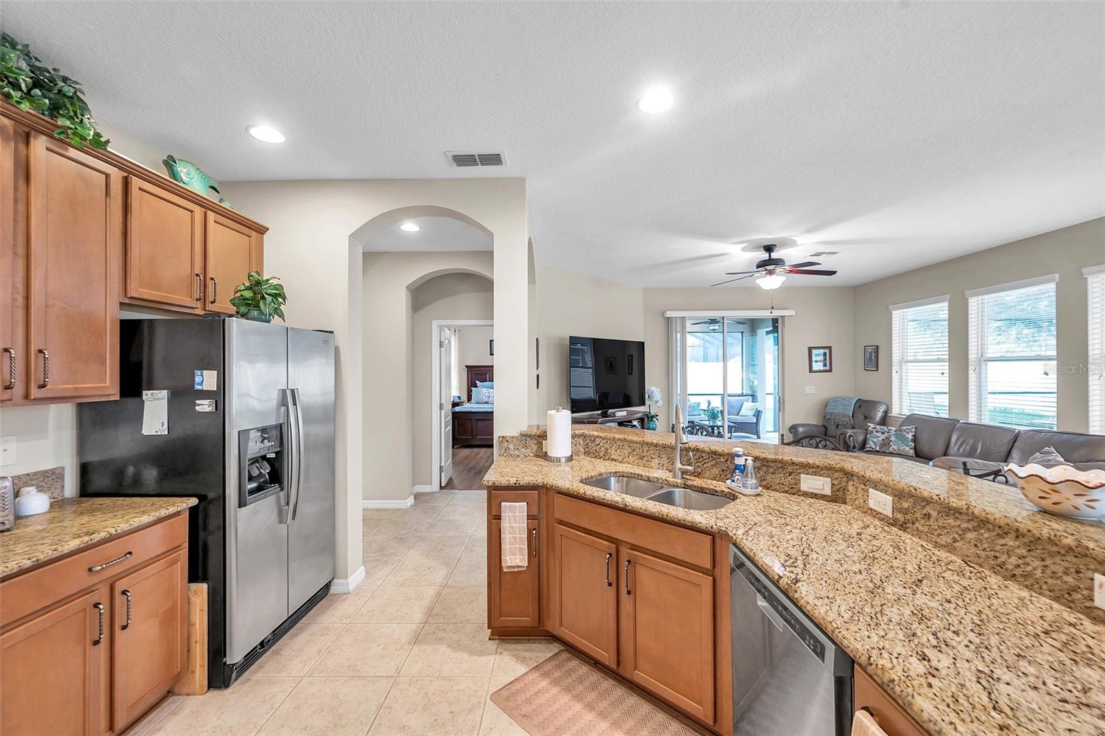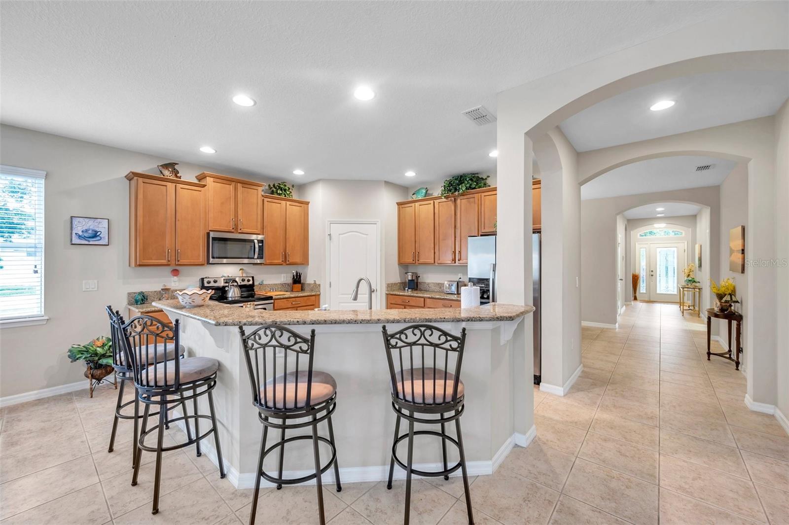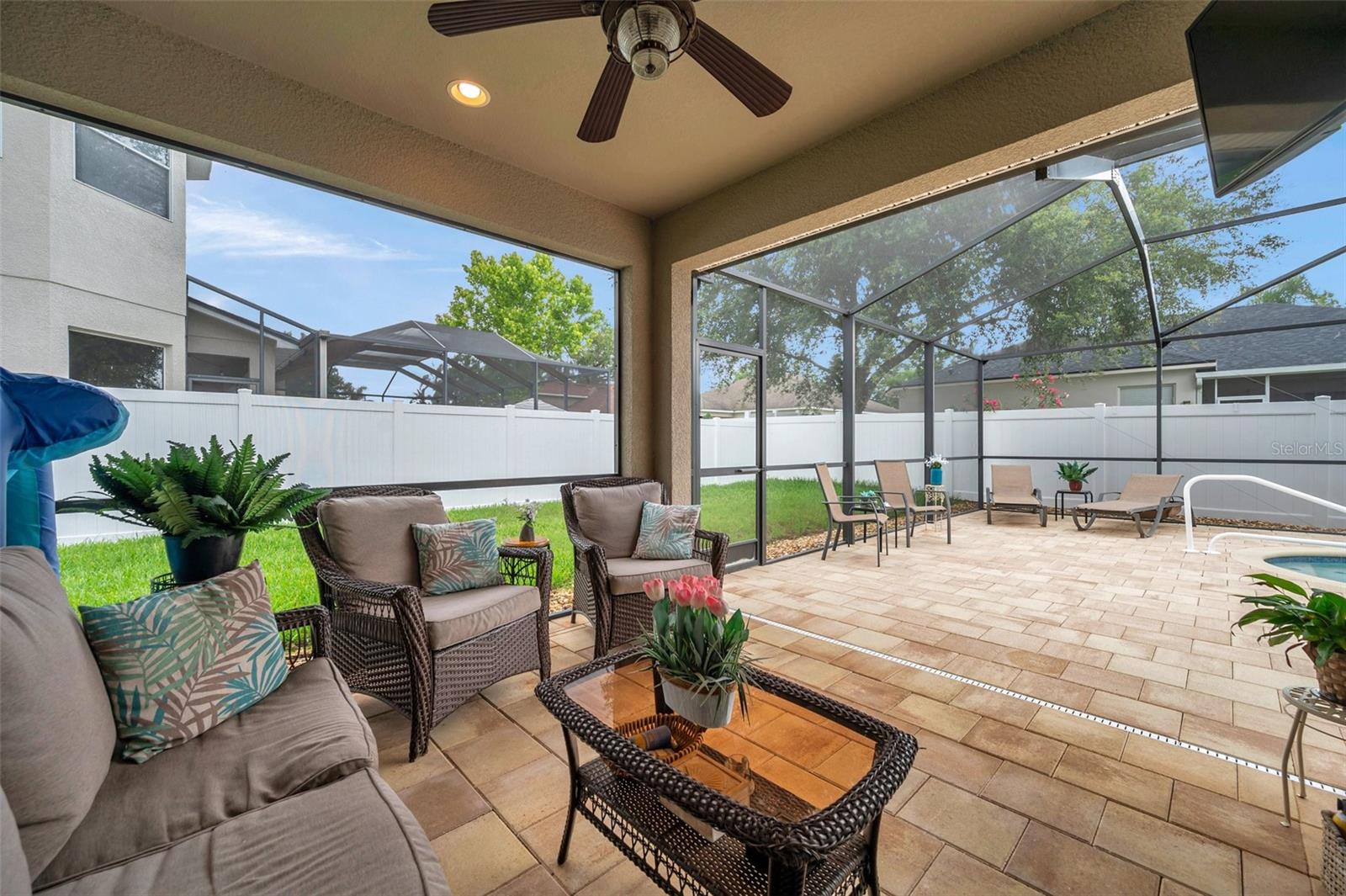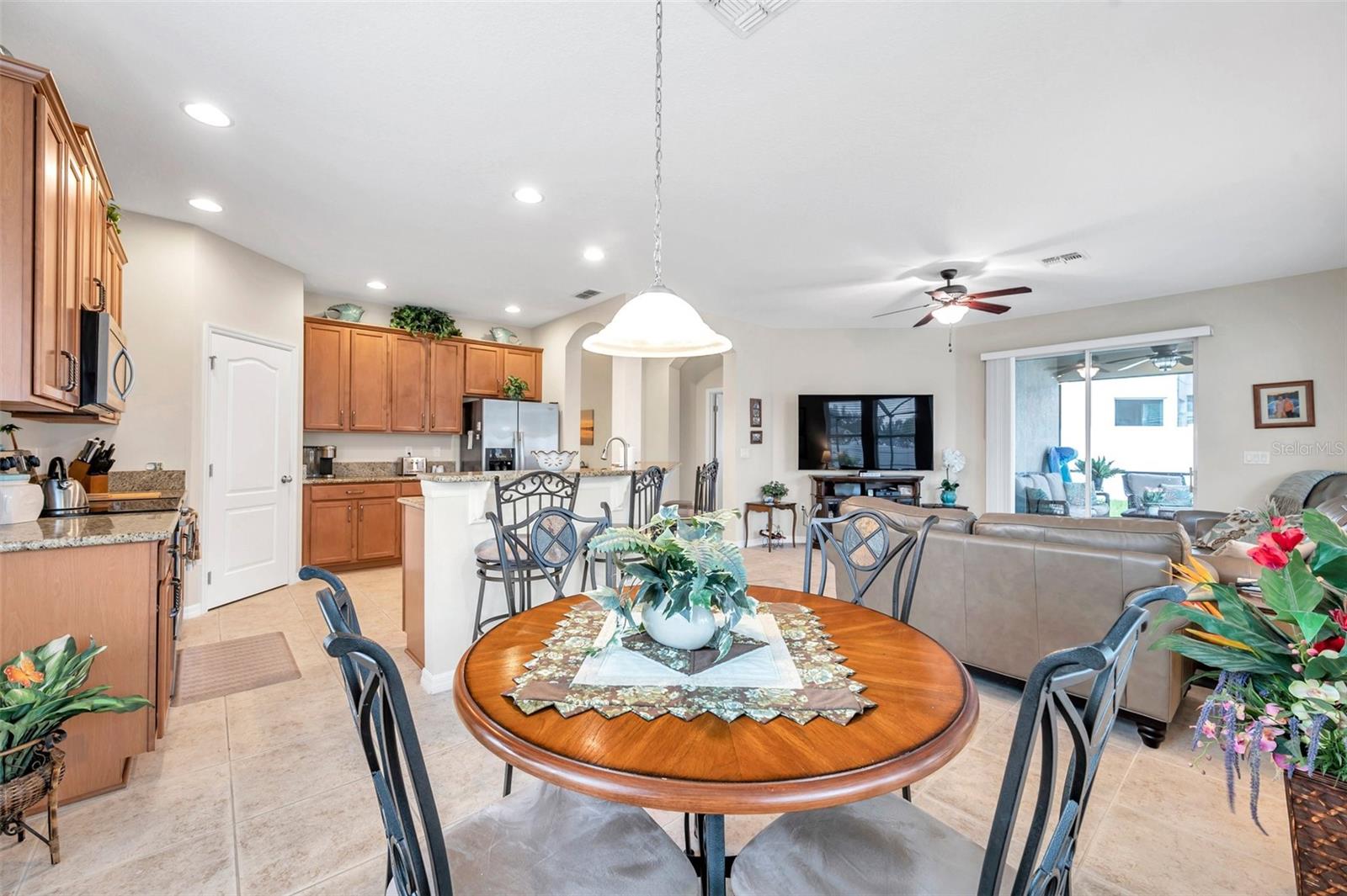 Welcome home to this beautifully maintained 3-bedroom, 2-bathroom gem located in the quiet and desirable community of Dover. Set on a spacious lot, this single-story home combines modern convenience with a welcoming atmosphere—perfect for families, professionals, or anyone seeking a peaceful Florida lifestyle. Step inside to an open-concept layout filled with natural light, highlighting the spacious living area, high ceilings, and stylish finishes. The well-appointed kitchen features granite countertops, stainless steel appliances, a breakfast bar, and plenty of cabinetry—ideal for both everyday living and entertaining. The split-bedroom floor plan offers privacy, with a large primary suite that includes a walk-in closet and an ensuite bath with dual sinks, a soaking tub, and a separate shower. Two additional bedrooms provide flexibility for guests, a home office, or a growing family. The home's bedrooms have LUXURY VINYL and with the NEWER AC you have nothing to worry in the warm summer months. Enjoy Florida’s sunshine in your oversized backyard—perfect for grilling, gardening, or relaxing with a cup of coffee. Don't forget about the meticulously maintained SALT WATER pool ( built in 2016) to enjoy the extra water fun in your backyard. With low HOA fees and a serene neighborhood feel, this home is a rare find in a rapidly growing area.