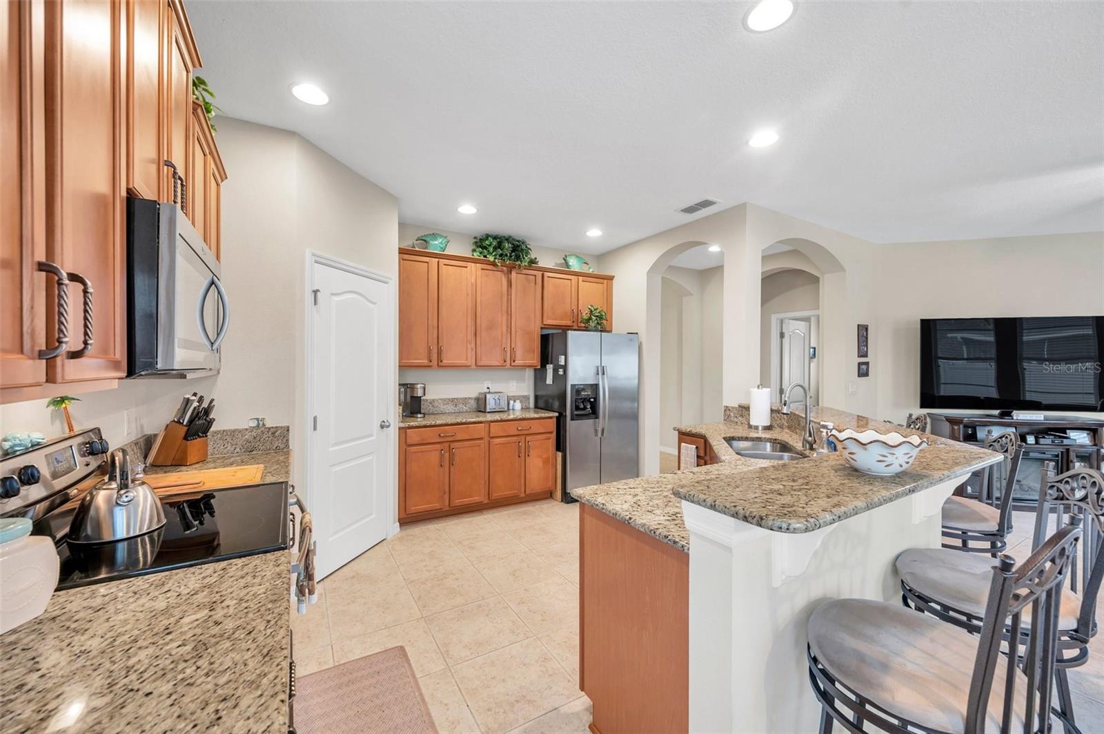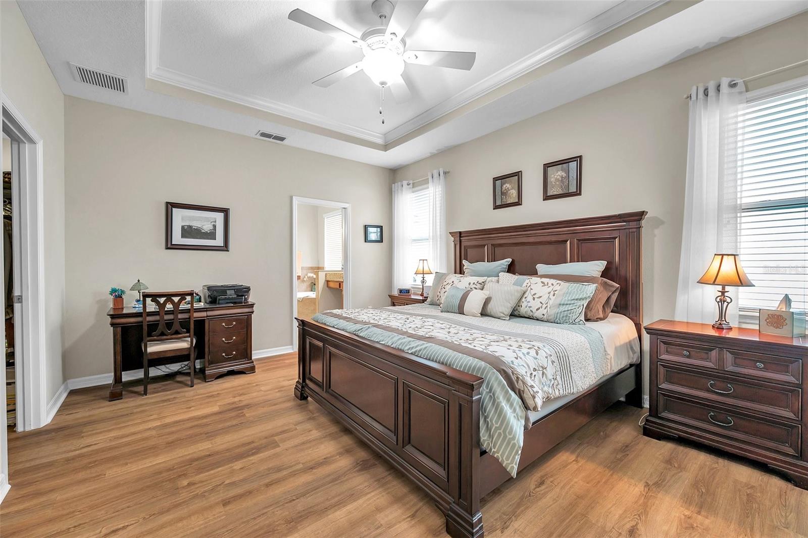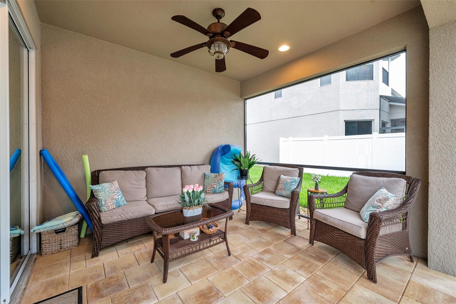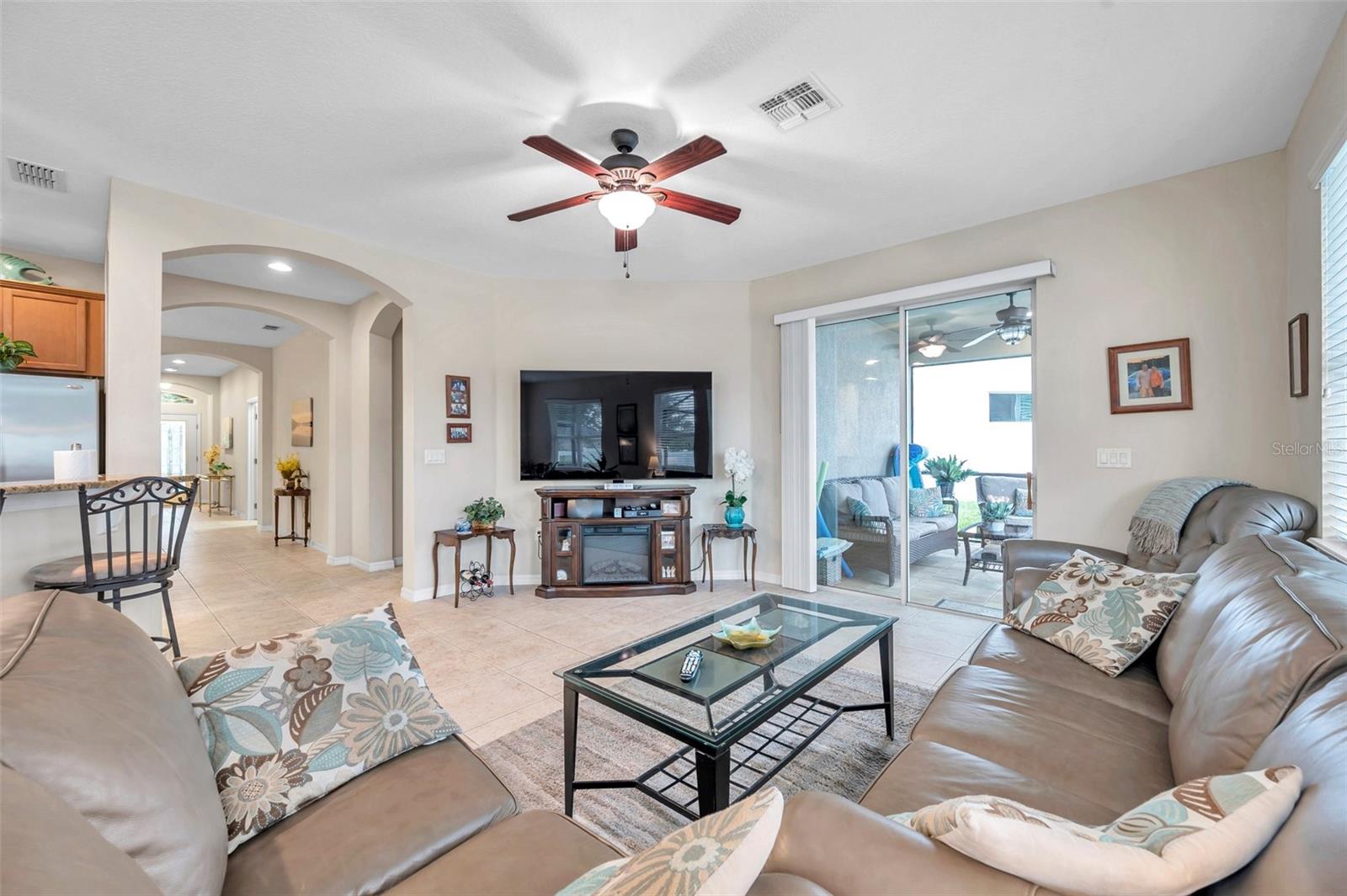 Welcome home to this beautifully maintained 3-bedroom, 2-bathroom gem located in the quiet and desirable community of Dover. Set on a spacious lot, this single-story home combines modern convenience with a welcoming atmosphere—perfect for families, professionals, or anyone seeking a peaceful Florida lifestyle. Step inside to an open-concept layout filled with natural light, highlighting the spacious living area, high ceilings, and stylish finishes. The well-appointed kitchen features granite countertops, stainless steel appliances, a breakfast bar, and plenty of cabinetry—ideal for both everyday living and entertaining. The split-bedroom floor plan offers privacy, with a large primary suite that includes a walk-in closet and an ensuite bath with dual sinks, a soaking tub, and a separate shower. Two additional bedrooms provide flexibility for guests, a home office, or a growing family. The home's bedrooms have LUXURY VINYL and with the NEWER AC you have nothing to worry in the warm summer months. Enjoy Florida’s sunshine in your oversized backyard—perfect for grilling, gardening, or relaxing with a cup of coffee. Don't forget about the meticulously maintained SALT WATER pool ( built in 2016) to enjoy the extra water fun in your backyard. With low HOA fees and a serene neighborhood feel, this home is a rare find in a rapidly growing area.