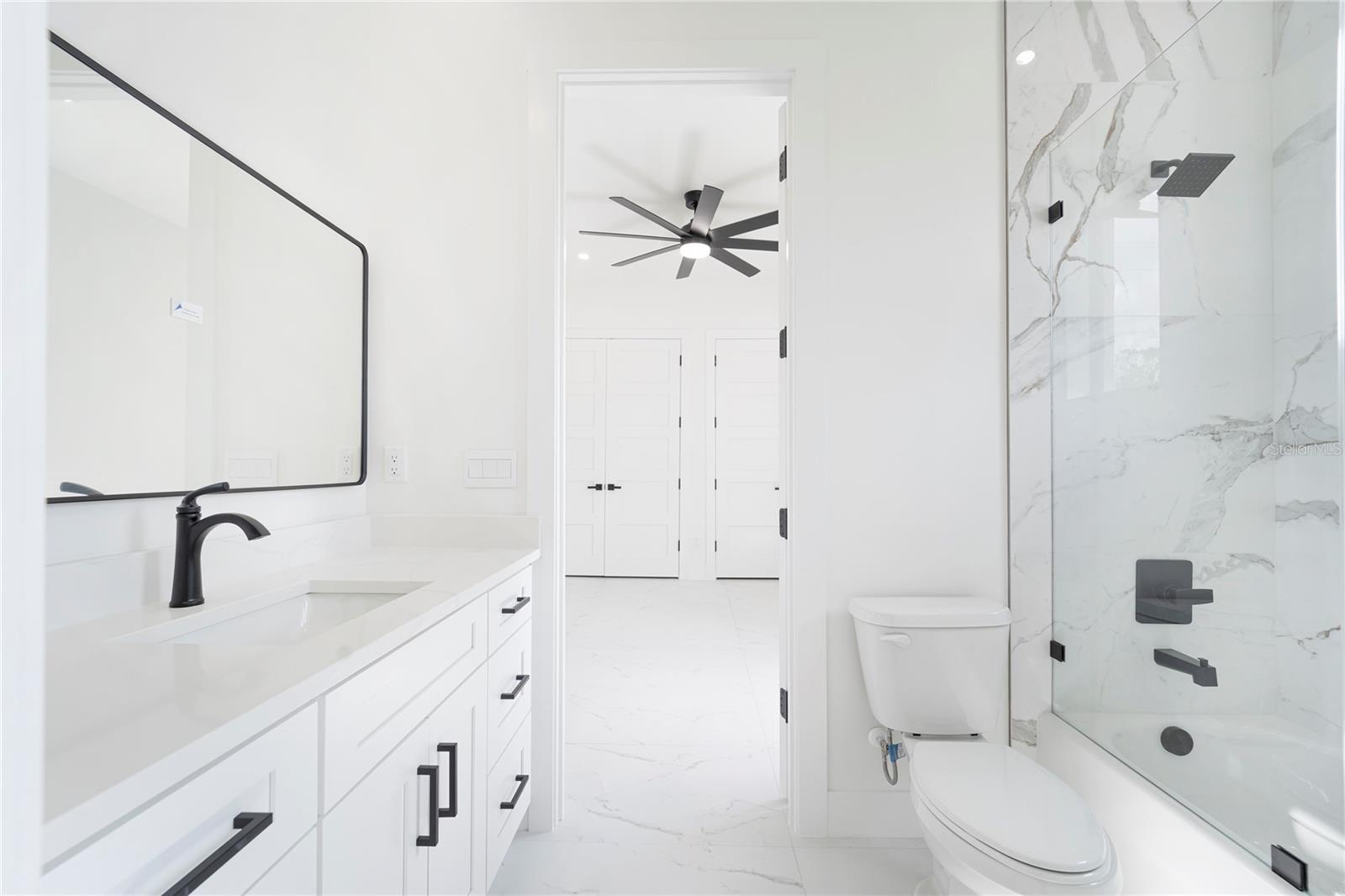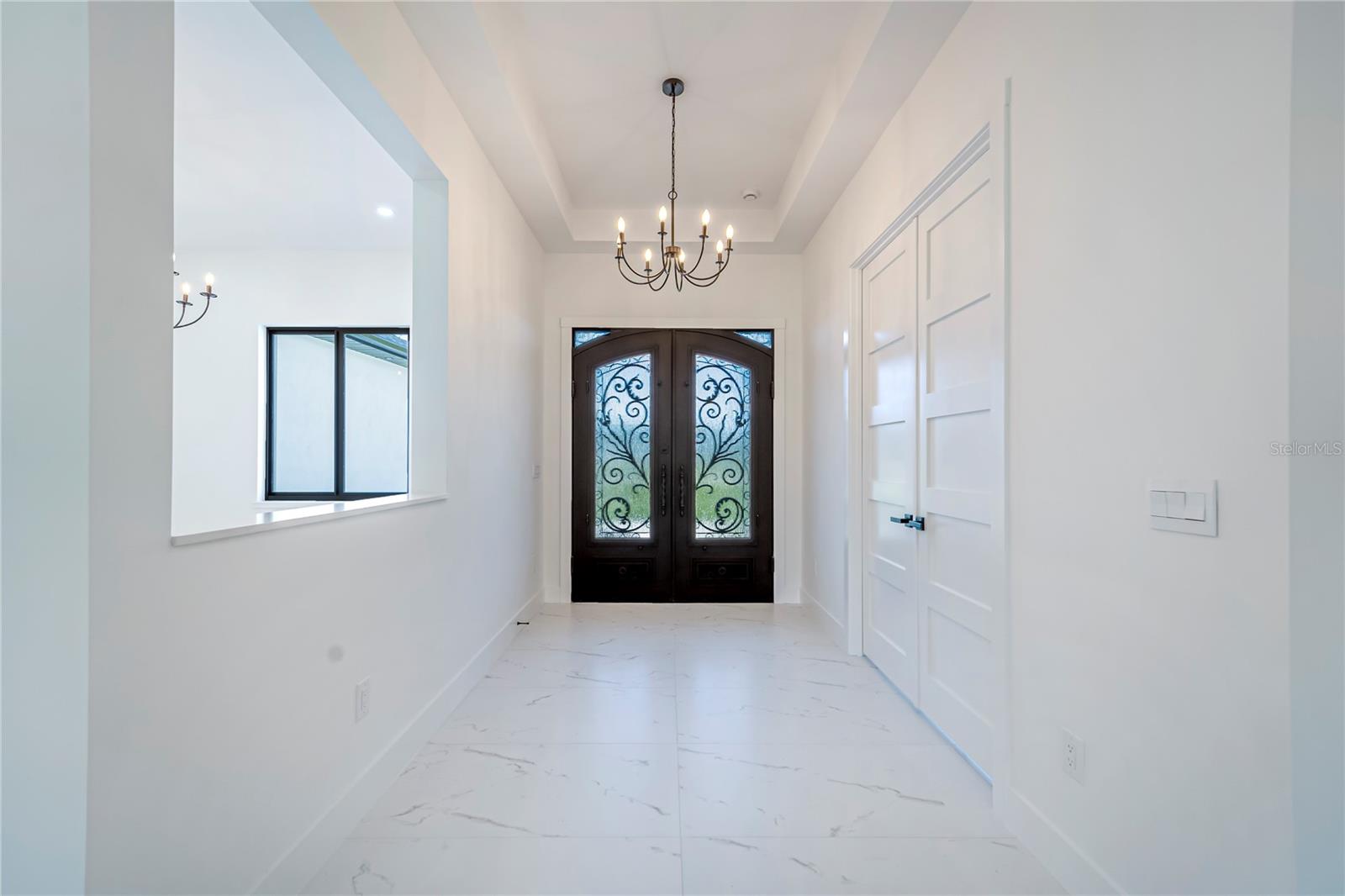 One or more photo(s) has been virtually staged. Stunning Modern Custom Home on Over an Acre in Dover! Welcome to this newly built contemporary masterpiece nestled on 1.05 acres near Diamond Hill Golf Club. This 4-bedroom, 3.5-bath home is thoughtfully designed with high-end finishes and custom craftsmanship throughout. The luxurious primary suite features a spacious walk-in closet that leads to a spa-like bathroom with a freestanding tub and dual-entry shower. An en suite bedroom offers its own private bath, while two additional bedrooms are connected by a stylish Jack & Jill bath. Enjoy elegant porcelain tile flooring, quartz countertops throughout, and floor-to-ceiling custom cabinetry with solid wood doors. The chef’s kitchen boasts stainless steel appliances, a large quartz island, and an abundance of storage. The grand living room showcases a custom wood accent wall, electric fireplace, and built-in TV mount—perfect for entertaining. Step outside to the covered patio and custom outdoor kitchen, ideal for gatherings and Florida living. The oversized 3-car garage features high ceilings, and the expansive driveway accommodates up to 16 vehicles. Other highlights include 8-ft tall 5-panel interior doors and a stunning wrought iron main entrance. This home is a rare blend of elegance, function, and style—don't miss your opportunity to own this exceptional property in a prime Dover location!