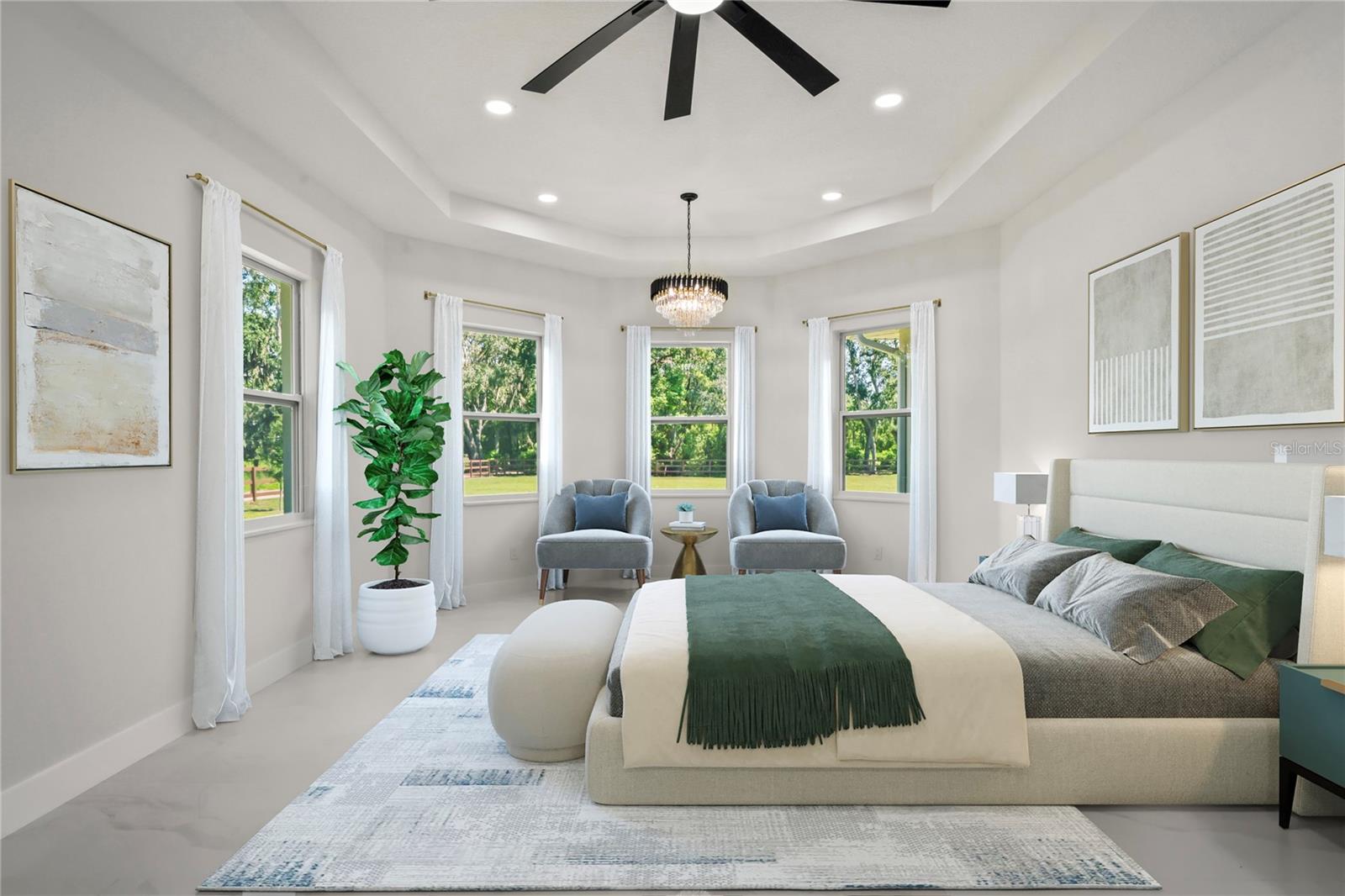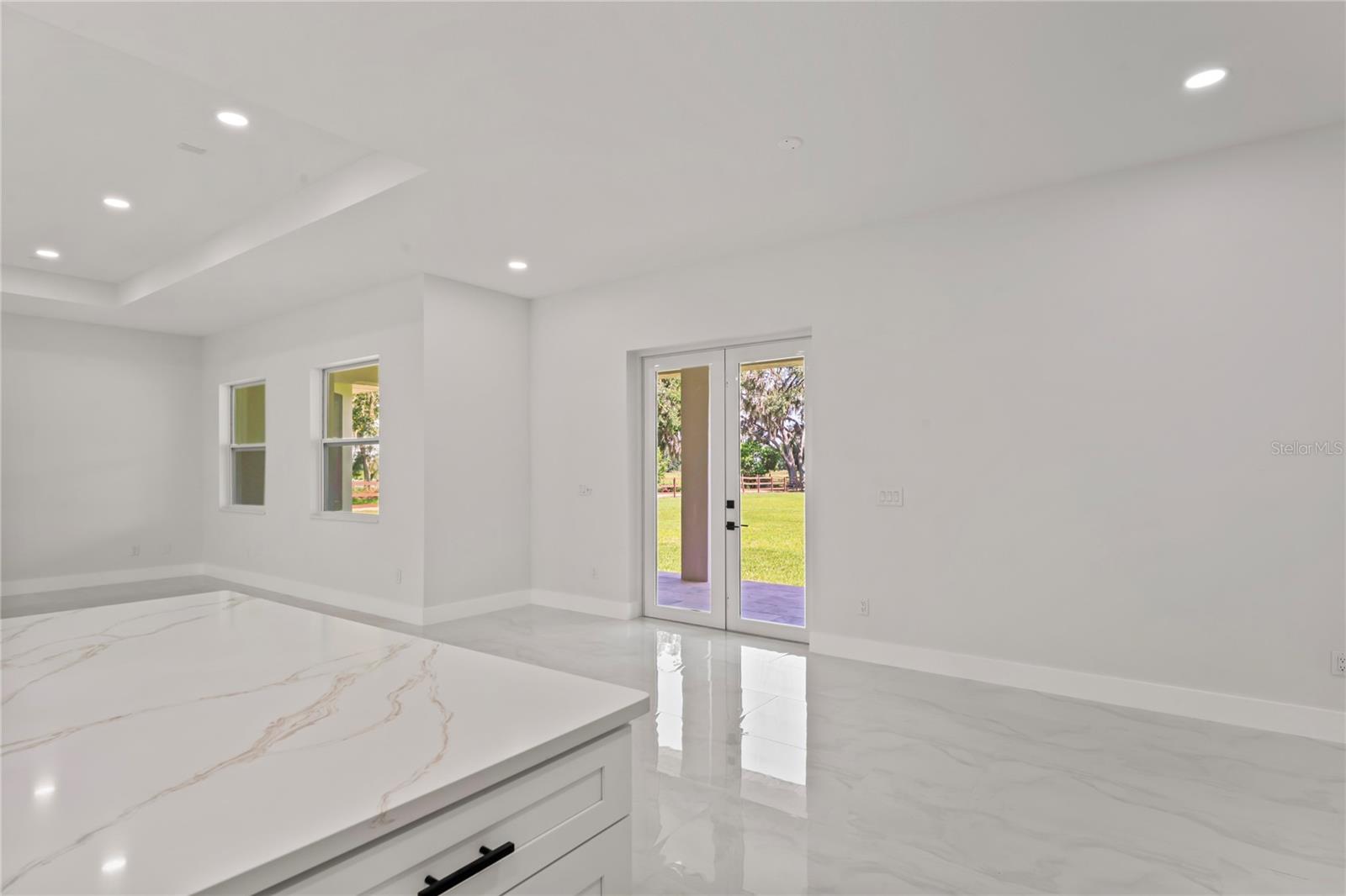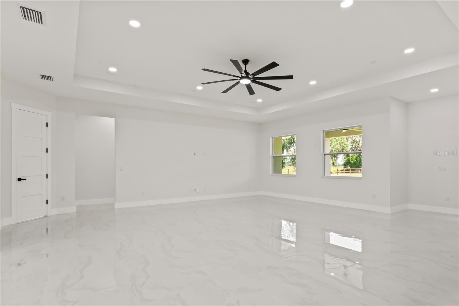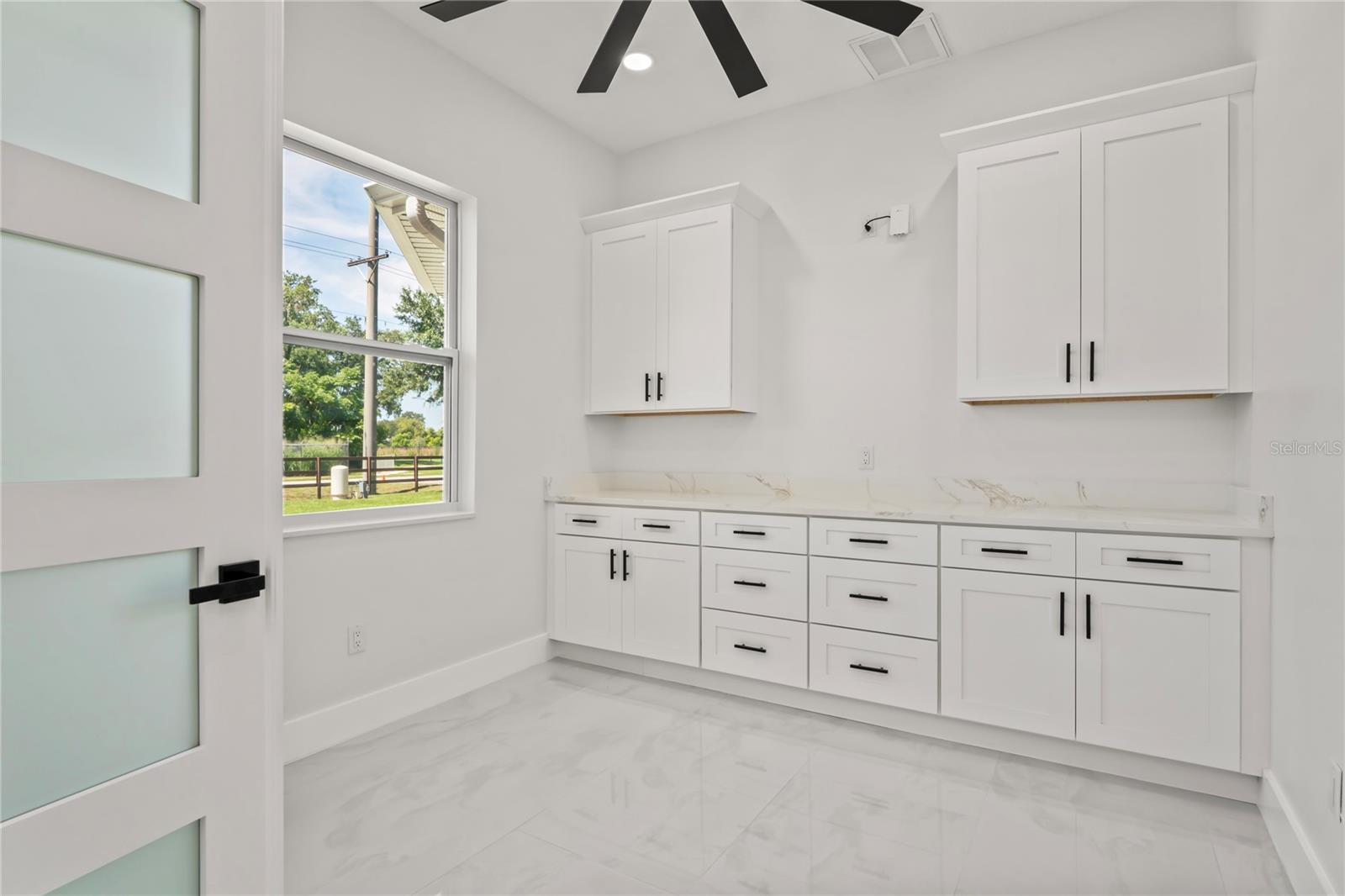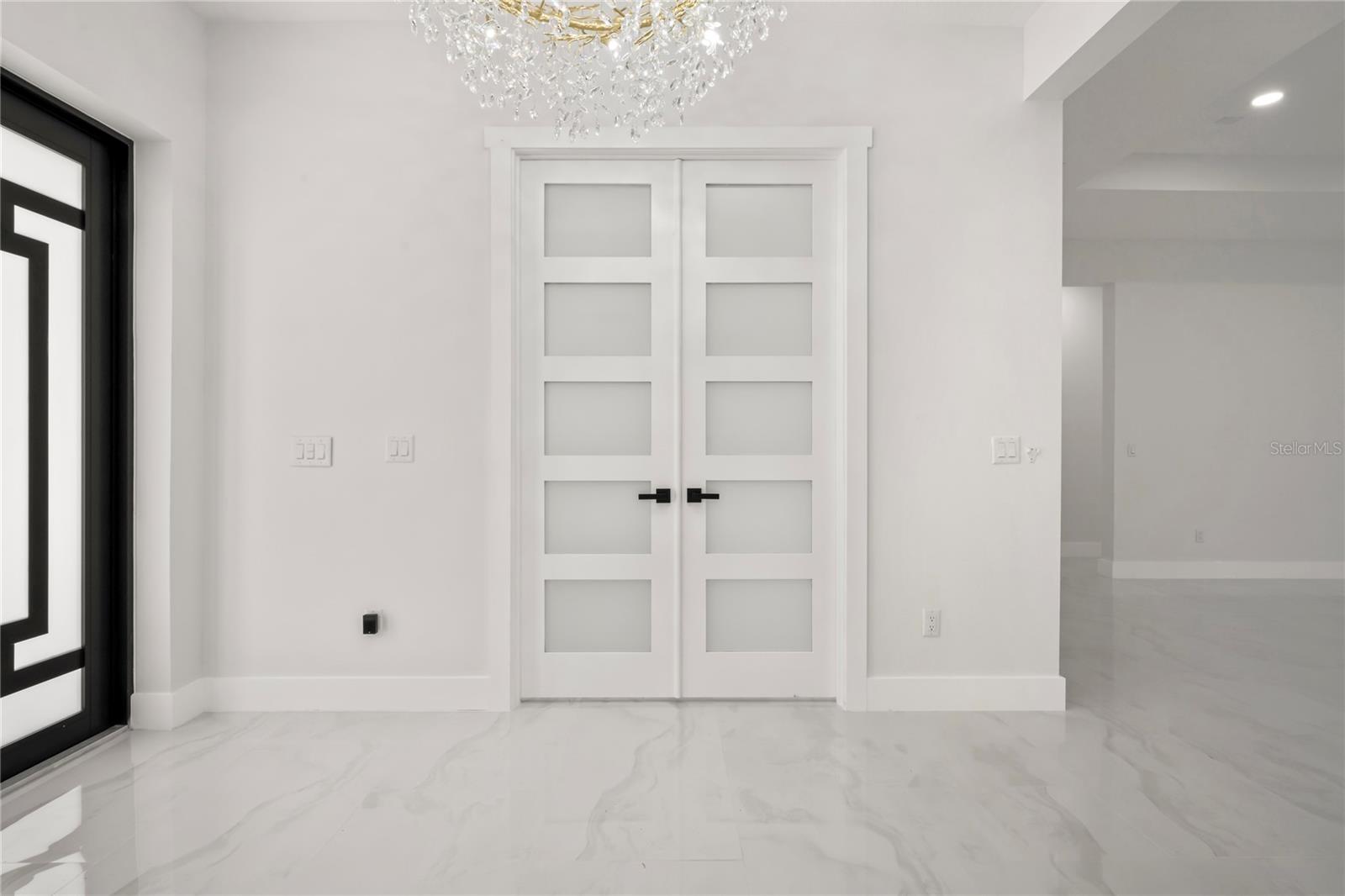 Welcome to Your Florida Home! Newly built in 2025, this stunning modern block home sits on a cleared, fully fenced 1.05-acre lot — beautifully sodded with lush grass, stately palm trees, and a few charming pines for that Florida touch. Step inside through an impressive 9-foot dual door entryway crowned with an elegant chandelier that welcomes you into over 4,600 total square feet of refined living space — including 3,375 sq ft under air with 4 spacious bedrooms and 3.5 luxurious baths. The expansive master suite is truly a private retreat featuring a large his-and-hers walk-in closet, a spa-like bathroom with double vanities, a soaking tub, and a stunning walkthrough triple shower. A second bedroom offers its own ensuite bathroom and walk-in closet, while two additional bedrooms share a convenient Jack-and-Jill bathroom layout — perfect for family or guests. Designed for entertaining, the open floor plan flows seamlessly from the formal living room to a dedicated office with built-in cabinetry, and into the grand family room and gourmet kitchen. The chef’s kitchen boasts an impressive 12’ x 6’ quartz island, extensive white cabinetry, and a complete set of premium KitchenAid stainless steel appliances, including a glass cooktop and sleek range hood. Outside, you’ll love the oversized 3-car garage and expansive wrap-around driveway, providing plenty of parking for family and guests. This is modern Florida living at its finest — spacious, stylish, and move-in ready!