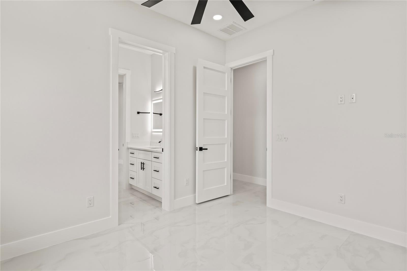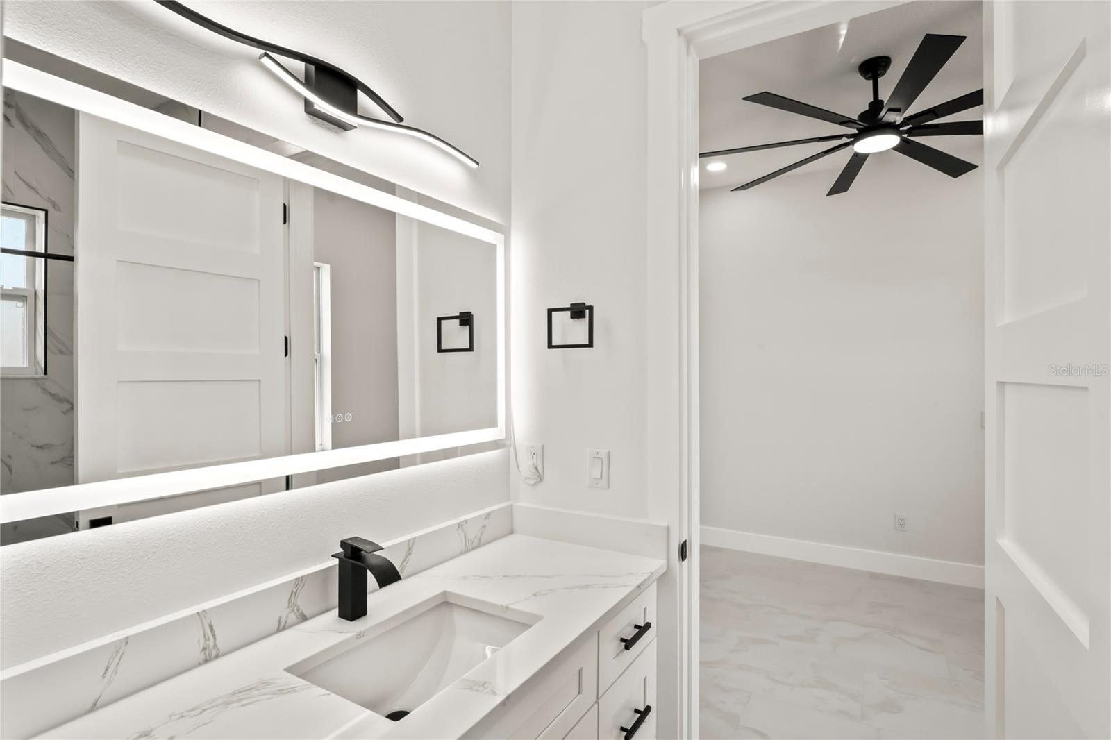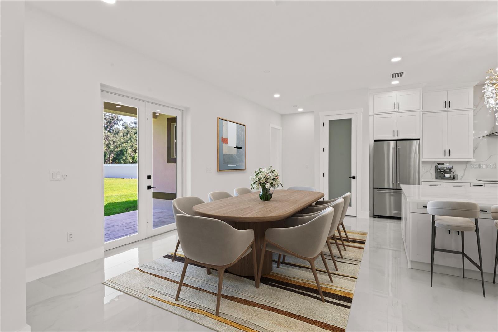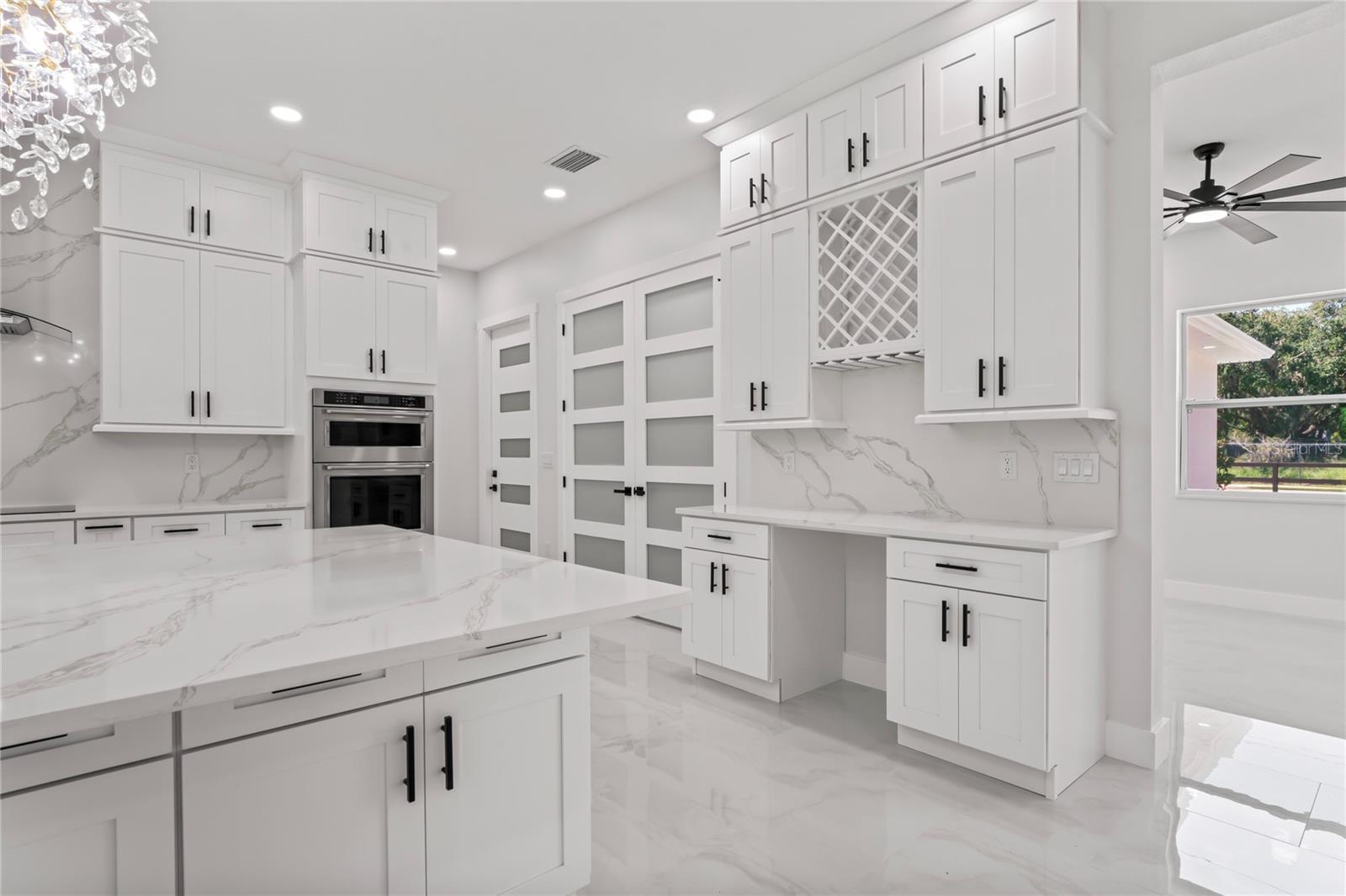 Welcome to Your Florida Home! Newly built in 2025, this stunning modern block home sits on a cleared, fully fenced 1.05-acre lot — beautifully sodded with lush grass, stately palm trees, and a few charming pines for that Florida touch. Step inside through an impressive 9-foot dual door entryway crowned with an elegant chandelier that welcomes you into over 4,600 total square feet of refined living space — including 3,375 sq ft under air with 4 spacious bedrooms and 3.5 luxurious baths. The expansive master suite is truly a private retreat featuring a large his-and-hers walk-in closet, a spa-like bathroom with double vanities, a soaking tub, and a stunning walkthrough triple shower. A second bedroom offers its own ensuite bathroom and walk-in closet, while two additional bedrooms share a convenient Jack-and-Jill bathroom layout — perfect for family or guests. Designed for entertaining, the open floor plan flows seamlessly from the formal living room to a dedicated office with built-in cabinetry, and into the grand family room and gourmet kitchen. The chef’s kitchen boasts an impressive 12’ x 6’ quartz island, extensive white cabinetry, and a complete set of premium KitchenAid stainless steel appliances, including a glass cooktop and sleek range hood. Outside, you’ll love the oversized 3-car garage and expansive wrap-around driveway, providing plenty of parking for family and guests. This is modern Florida living at its finest — spacious, stylish, and move-in ready!