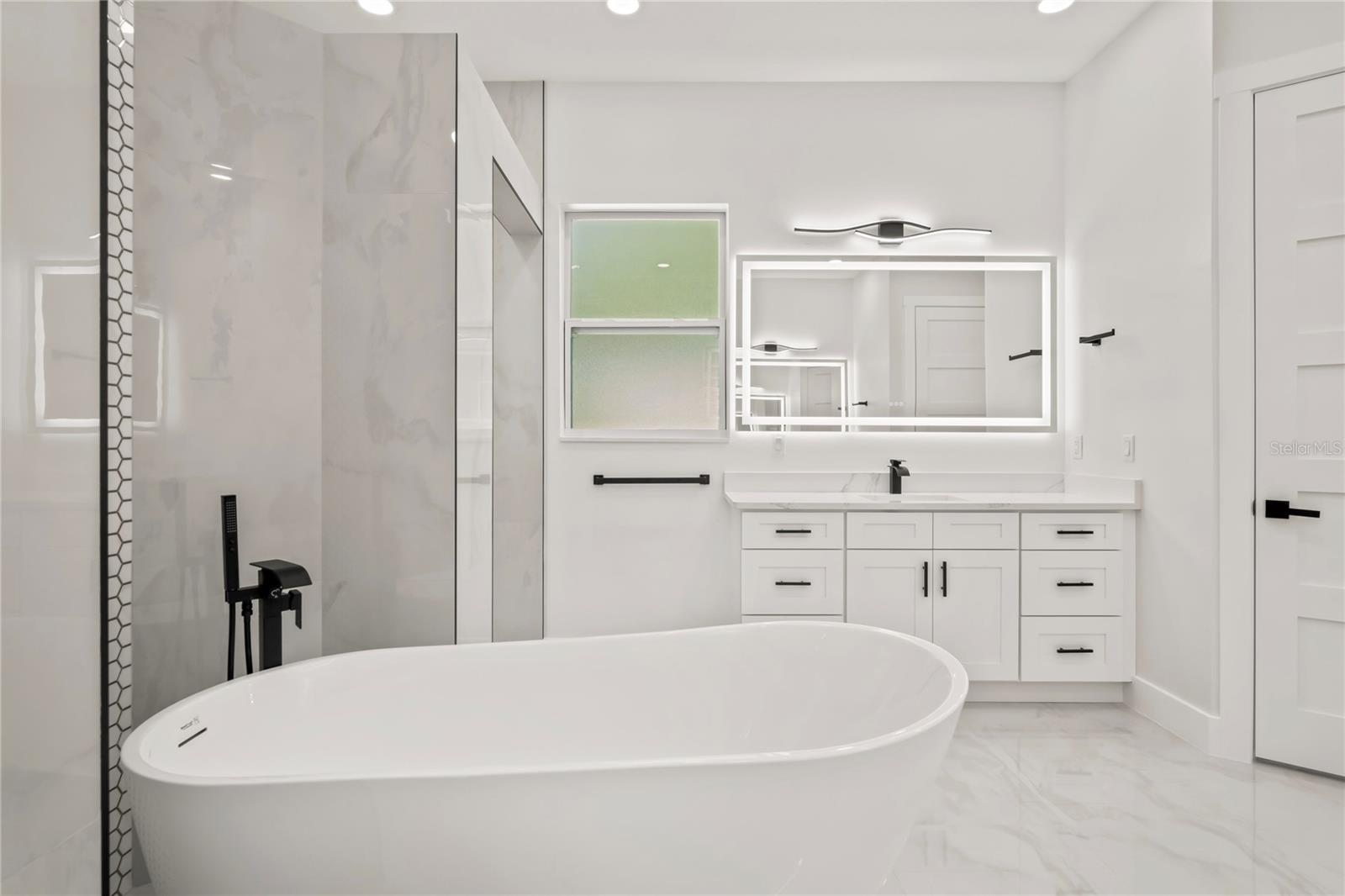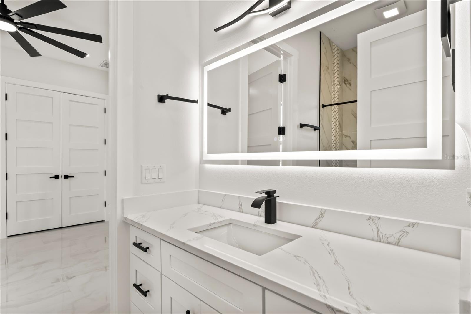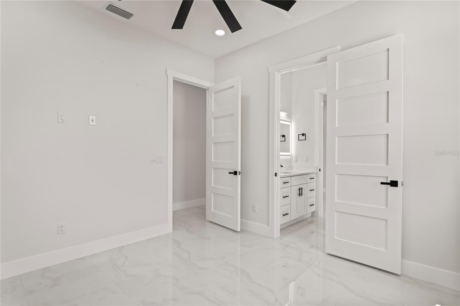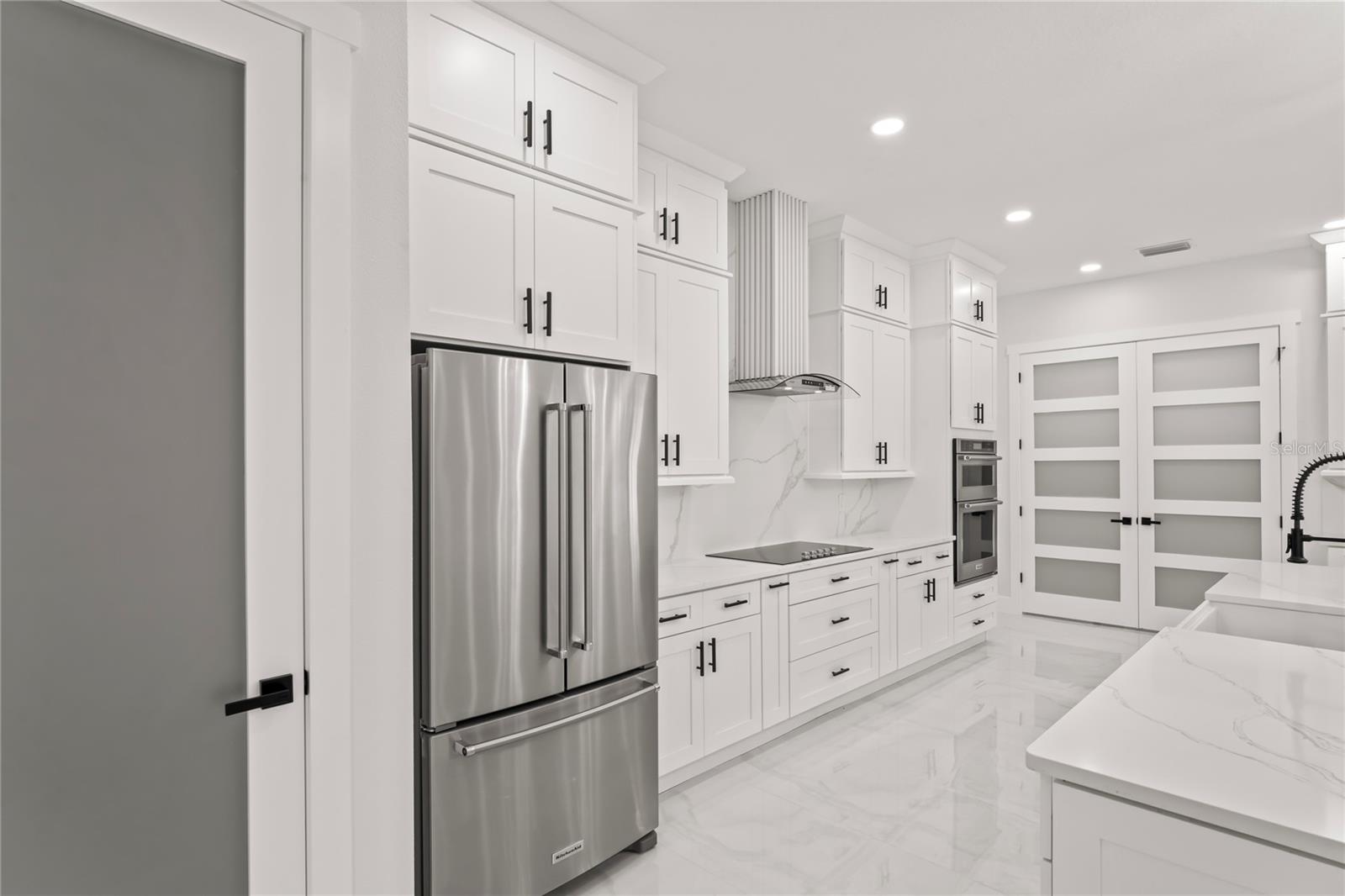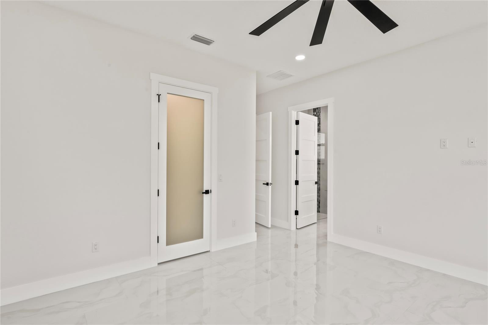 Welcome to Your Florida Home! Newly built in 2025, this stunning modern block home sits on a cleared, fully fenced 1.05-acre lot — beautifully sodded with lush grass, stately palm trees, and a few charming pines for that Florida touch. Step inside through an impressive 9-foot dual door entryway crowned with an elegant chandelier that welcomes you into over 4,600 total square feet of refined living space — including 3,375 sq ft under air with 4 spacious bedrooms and 3.5 luxurious baths. The expansive master suite is truly a private retreat featuring a large his-and-hers walk-in closet, a spa-like bathroom with double vanities, a soaking tub, and a stunning walkthrough triple shower. A second bedroom offers its own ensuite bathroom and walk-in closet, while two additional bedrooms share a convenient Jack-and-Jill bathroom layout — perfect for family or guests. Designed for entertaining, the open floor plan flows seamlessly from the formal living room to a dedicated office with built-in cabinetry, and into the grand family room and gourmet kitchen. The chef’s kitchen boasts an impressive 12’ x 6’ quartz island, extensive white cabinetry, and a complete set of premium KitchenAid stainless steel appliances, including a glass cooktop and sleek range hood. Outside, you’ll love the oversized 3-car garage and expansive wrap-around driveway, providing plenty of parking for family and guests. This is modern Florida living at its finest — spacious, stylish, and move-in ready!