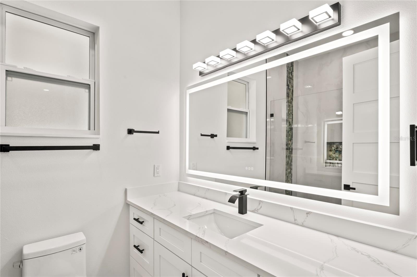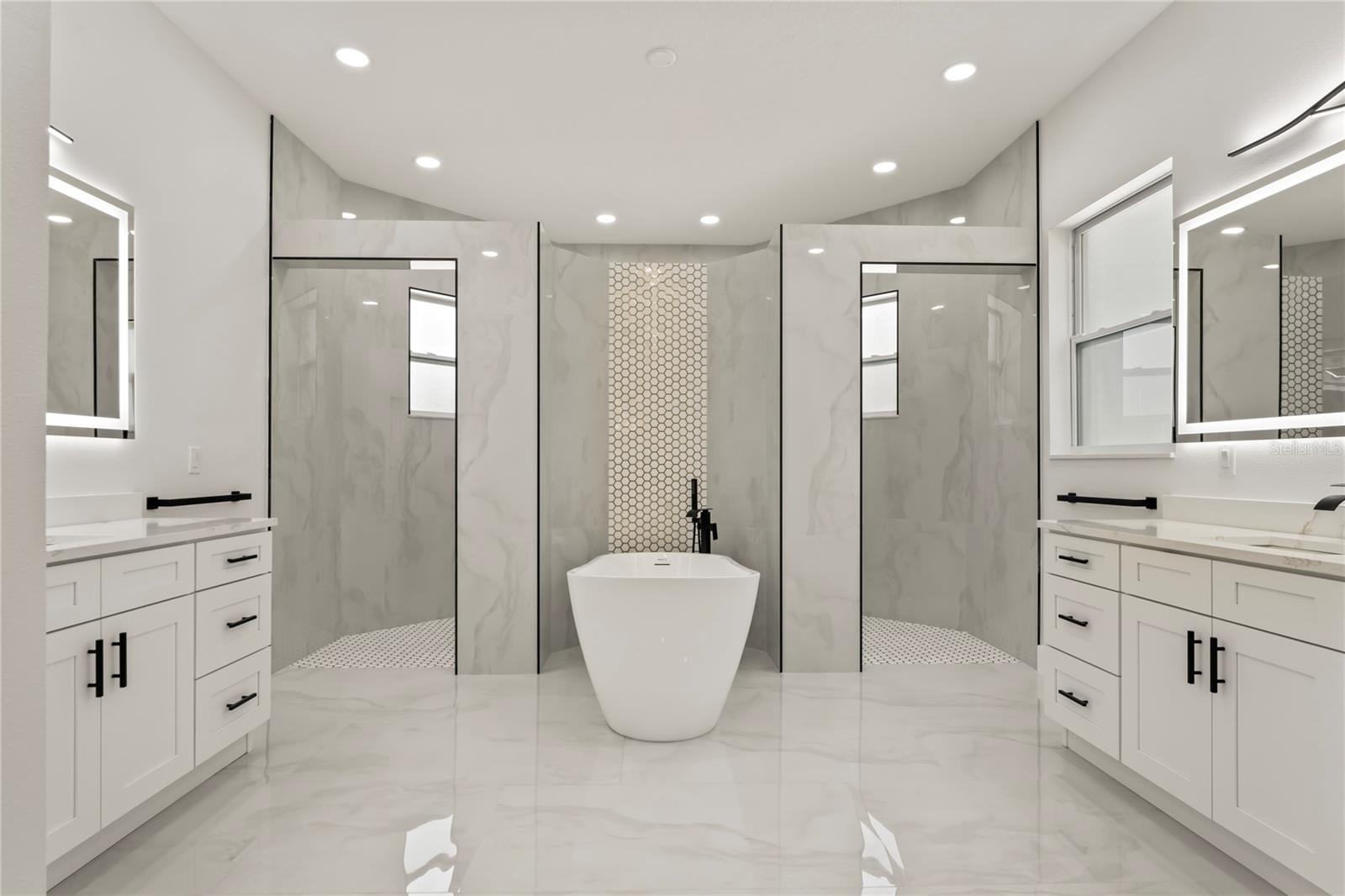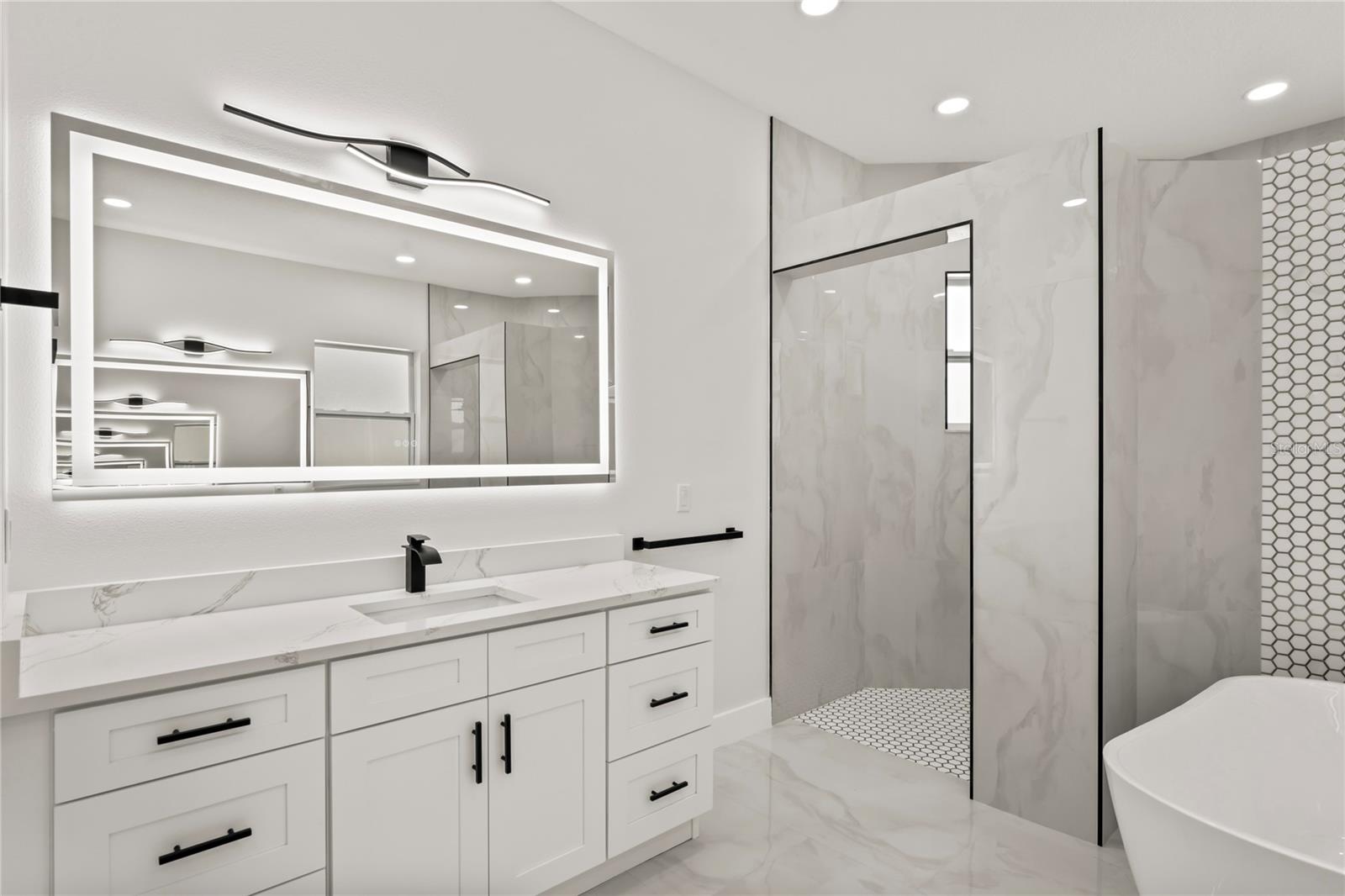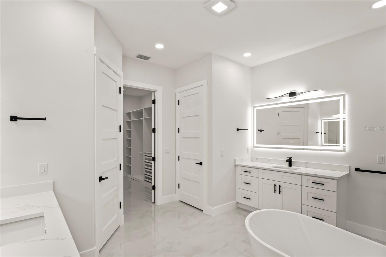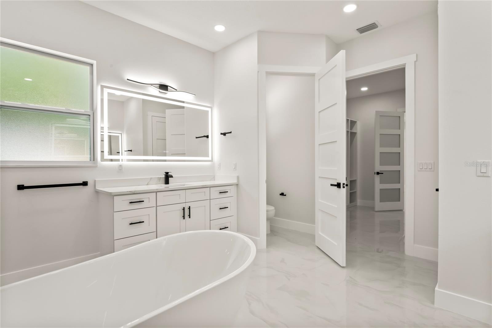 Welcome to Your Florida Home! Newly built in 2025, this stunning modern block home sits on a cleared, fully fenced 1.05-acre lot — beautifully sodded with lush grass, stately palm trees, and a few charming pines for that Florida touch. Step inside through an impressive 9-foot dual door entryway crowned with an elegant chandelier that welcomes you into over 4,600 total square feet of refined living space — including 3,375 sq ft under air with 4 spacious bedrooms and 3.5 luxurious baths. The expansive master suite is truly a private retreat featuring a large his-and-hers walk-in closet, a spa-like bathroom with double vanities, a soaking tub, and a stunning walkthrough triple shower. A second bedroom offers its own ensuite bathroom and walk-in closet, while two additional bedrooms share a convenient Jack-and-Jill bathroom layout — perfect for family or guests. Designed for entertaining, the open floor plan flows seamlessly from the formal living room to a dedicated office with built-in cabinetry, and into the grand family room and gourmet kitchen. The chef’s kitchen boasts an impressive 12’ x 6’ quartz island, extensive white cabinetry, and a complete set of premium KitchenAid stainless steel appliances, including a glass cooktop and sleek range hood. Outside, you’ll love the oversized 3-car garage and expansive wrap-around driveway, providing plenty of parking for family and guests. This is modern Florida living at its finest — spacious, stylish, and move-in ready!