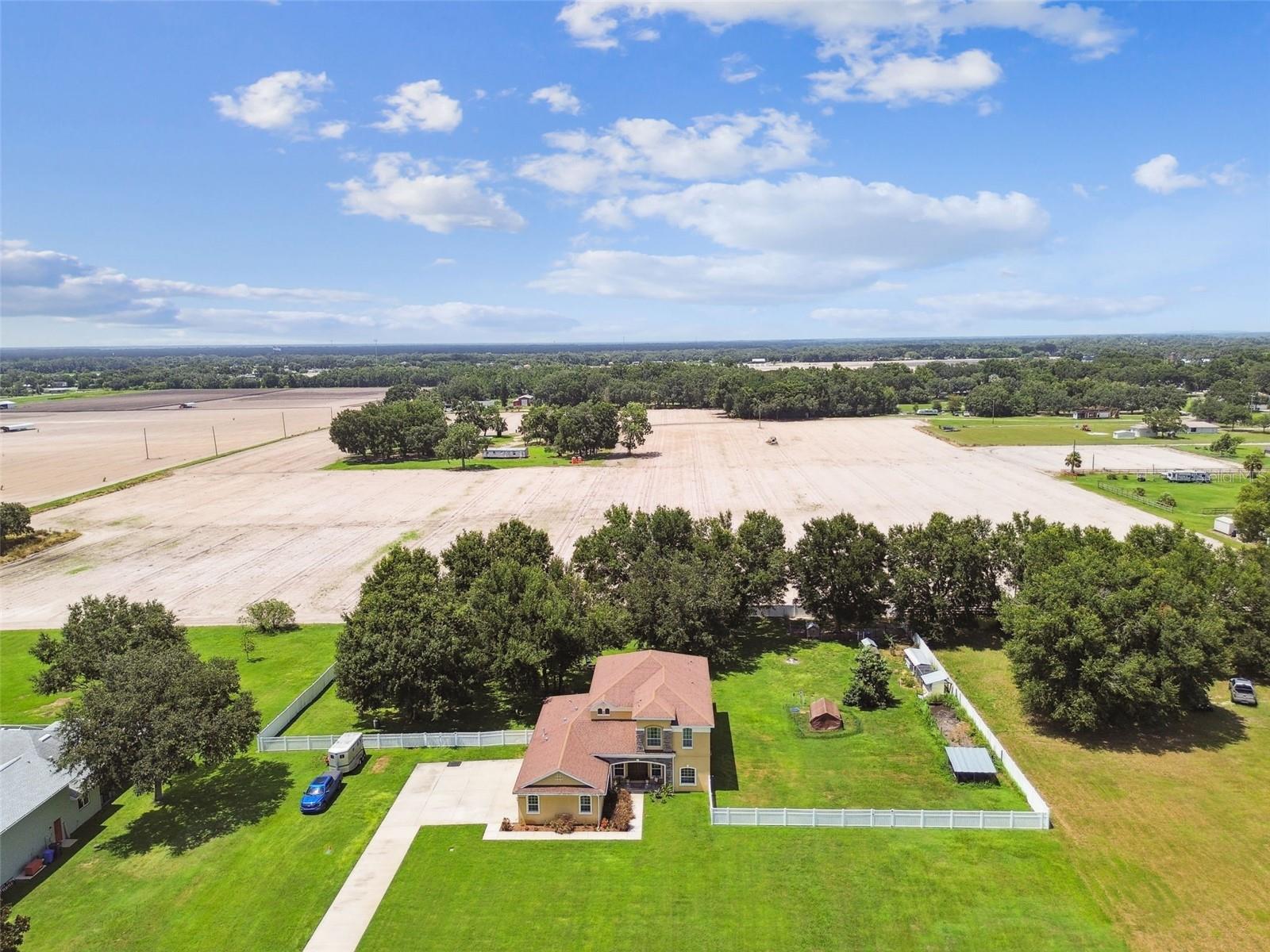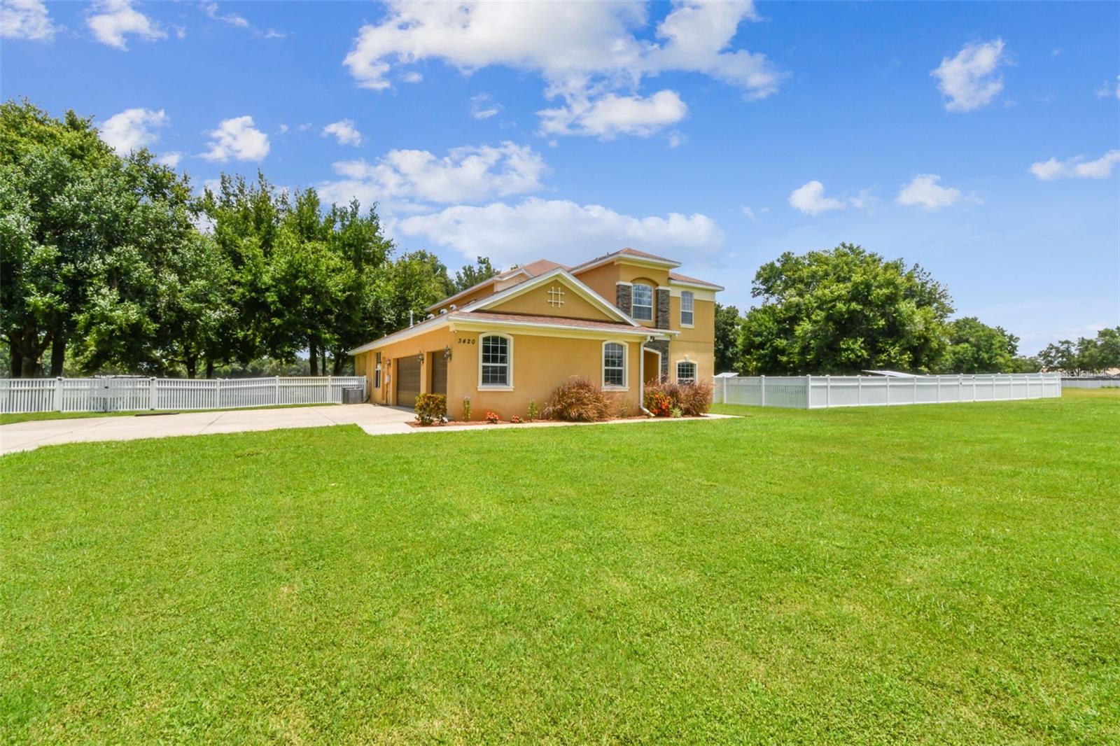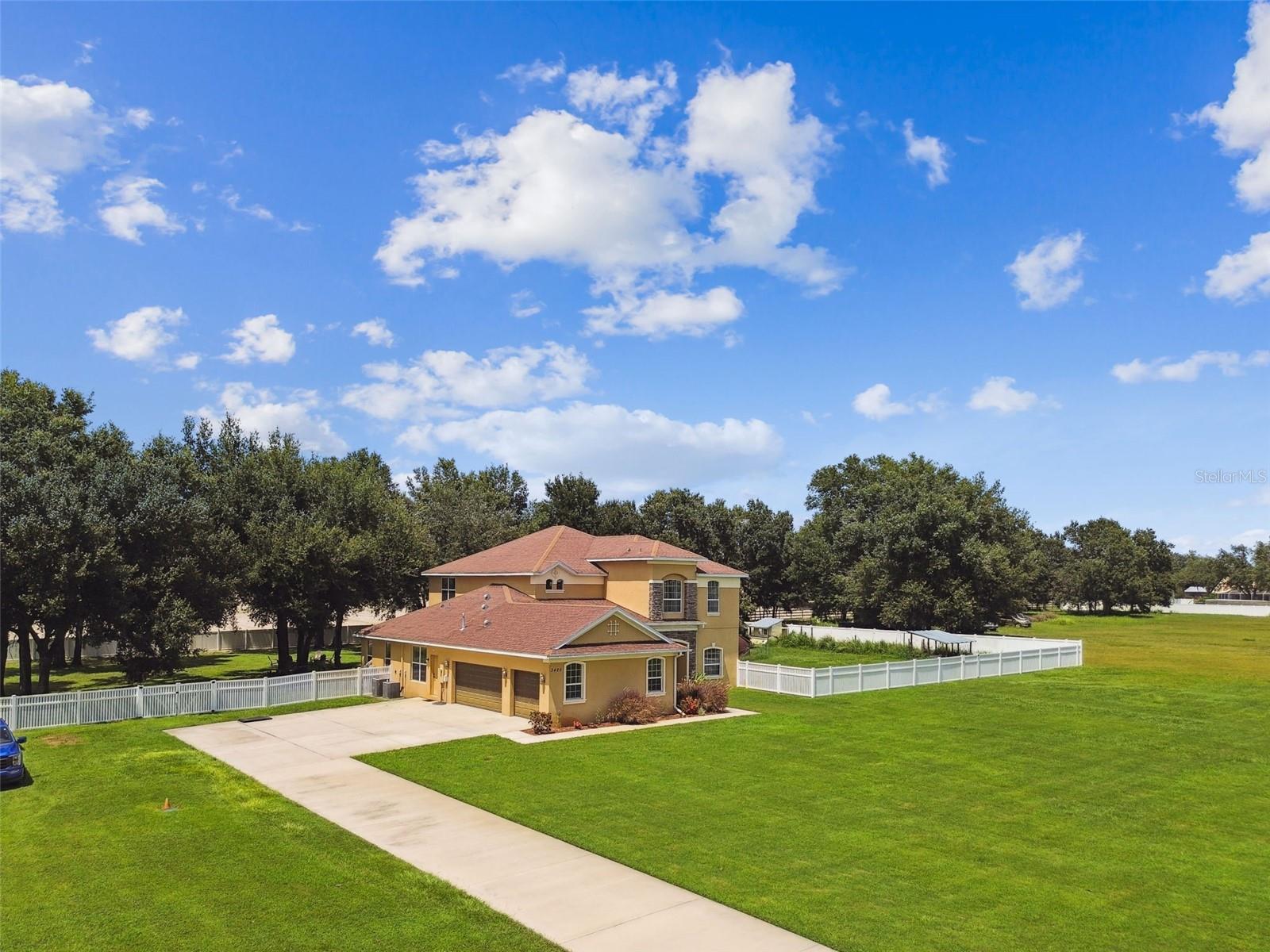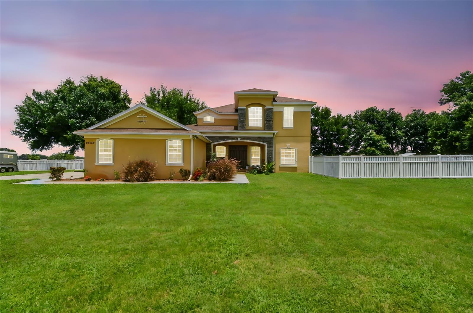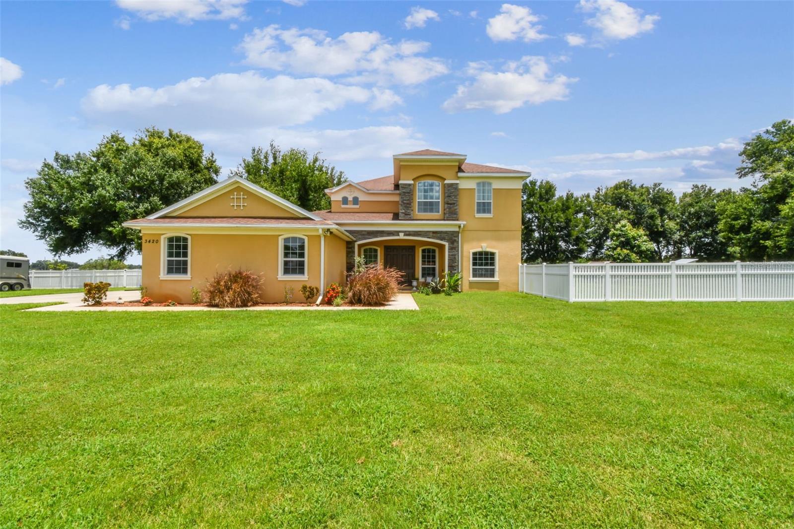 NO HOA, NO CDD - Nestled on a lush 1.6-acre parcel, this remarkable residence offers the ideal blend of sophistication, comfort, and functional design. With over 4,400 square feet of living space, this four-bedroom, three-bathroom, and two half-bath property is crafted for both everyday living and exceptional entertaining. Upon arrival, guests are welcomed by double front doors that lead into a grand foyer, defined by soaring ceilings and elegant porcelain tile floors. The formal living room provides a refined atmosphere for hosting, while a thoughtfully placed half bath ensures convenience for visitors. The expansive great room is the centerpiece of the home, filled with natural light from sliding doors that open to panoramic views of the fully fenced backyard. There is generous space for gatherings, recreation, and seamless flow to the kitchen, an entertainer’s dream. The kitchen is a showcase of style and practicality, featuring granite countertops, a designer tile backsplash, stainless steel appliances, gas range with pot filler, beverage refrigerator, and rich dark cherry cabinetry. Adjacent to the kitchen, a separate dining room offers the perfect setting for memorable dinners and special occasions. Downstairs, the mother-in-law suite is a standout feature, complete with private access, spacious bedroom, full bath, living area, and plumbing and wiring for a future kitchen and laundry. This suite is ideal for guests, multi-generational living, or as a private apartment. Upstairs, the owner’s suite provides a luxurious retreat, including a spa-inspired bathroom with dual vanities, garden tub, and a grand double-entry walk-in shower. The oversized closet offers abundant space for wardrobe storage. The secondary bedrooms are generously proportioned and strategically situated, each opening to a central media room equipped with a projector, perfect for movie nights, sports events, or relaxed family time. Every space is thoughtfully designed to provide both privacy and connection. Outdoor living is fully realized with a screened lanai and open patio, perfect for morning coffee or evening gatherings. The expansive yard backs to tranquil farmland and features an avocado tree, with ample space to add a pool, store recreational equipment, or allow pets to roam. Additional amenities include a three-car side-load garage and a spacious driveway, providing plenty of parking and storage. Located minutes from I-4, this estate offers easy access to downtown Tampa, Orlando, and local shops. This exceptional estate is more than a home . It is a lifestyle destination. Whether entertaining, hosting family, or enjoying the serenity of the grounds, every detail is designed for comfort, enjoyment, and lasting memories