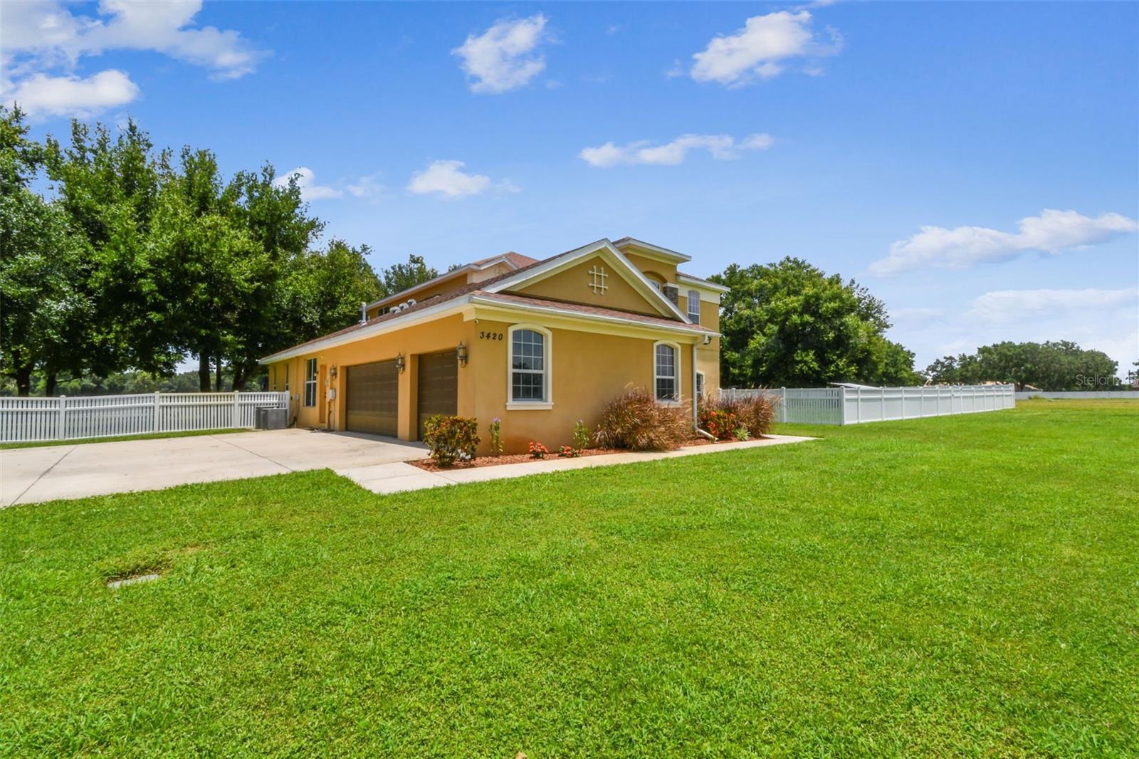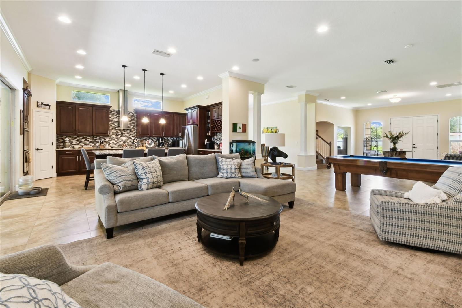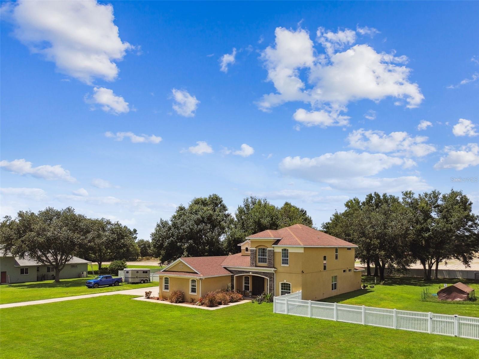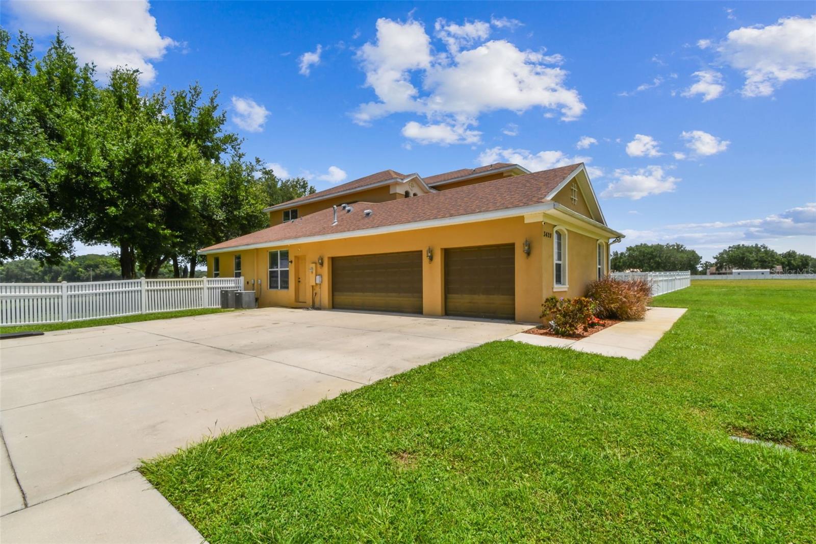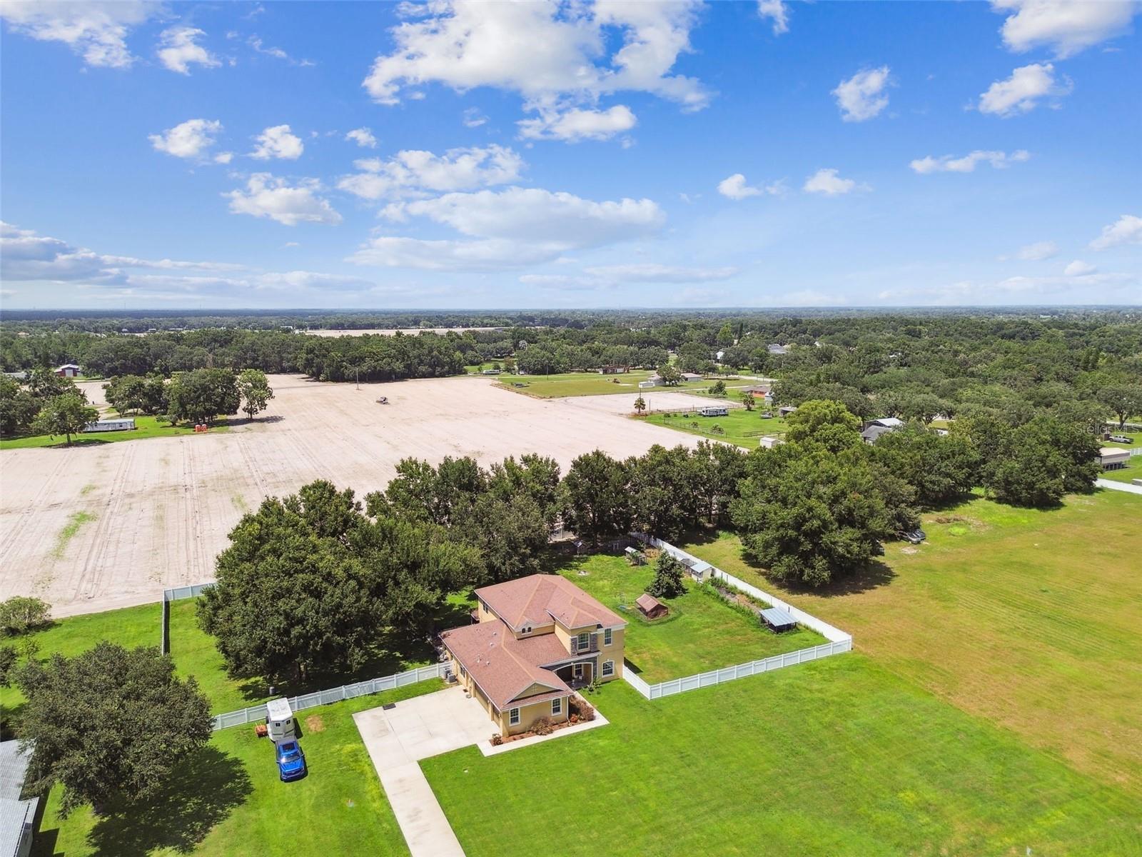 NO HOA, NO CDD - Nestled on a lush 1.6-acre parcel, this remarkable residence offers the ideal blend of sophistication, comfort, and functional design. With over 4,400 square feet of living space, this four-bedroom, three-bathroom, and two half-bath property is crafted for both everyday living and exceptional entertaining. Upon arrival, guests are welcomed by double front doors that lead into a grand foyer, defined by soaring ceilings and elegant porcelain tile floors. The formal living room provides a refined atmosphere for hosting, while a thoughtfully placed half bath ensures convenience for visitors. The expansive great room is the centerpiece of the home, filled with natural light from sliding doors that open to panoramic views of the fully fenced backyard. There is generous space for gatherings, recreation, and seamless flow to the kitchen, an entertainer’s dream. The kitchen is a showcase of style and practicality, featuring granite countertops, a designer tile backsplash, stainless steel appliances, gas range with pot filler, beverage refrigerator, and rich dark cherry cabinetry. Adjacent to the kitchen, a separate dining room offers the perfect setting for memorable dinners and special occasions. Downstairs, the mother-in-law suite is a standout feature, complete with private access, spacious bedroom, full bath, living area, and plumbing and wiring for a future kitchen and laundry. This suite is ideal for guests, multi-generational living, or as a private apartment. Upstairs, the owner’s suite provides a luxurious retreat, including a spa-inspired bathroom with dual vanities, garden tub, and a grand double-entry walk-in shower. The oversized closet offers abundant space for wardrobe storage. The secondary bedrooms are generously proportioned and strategically situated, each opening to a central media room equipped with a projector, perfect for movie nights, sports events, or relaxed family time. Every space is thoughtfully designed to provide both privacy and connection. Outdoor living is fully realized with a screened lanai and open patio, perfect for morning coffee or evening gatherings. The expansive yard backs to tranquil farmland and features an avocado tree, with ample space to add a pool, store recreational equipment, or allow pets to roam. Additional amenities include a three-car side-load garage and a spacious driveway, providing plenty of parking and storage. Located minutes from I-4, this estate offers easy access to downtown Tampa, Orlando, and local shops. This exceptional estate is more than a home . It is a lifestyle destination. Whether entertaining, hosting family, or enjoying the serenity of the grounds, every detail is designed for comfort, enjoyment, and lasting memories