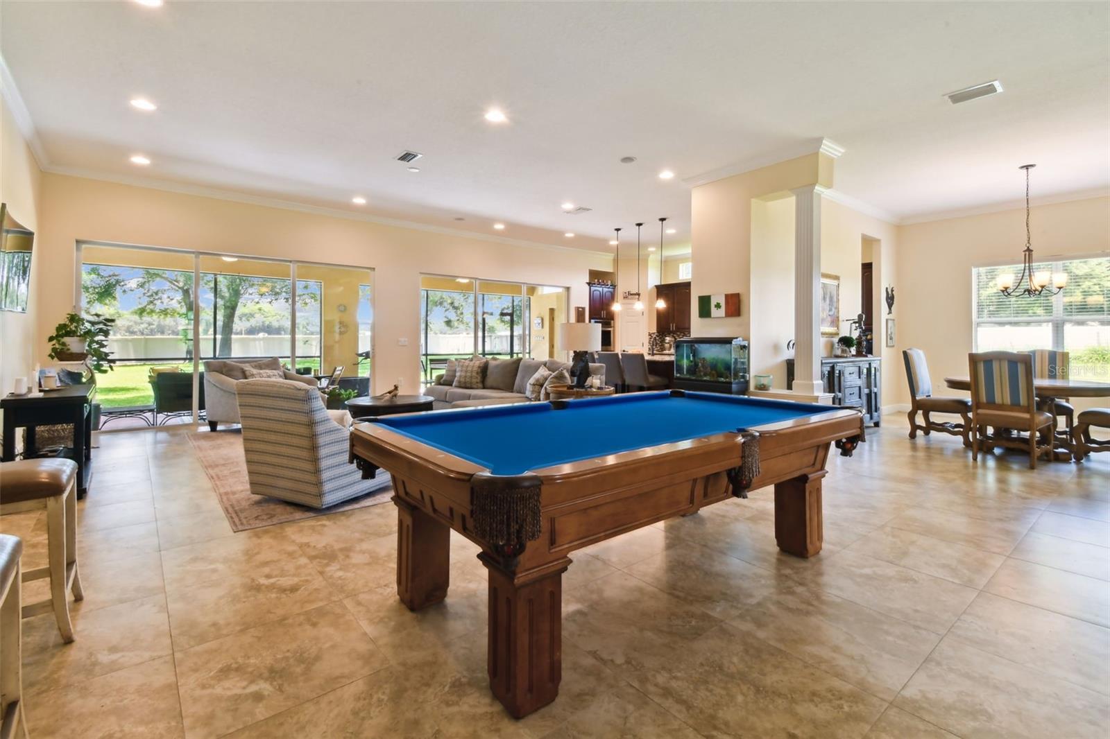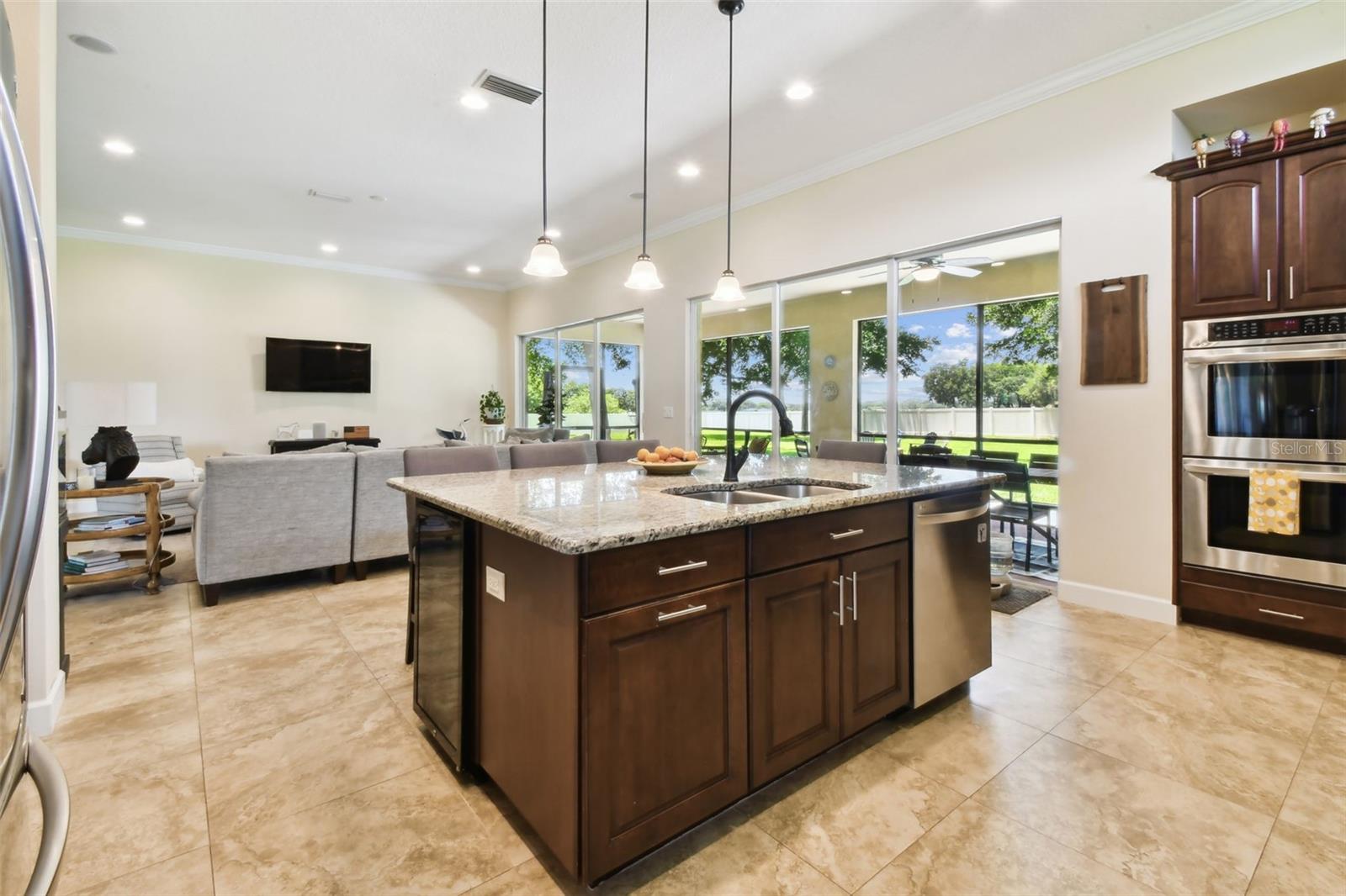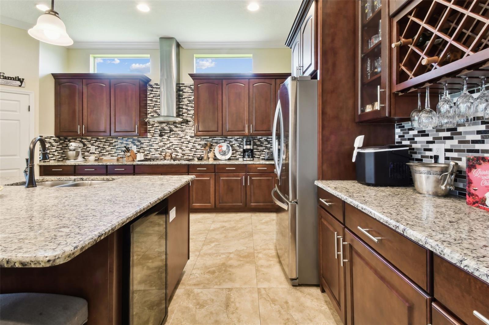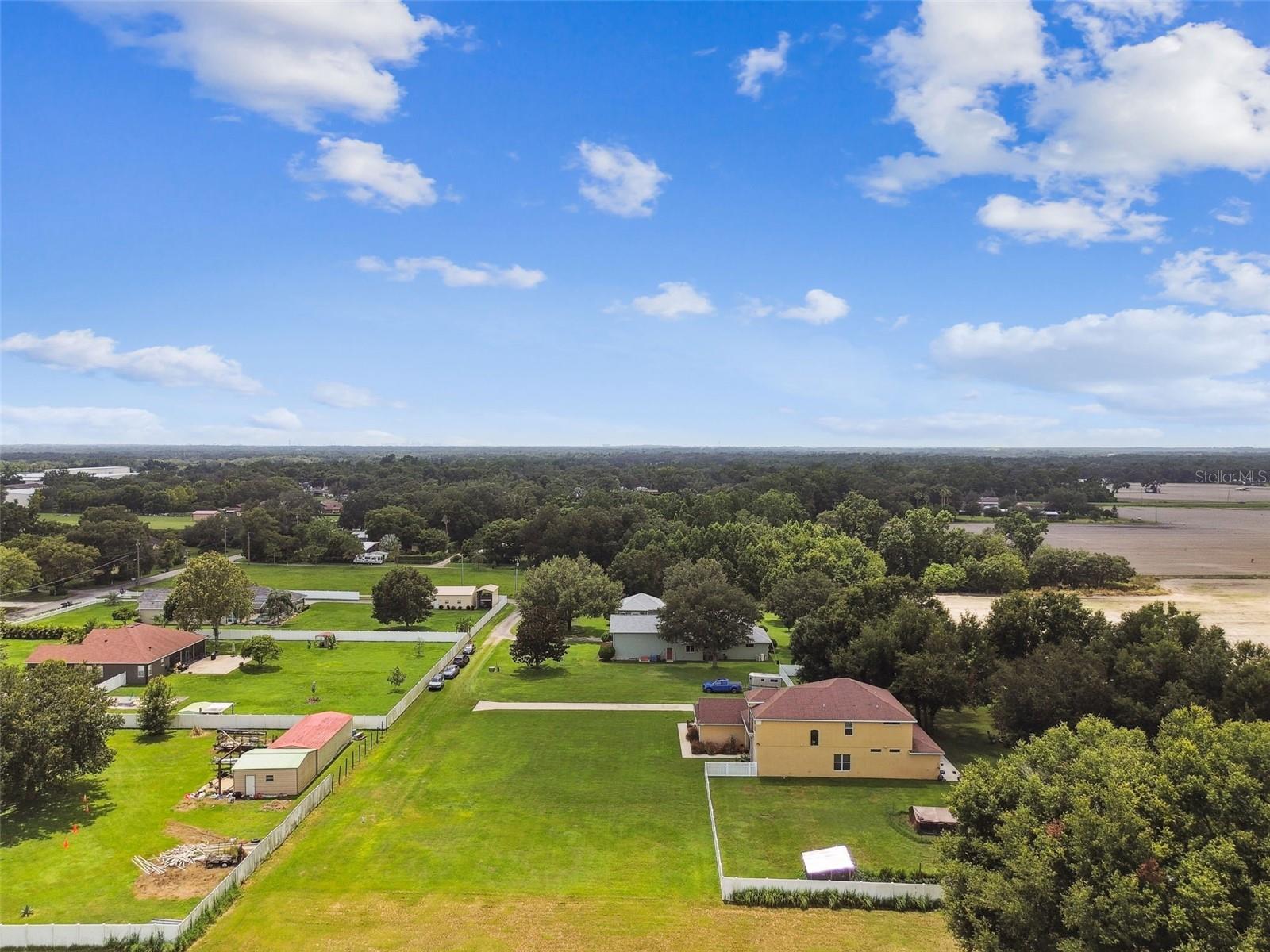 NO HOA, NO CDD - Nestled on a lush 1.6-acre parcel, this remarkable residence offers the ideal blend of sophistication, comfort, and functional design. With over 4,400 square feet of living space, this four-bedroom, three-bathroom, and two half-bath property is crafted for both everyday living and exceptional entertaining. Upon arrival, guests are welcomed by double front doors that lead into a grand foyer, defined by soaring ceilings and elegant porcelain tile floors. The formal living room provides a refined atmosphere for hosting, while a thoughtfully placed half bath ensures convenience for visitors. The expansive great room is the centerpiece of the home, filled with natural light from sliding doors that open to panoramic views of the fully fenced backyard. There is generous space for gatherings, recreation, and seamless flow to the kitchen, an entertainer’s dream. The kitchen is a showcase of style and practicality, featuring granite countertops, a designer tile backsplash, stainless steel appliances, gas range with pot filler, beverage refrigerator, and rich dark cherry cabinetry. Adjacent to the kitchen, a separate dining room offers the perfect setting for memorable dinners and special occasions. Downstairs, the mother-in-law suite is a standout feature, complete with private access, spacious bedroom, full bath, living area, and plumbing and wiring for a future kitchen and laundry. This suite is ideal for guests, multi-generational living, or as a private apartment. Upstairs, the owner’s suite provides a luxurious retreat, including a spa-inspired bathroom with dual vanities, garden tub, and a grand double-entry walk-in shower. The oversized closet offers abundant space for wardrobe storage. The secondary bedrooms are generously proportioned and strategically situated, each opening to a central media room equipped with a projector, perfect for movie nights, sports events, or relaxed family time. Every space is thoughtfully designed to provide both privacy and connection. Outdoor living is fully realized with a screened lanai and open patio, perfect for morning coffee or evening gatherings. The expansive yard backs to tranquil farmland and features an avocado tree, with ample space to add a pool, store recreational equipment, or allow pets to roam. Additional amenities include a three-car side-load garage and a spacious driveway, providing plenty of parking and storage. Located minutes from I-4, this estate offers easy access to downtown Tampa, Orlando, and local shops. This exceptional estate is more than a home . It is a lifestyle destination. Whether entertaining, hosting family, or enjoying the serenity of the grounds, every detail is designed for comfort, enjoyment, and lasting memories