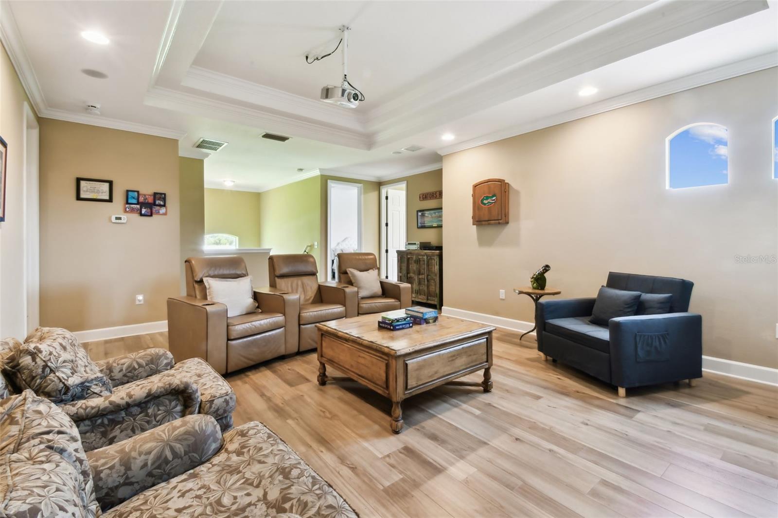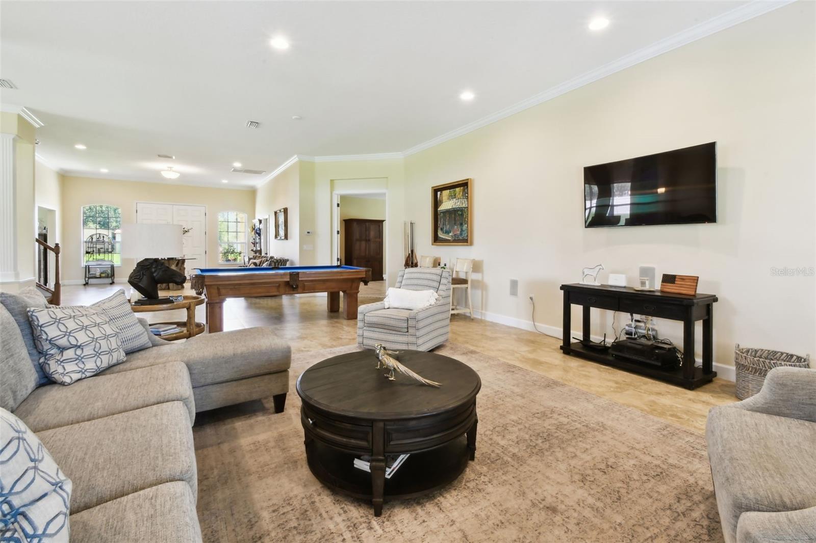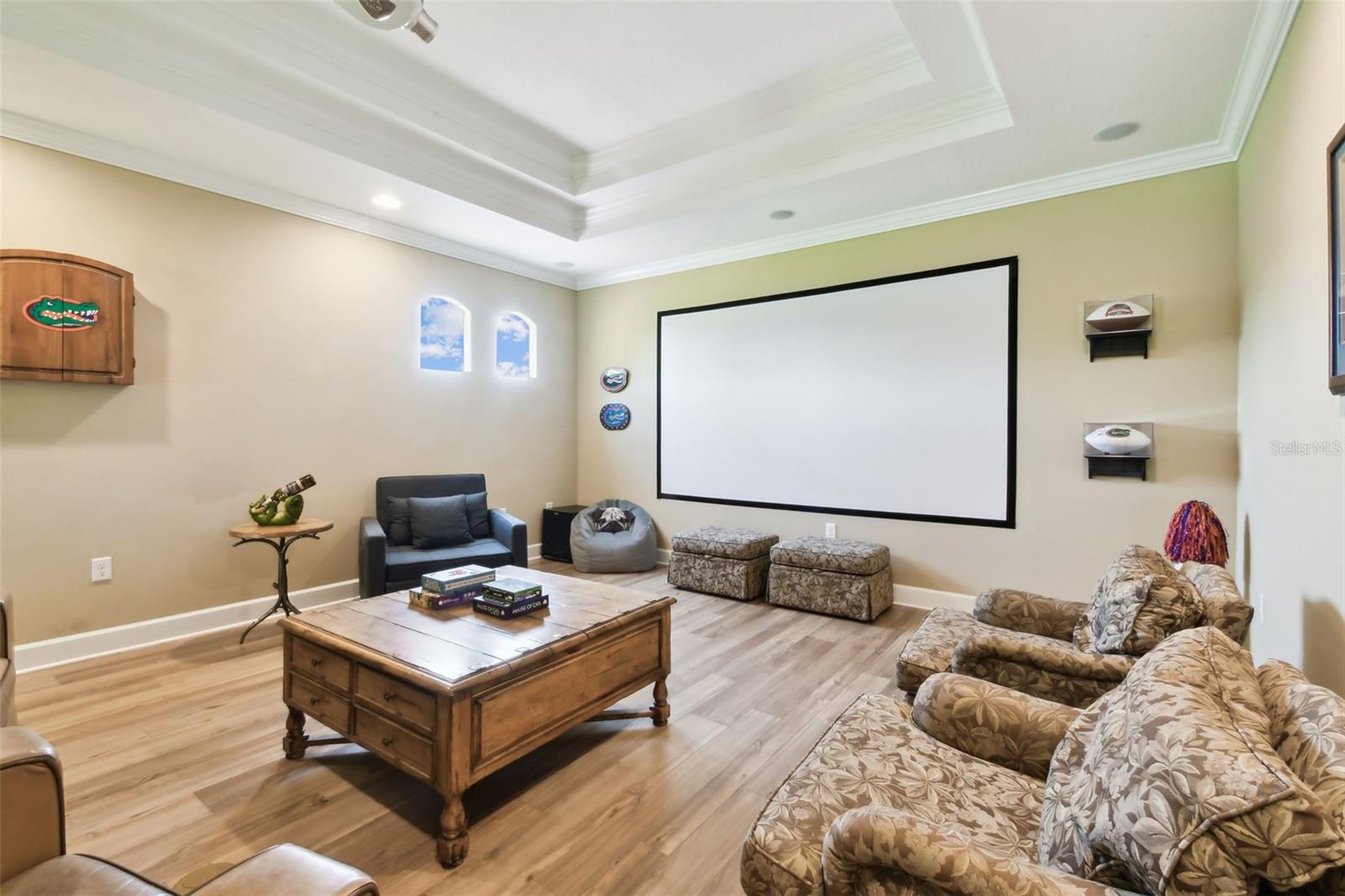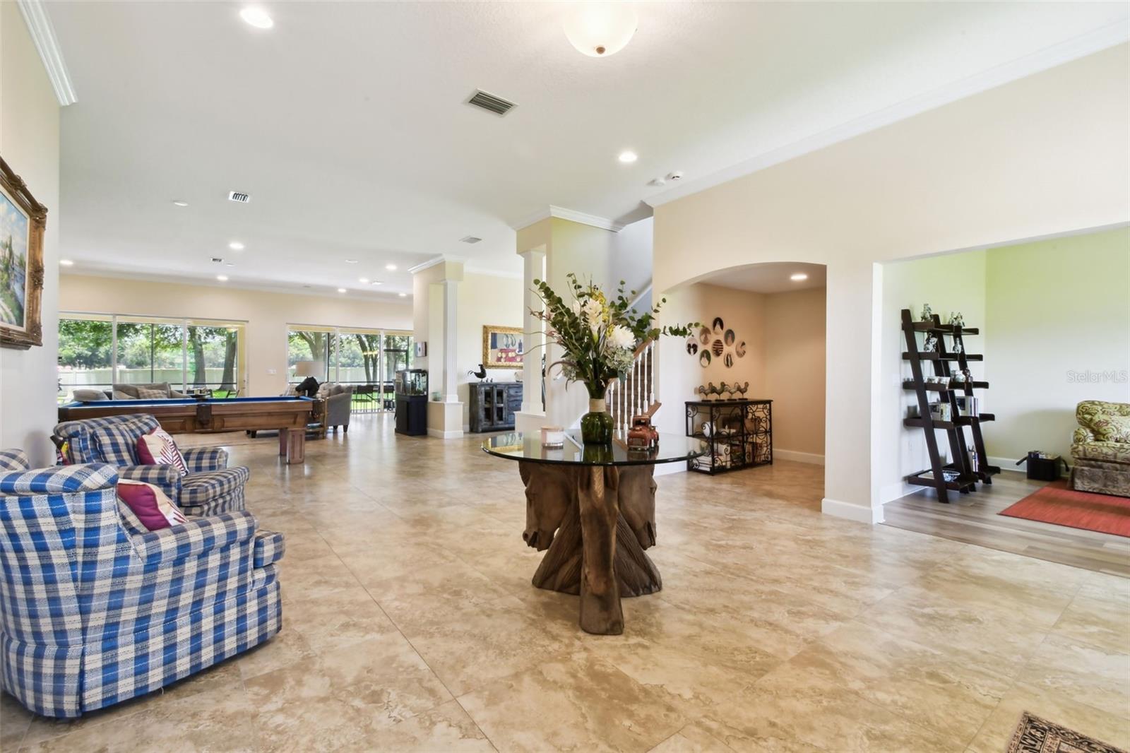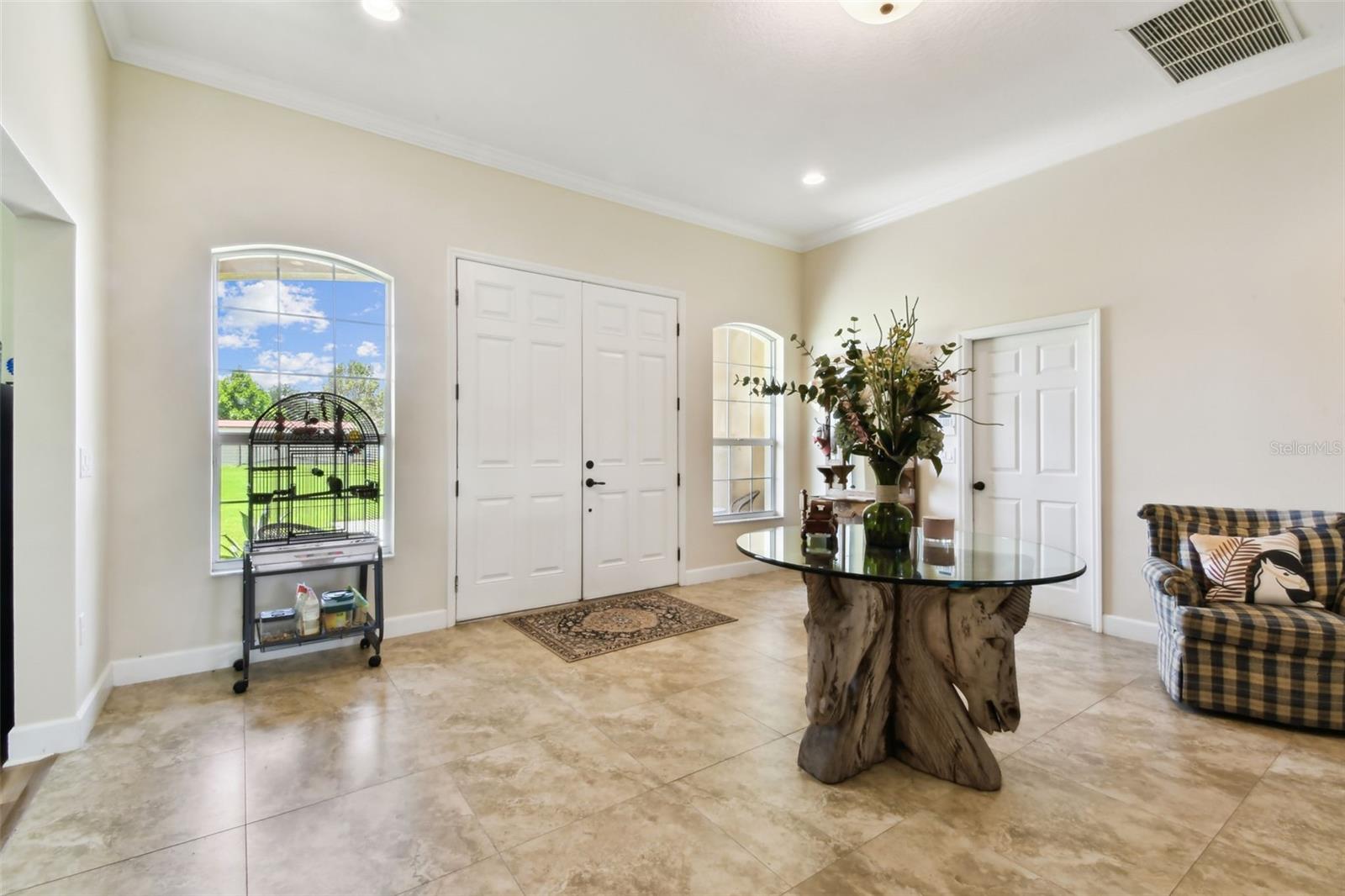 NO HOA, NO CDD - Nestled on a lush 1.6-acre parcel, this remarkable residence offers the ideal blend of sophistication, comfort, and functional design. With over 4,400 square feet of living space, this four-bedroom, three-bathroom, and two half-bath property is crafted for both everyday living and exceptional entertaining. Upon arrival, guests are welcomed by double front doors that lead into a grand foyer, defined by soaring ceilings and elegant porcelain tile floors. The formal living room provides a refined atmosphere for hosting, while a thoughtfully placed half bath ensures convenience for visitors. The expansive great room is the centerpiece of the home, filled with natural light from sliding doors that open to panoramic views of the fully fenced backyard. There is generous space for gatherings, recreation, and seamless flow to the kitchen, an entertainer’s dream. The kitchen is a showcase of style and practicality, featuring granite countertops, a designer tile backsplash, stainless steel appliances, gas range with pot filler, beverage refrigerator, and rich dark cherry cabinetry. Adjacent to the kitchen, a separate dining room offers the perfect setting for memorable dinners and special occasions. Downstairs, the mother-in-law suite is a standout feature, complete with private access, spacious bedroom, full bath, living area, and plumbing and wiring for a future kitchen and laundry. This suite is ideal for guests, multi-generational living, or as a private apartment. Upstairs, the owner’s suite provides a luxurious retreat, including a spa-inspired bathroom with dual vanities, garden tub, and a grand double-entry walk-in shower. The oversized closet offers abundant space for wardrobe storage. The secondary bedrooms are generously proportioned and strategically situated, each opening to a central media room equipped with a projector, perfect for movie nights, sports events, or relaxed family time. Every space is thoughtfully designed to provide both privacy and connection. Outdoor living is fully realized with a screened lanai and open patio, perfect for morning coffee or evening gatherings. The expansive yard backs to tranquil farmland and features an avocado tree, with ample space to add a pool, store recreational equipment, or allow pets to roam. Additional amenities include a three-car side-load garage and a spacious driveway, providing plenty of parking and storage. Located minutes from I-4, this estate offers easy access to downtown Tampa, Orlando, and local shops. This exceptional estate is more than a home . It is a lifestyle destination. Whether entertaining, hosting family, or enjoying the serenity of the grounds, every detail is designed for comfort, enjoyment, and lasting memories