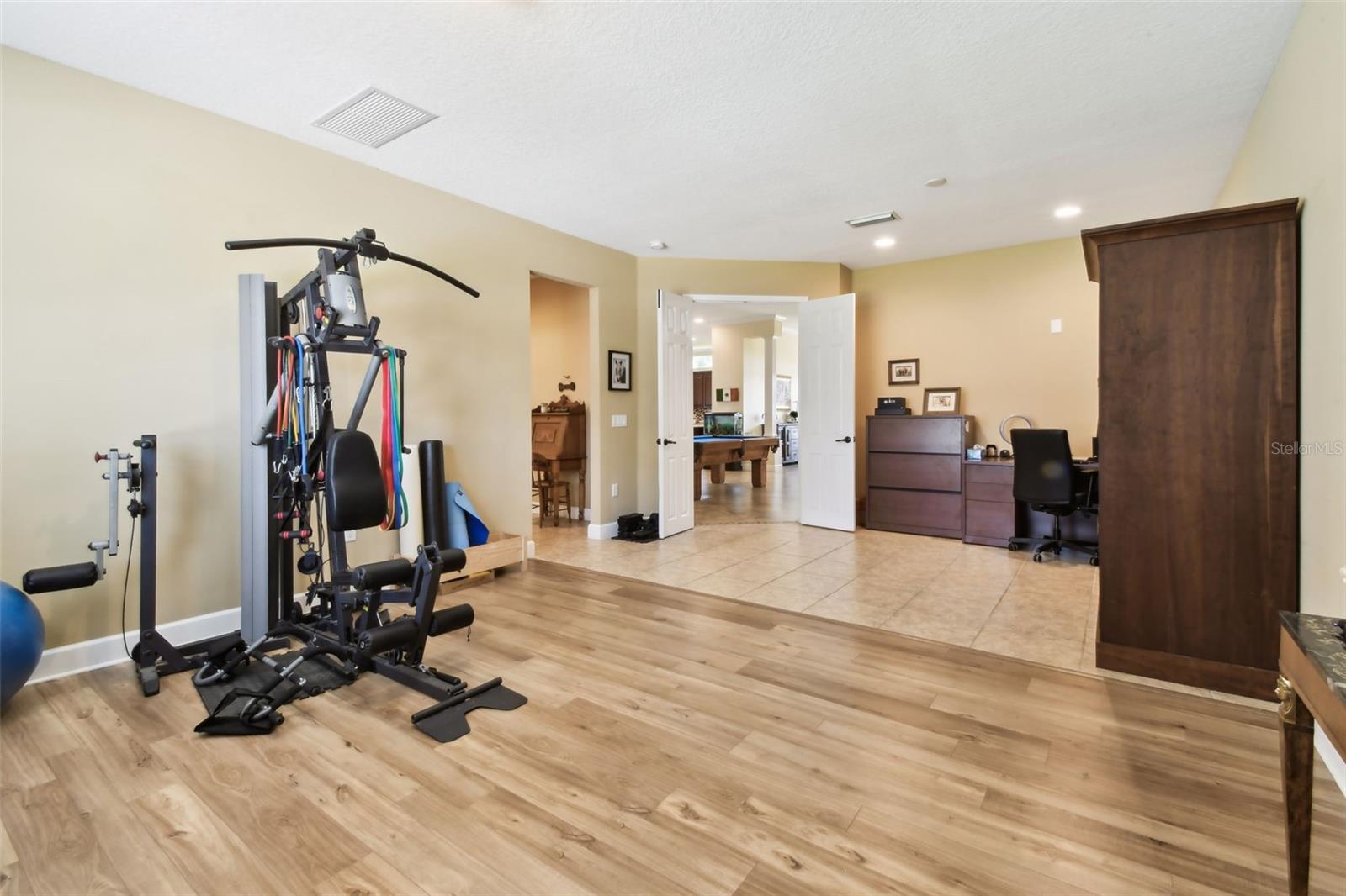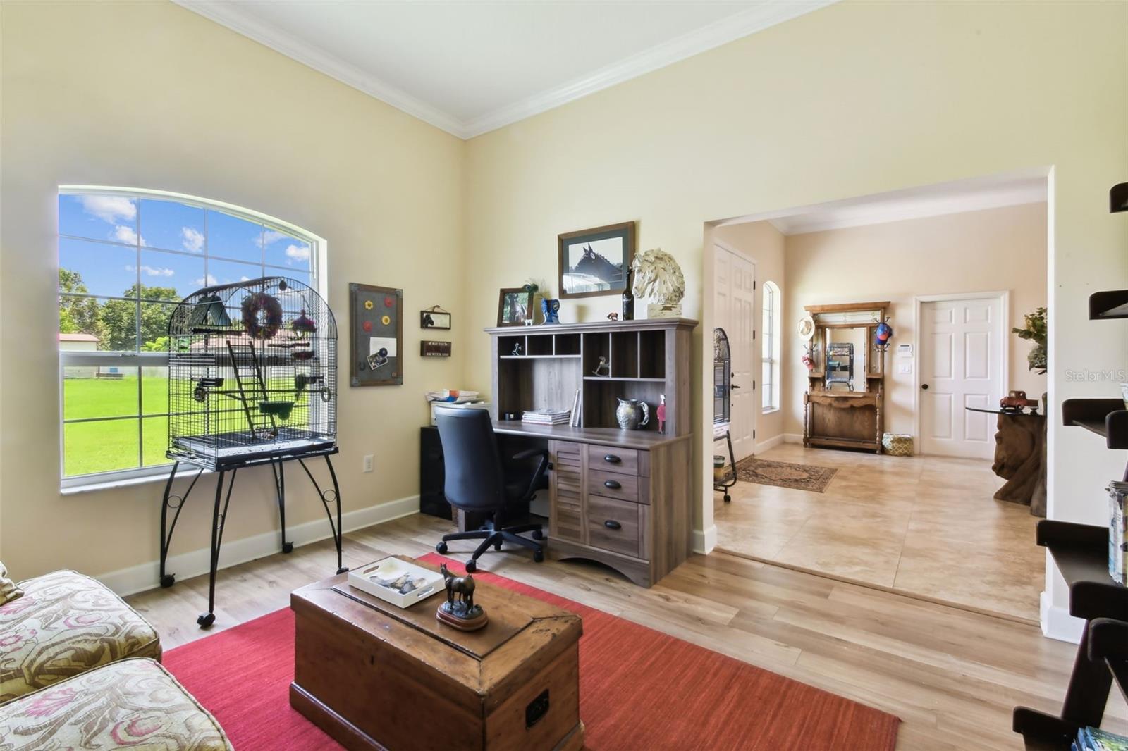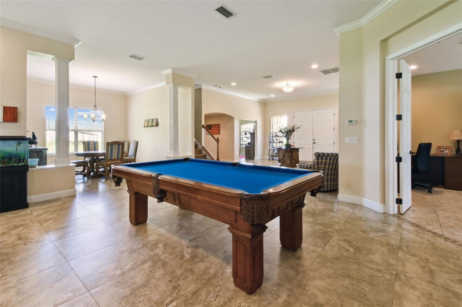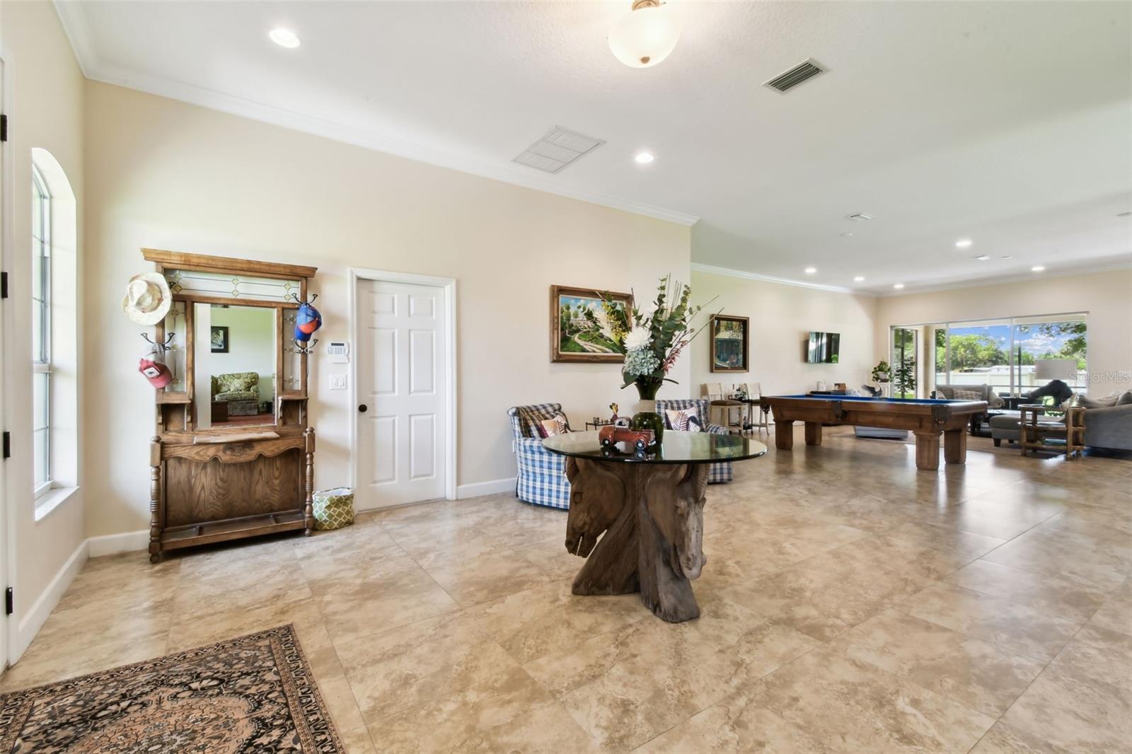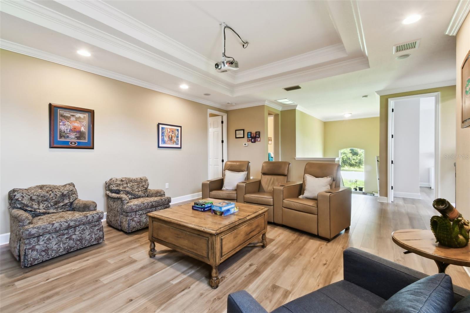 NO HOA, NO CDD - Nestled on a lush 1.6-acre parcel, this remarkable residence offers the ideal blend of sophistication, comfort, and functional design. With over 4,400 square feet of living space, this four-bedroom, three-bathroom, and two half-bath property is crafted for both everyday living and exceptional entertaining. Upon arrival, guests are welcomed by double front doors that lead into a grand foyer, defined by soaring ceilings and elegant porcelain tile floors. The formal living room provides a refined atmosphere for hosting, while a thoughtfully placed half bath ensures convenience for visitors. The expansive great room is the centerpiece of the home, filled with natural light from sliding doors that open to panoramic views of the fully fenced backyard. There is generous space for gatherings, recreation, and seamless flow to the kitchen, an entertainer’s dream. The kitchen is a showcase of style and practicality, featuring granite countertops, a designer tile backsplash, stainless steel appliances, gas range with pot filler, beverage refrigerator, and rich dark cherry cabinetry. Adjacent to the kitchen, a separate dining room offers the perfect setting for memorable dinners and special occasions. Downstairs, the mother-in-law suite is a standout feature, complete with private access, spacious bedroom, full bath, living area, and plumbing and wiring for a future kitchen and laundry. This suite is ideal for guests, multi-generational living, or as a private apartment. Upstairs, the owner’s suite provides a luxurious retreat, including a spa-inspired bathroom with dual vanities, garden tub, and a grand double-entry walk-in shower. The oversized closet offers abundant space for wardrobe storage. The secondary bedrooms are generously proportioned and strategically situated, each opening to a central media room equipped with a projector, perfect for movie nights, sports events, or relaxed family time. Every space is thoughtfully designed to provide both privacy and connection. Outdoor living is fully realized with a screened lanai and open patio, perfect for morning coffee or evening gatherings. The expansive yard backs to tranquil farmland and features an avocado tree, with ample space to add a pool, store recreational equipment, or allow pets to roam. Additional amenities include a three-car side-load garage and a spacious driveway, providing plenty of parking and storage. Located minutes from I-4, this estate offers easy access to downtown Tampa, Orlando, and local shops. This exceptional estate is more than a home . It is a lifestyle destination. Whether entertaining, hosting family, or enjoying the serenity of the grounds, every detail is designed for comfort, enjoyment, and lasting memories