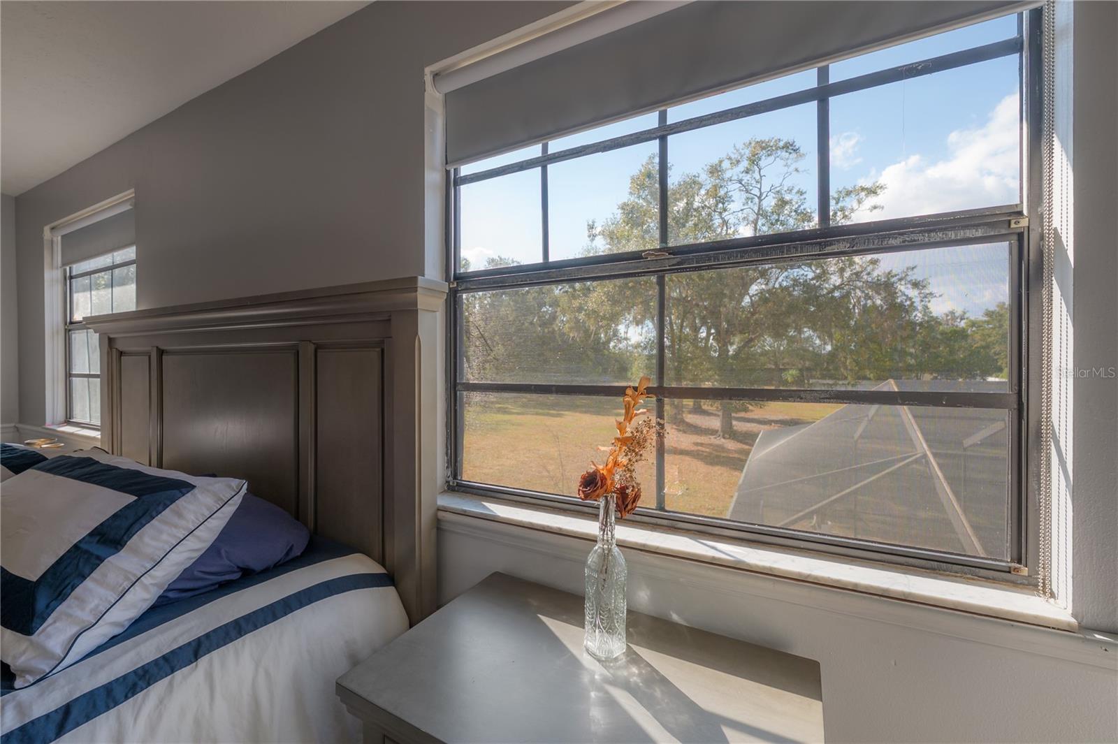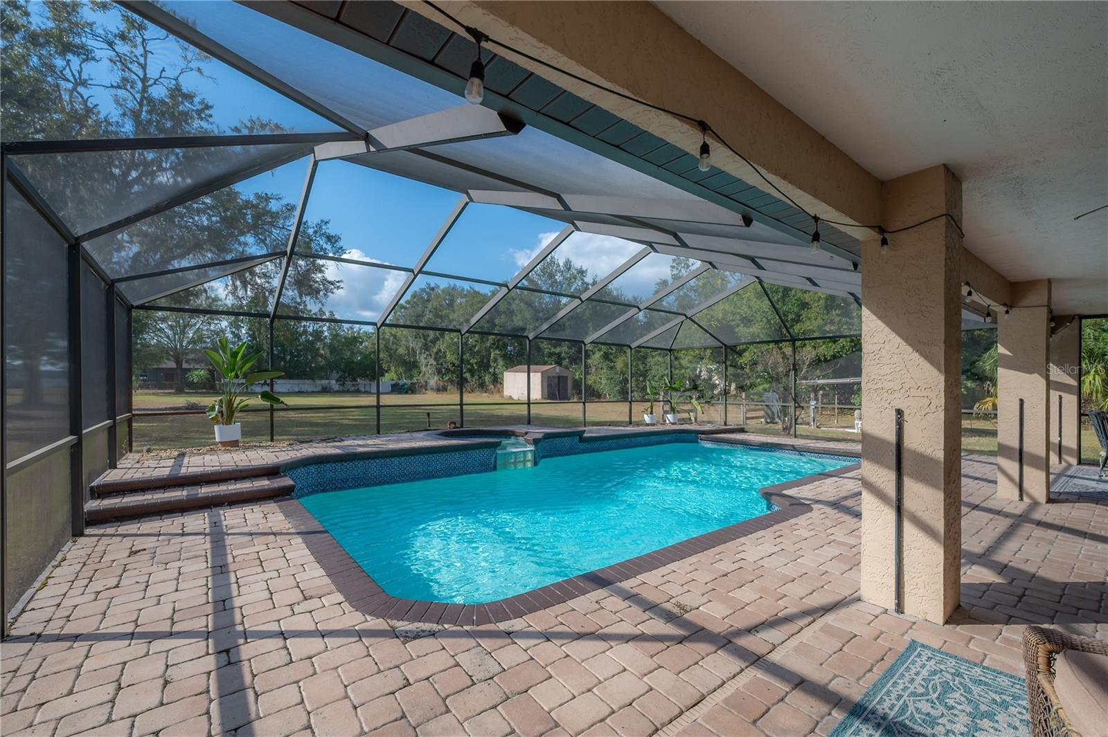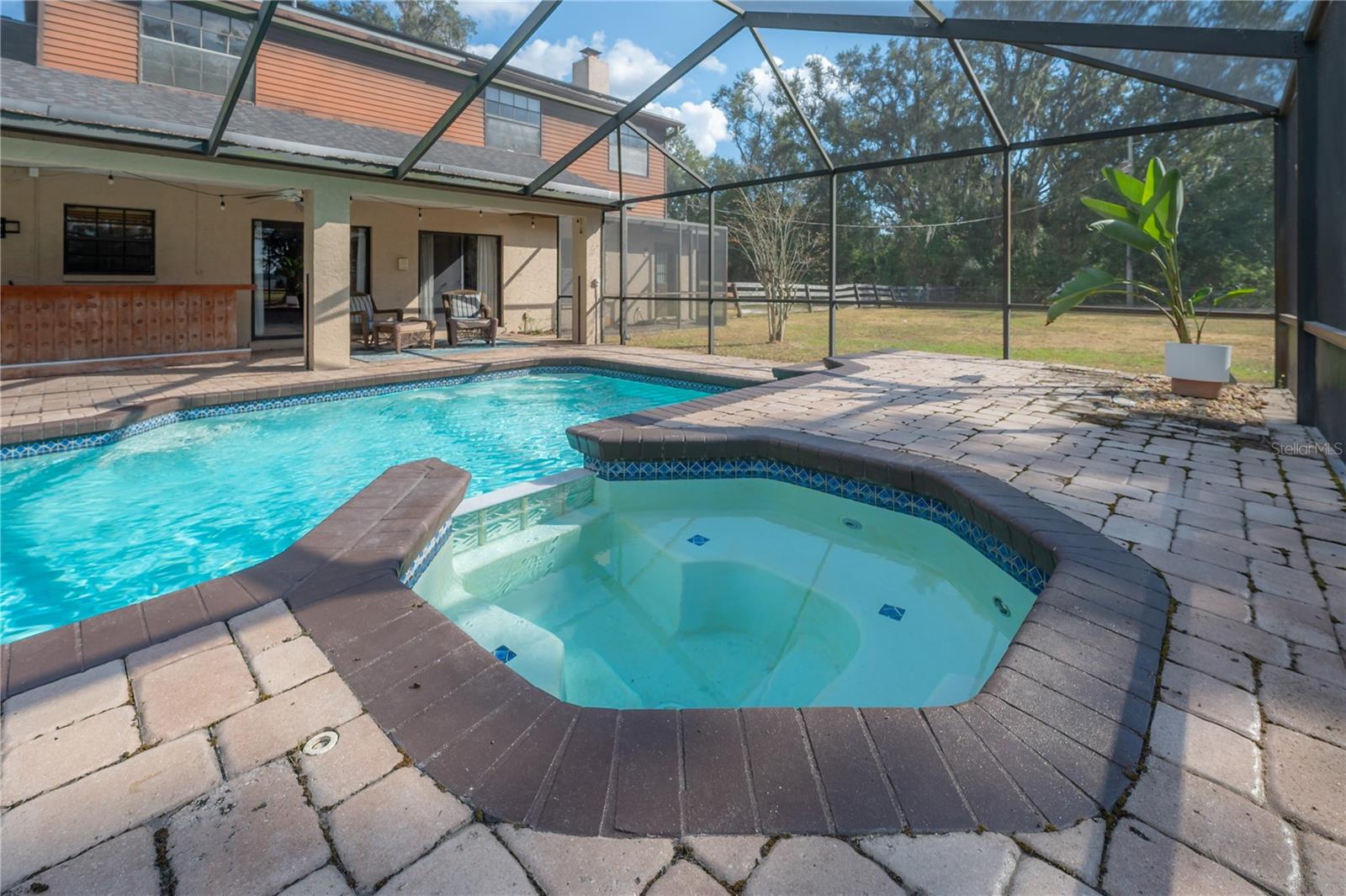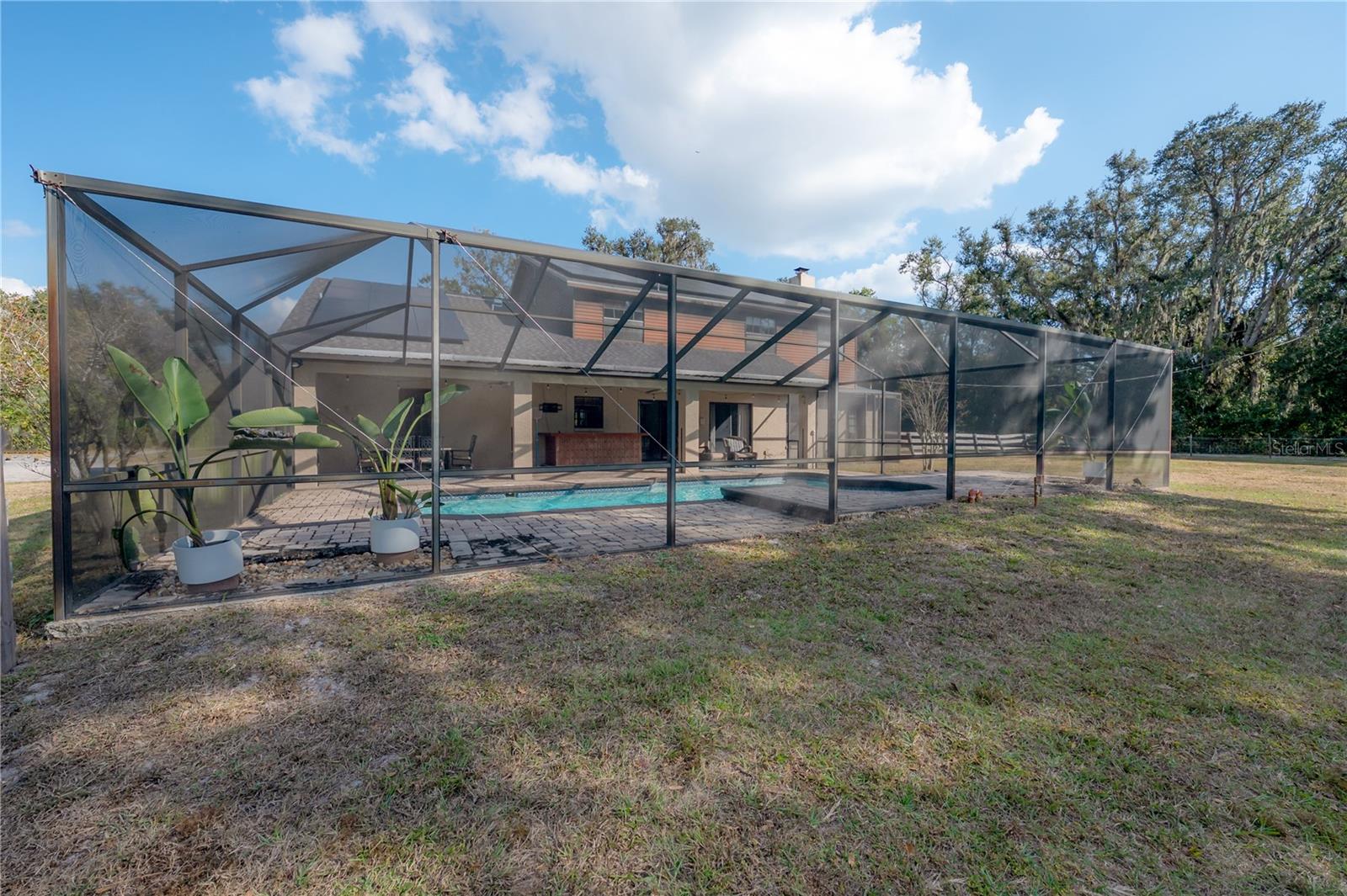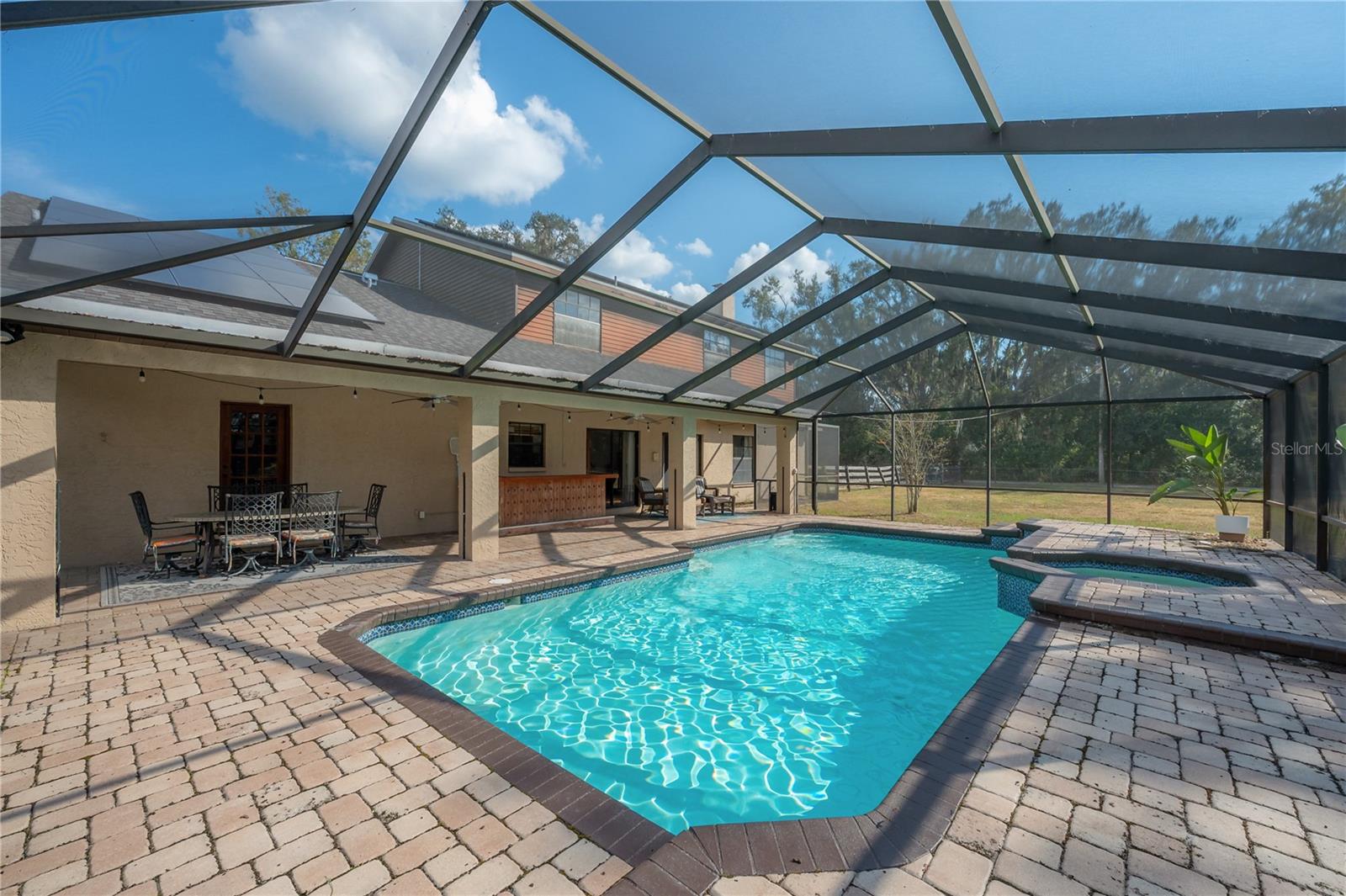 After the workday winds down, picture your short 20-minute drive home—leaving the noise of the city behind for the quiet comfort of “Our Country Home”. Tucked at the end of a private gated road & surrounded by more than 3 acres of peaceful land, this is where evenings are spent around the pool, cotton candy sunsets are a daily showpiece, & life slows down in all the right ways. Inside, the home feels cozy yet spacious, bright & warm, traditional yet modern. The large kitchen’s centerpiece is the brick wall with built-in stovetop & wall ovens. The kitchen features newly refaced shaker style cabinets, reverse osmosis filtration, large brick kitchen island,& newer stainless steel appliances. Engineered hardwood floors flow throughout the entire home, & all bathrooms were beautifully renovated in 2023. The downstairs layout is designed for both comfort & connection. Step through the inviting foyer into a home that feels warm & welcoming from the start. A formal dining room sets the stage for gatherings & holiday meals, while the spacious yet cozy family room offers the perfect spot to unwind or entertain. A versatile bonus space adds flexibility—it can serve as a formal living room, home office, or playroom. The outdoor spaces are just as inviting as the indoor ones, featuring a large wraparound screened front porch perfect for morning coffee or evening chats, & a fully screened pool & patio area with pavers, an outdoor bar, connections for an outdoor TV, & a convenient pool bathroom. While the downstairs area is all about the living & entertaining spaces, the upstairs houses all 4 spacious bedrooms, each with their own dedicated corner & serene views. Tucked away in the quiet back corner of the home, the primary suite is a true retreat overlooking the pool & peaceful property. This spacious 14x18 room feels open & inviting with vaulted ceilings, warm wood tones & accents throughout, & natural light pouring in from every angle. The walk-in closet features custom built-in shelving, offering both function & sophistication. The renovated en suite bath exudes spa-like tranquility, showcasing an oversized shower wrapped in wood-look tile, a sleek glass enclosure, & white large-format hexagon tile flooring that adds a touch of modern elegance. Distinctive green barn doors tie in beautifully with the deep green dual-sink vanity, creating a refined aesthetic. This home has been meticulously maintained with major updates: fully paid-off solar panels keep electric bills as low as $10/month, the roof was replaced in 2021, both HVAC units replaced in 2021, & the interior was recently painted. Outdoor improvements include a pool heater, screened pool enclosure & front porch, fully fenced property, & added bamboo for privacy from the front neighbors. The outdoor spaces are what truly make Our Country Home charming & special. The barn has been repainted to a picturesque farm red, upgraded with electricity, & the back corner of the property houses a dog kennel. The property also features a deep, fully stocked pond with catfish, bluegill, tilapia, bass, turtles, & even the occasional otter—complete with a culvert for easy access to the back pasture. With a well, water softener, tannin filtration system, & reverse osmosis in the kitchen, the home is self-sustaining & efficient. From the country-style charm to the solar-powered upgrades, Our Country Home offers a lifestyle that feels worlds away—yet keeps you within minutes of all that Tampa has to offer.