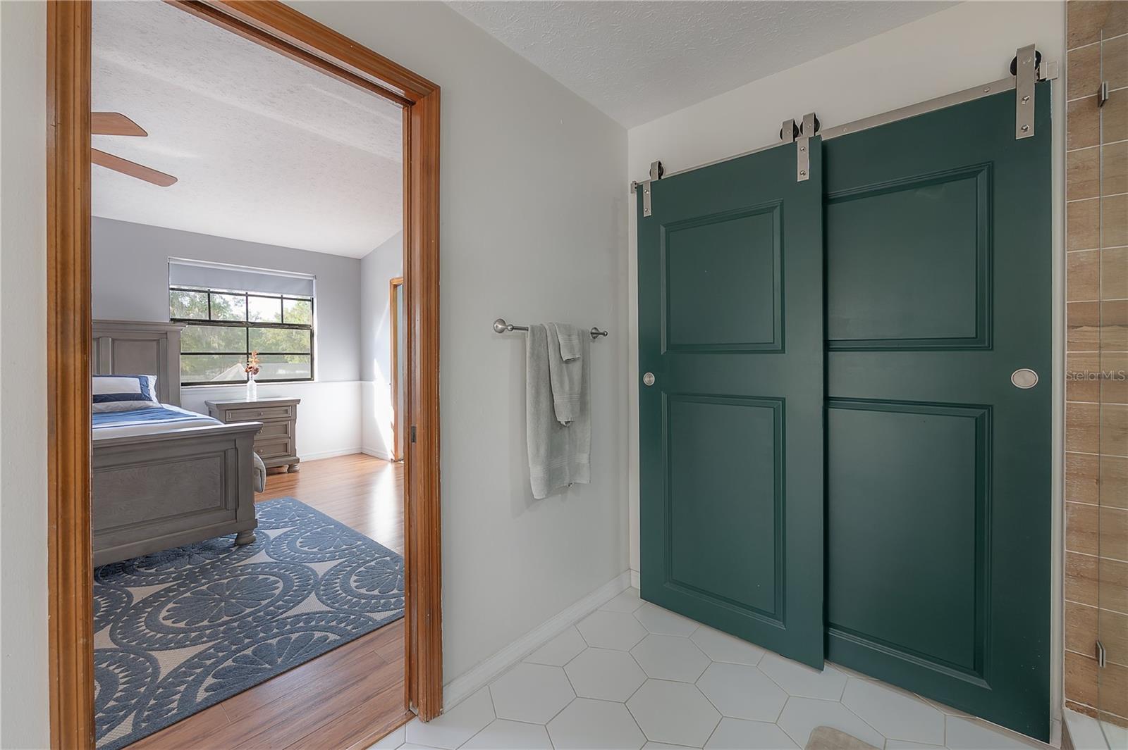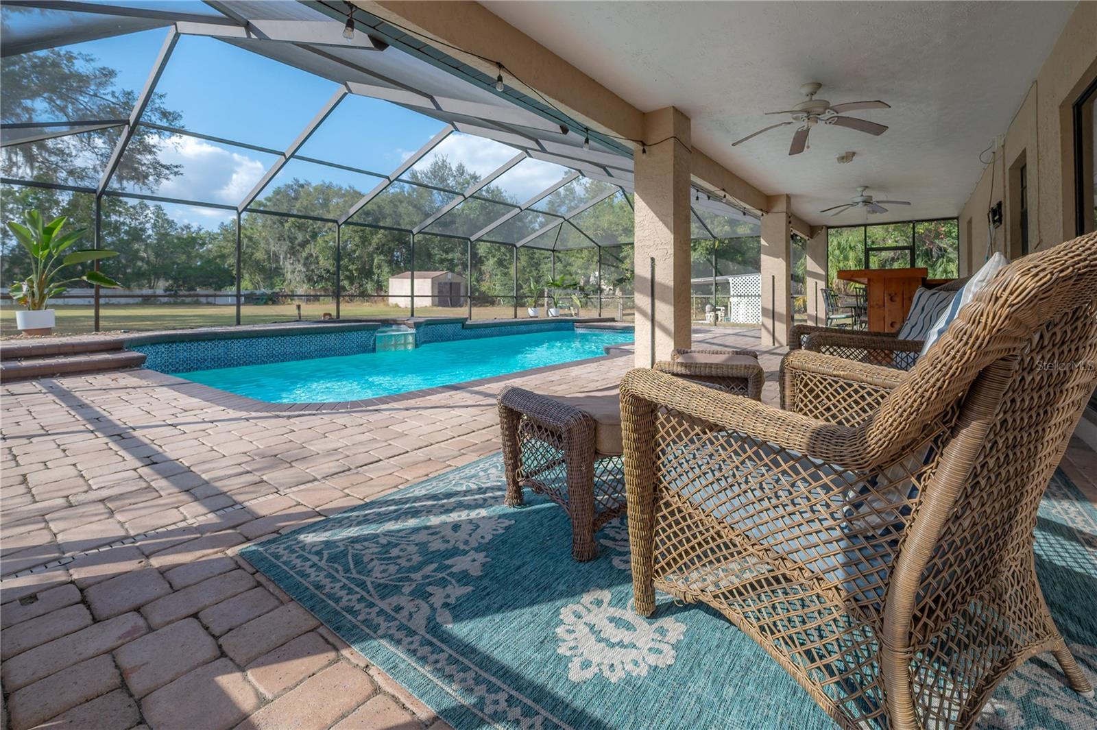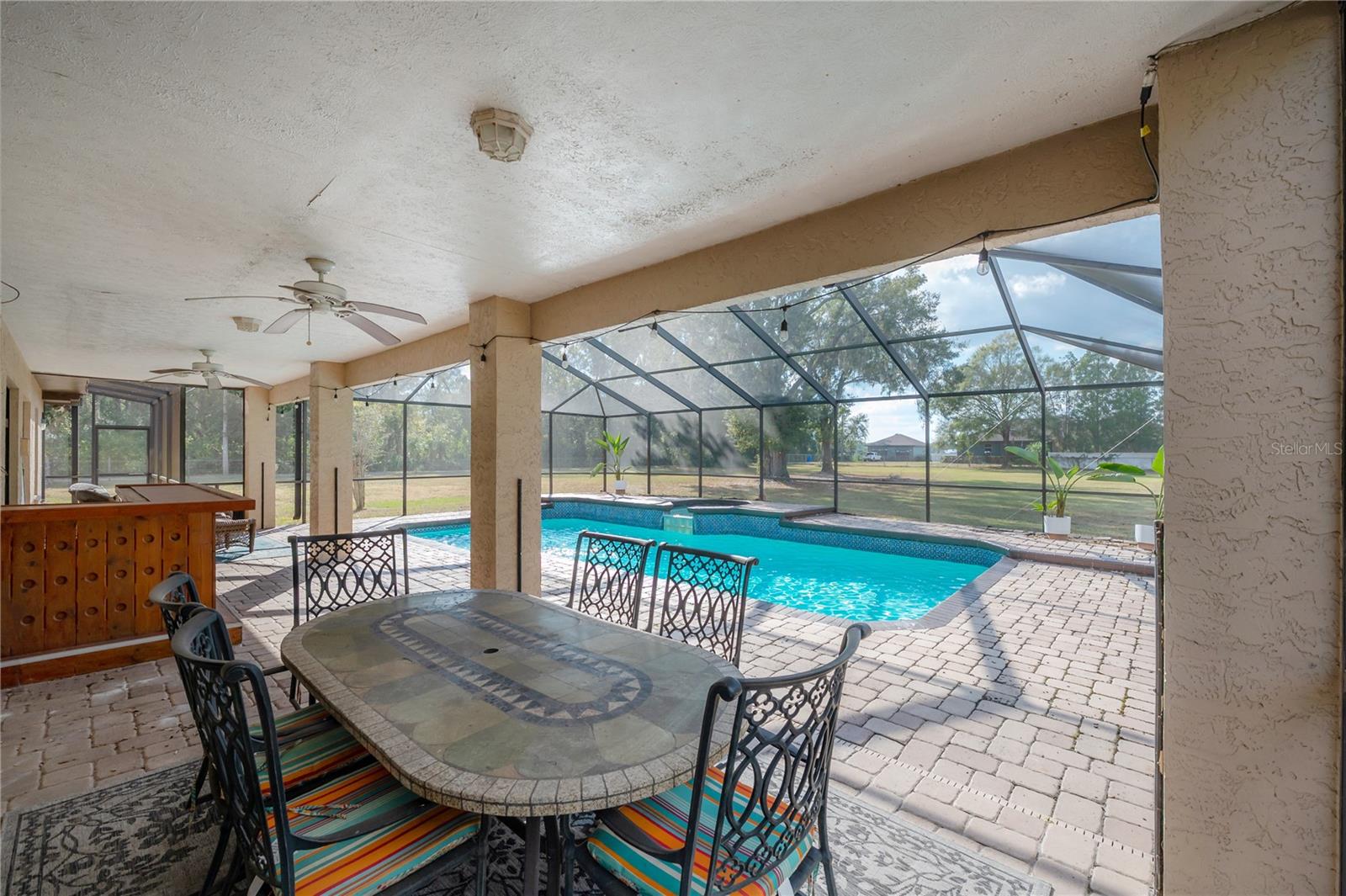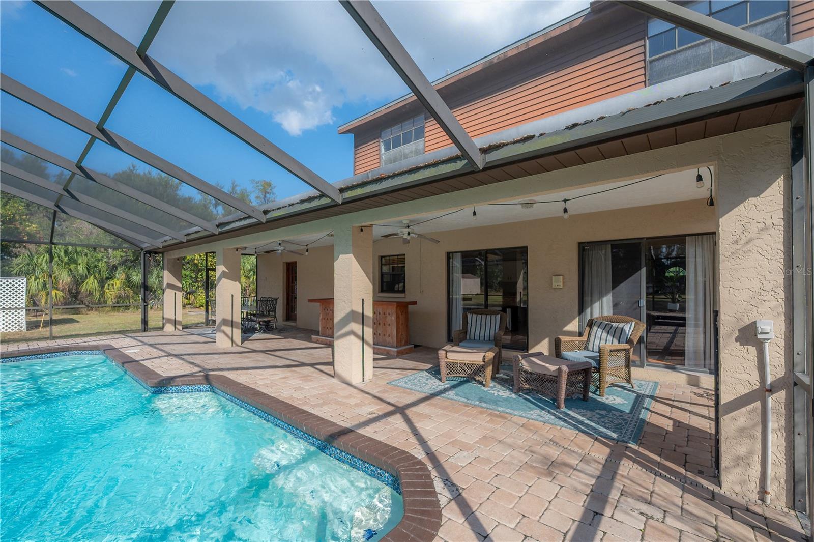 After the workday winds down, picture your short 20-minute drive home—leaving the noise of the city behind for the quiet comfort of “Our Country Home”. Tucked at the end of a private gated road & surrounded by more than 3 acres of peaceful land, this is where evenings are spent around the pool, cotton candy sunsets are a daily showpiece, & life slows down in all the right ways. Inside, the home feels cozy yet spacious, bright & warm, traditional yet modern. The large kitchen’s centerpiece is the brick wall with built-in stovetop & wall ovens. The kitchen features newly refaced shaker style cabinets, reverse osmosis filtration, large brick kitchen island,& newer stainless steel appliances. Engineered hardwood floors flow throughout the entire home, & all bathrooms were beautifully renovated in 2023. The downstairs layout is designed for both comfort & connection. Step through the inviting foyer into a home that feels warm & welcoming from the start. A formal dining room sets the stage for gatherings & holiday meals, while the spacious yet cozy family room offers the perfect spot to unwind or entertain. A versatile bonus space adds flexibility—it can serve as a formal living room, home office, or playroom. The outdoor spaces are just as inviting as the indoor ones, featuring a large wraparound screened front porch perfect for morning coffee or evening chats, & a fully screened pool & patio area with pavers, an outdoor bar, connections for an outdoor TV, & a convenient pool bathroom. While the downstairs area is all about the living & entertaining spaces, the upstairs houses all 4 spacious bedrooms, each with their own dedicated corner & serene views. Tucked away in the quiet back corner of the home, the primary suite is a true retreat overlooking the pool & peaceful property. This spacious 14x18 room feels open & inviting with vaulted ceilings, warm wood tones & accents throughout, & natural light pouring in from every angle. The walk-in closet features custom built-in shelving, offering both function & sophistication. The renovated en suite bath exudes spa-like tranquility, showcasing an oversized shower wrapped in wood-look tile, a sleek glass enclosure, & white large-format hexagon tile flooring that adds a touch of modern elegance. Distinctive green barn doors tie in beautifully with the deep green dual-sink vanity, creating a refined aesthetic. This home has been meticulously maintained with major updates: fully paid-off solar panels keep electric bills as low as $10/month, the roof was replaced in 2021, both HVAC units replaced in 2021, & the interior was recently painted. Outdoor improvements include a pool heater, screened pool enclosure & front porch, fully fenced property, & added bamboo for privacy from the front neighbors. The outdoor spaces are what truly make Our Country Home charming & special. The barn has been repainted to a picturesque farm red, upgraded with electricity, & the back corner of the property houses a dog kennel. The property also features a deep, fully stocked pond with catfish, bluegill, tilapia, bass, turtles, & even the occasional otter—complete with a culvert for easy access to the back pasture. With a well, water softener, tannin filtration system, & reverse osmosis in the kitchen, the home is self-sustaining & efficient. From the country-style charm to the solar-powered upgrades, Our Country Home offers a lifestyle that feels worlds away—yet keeps you within minutes of all that Tampa has to offer.
