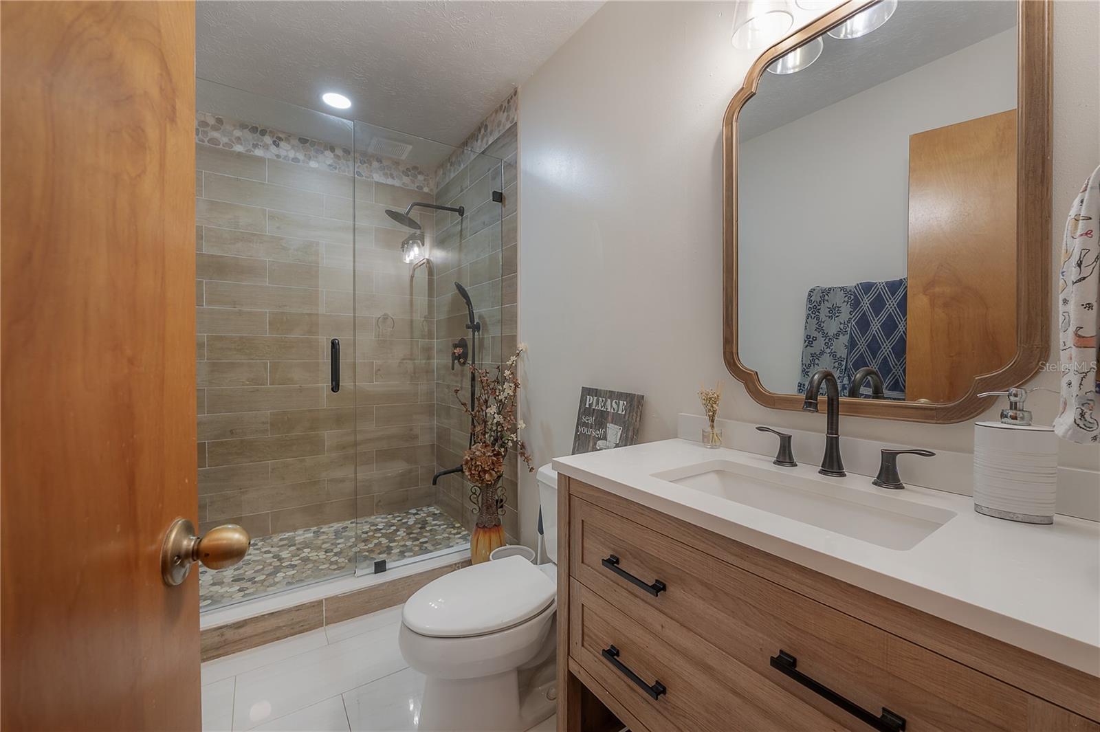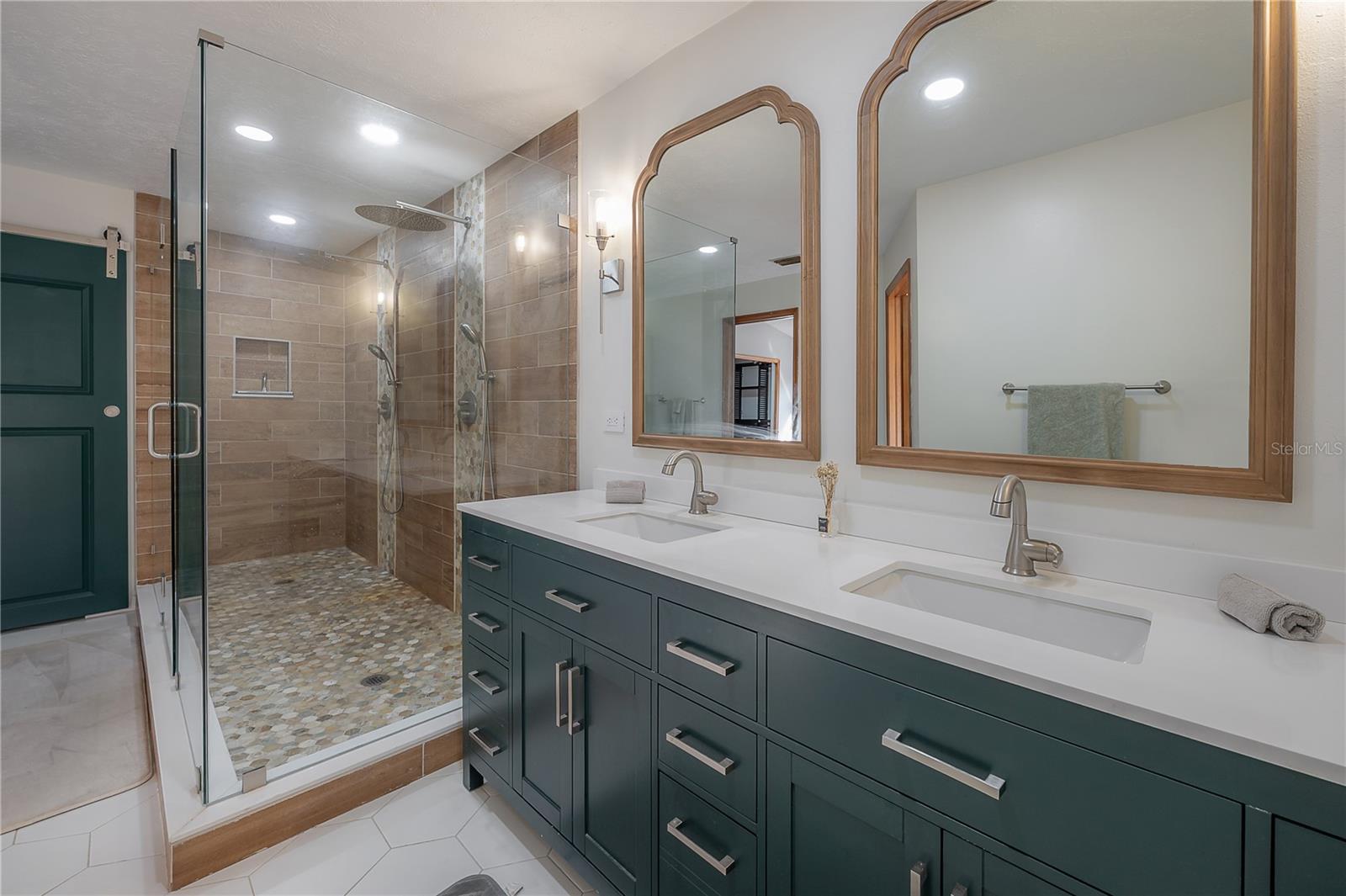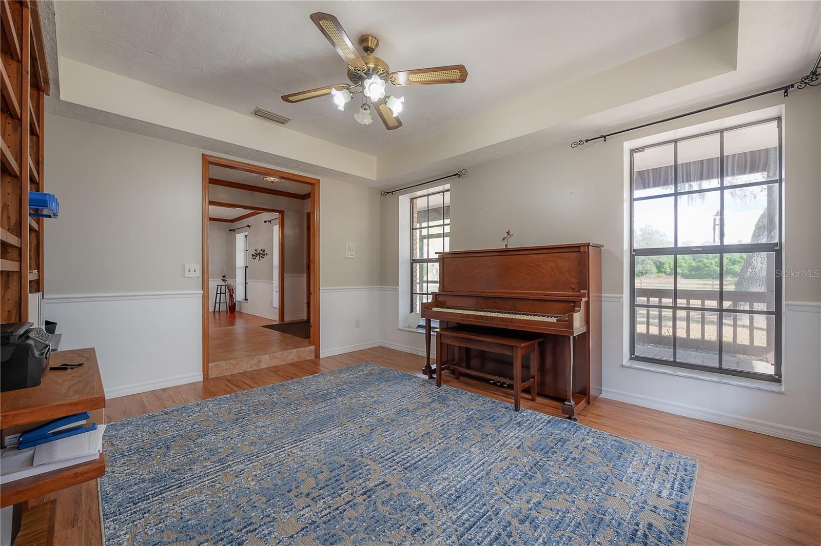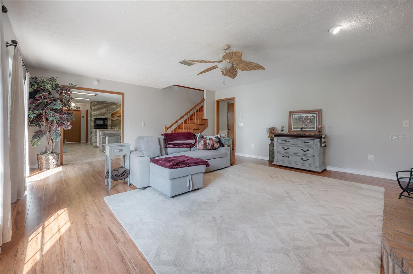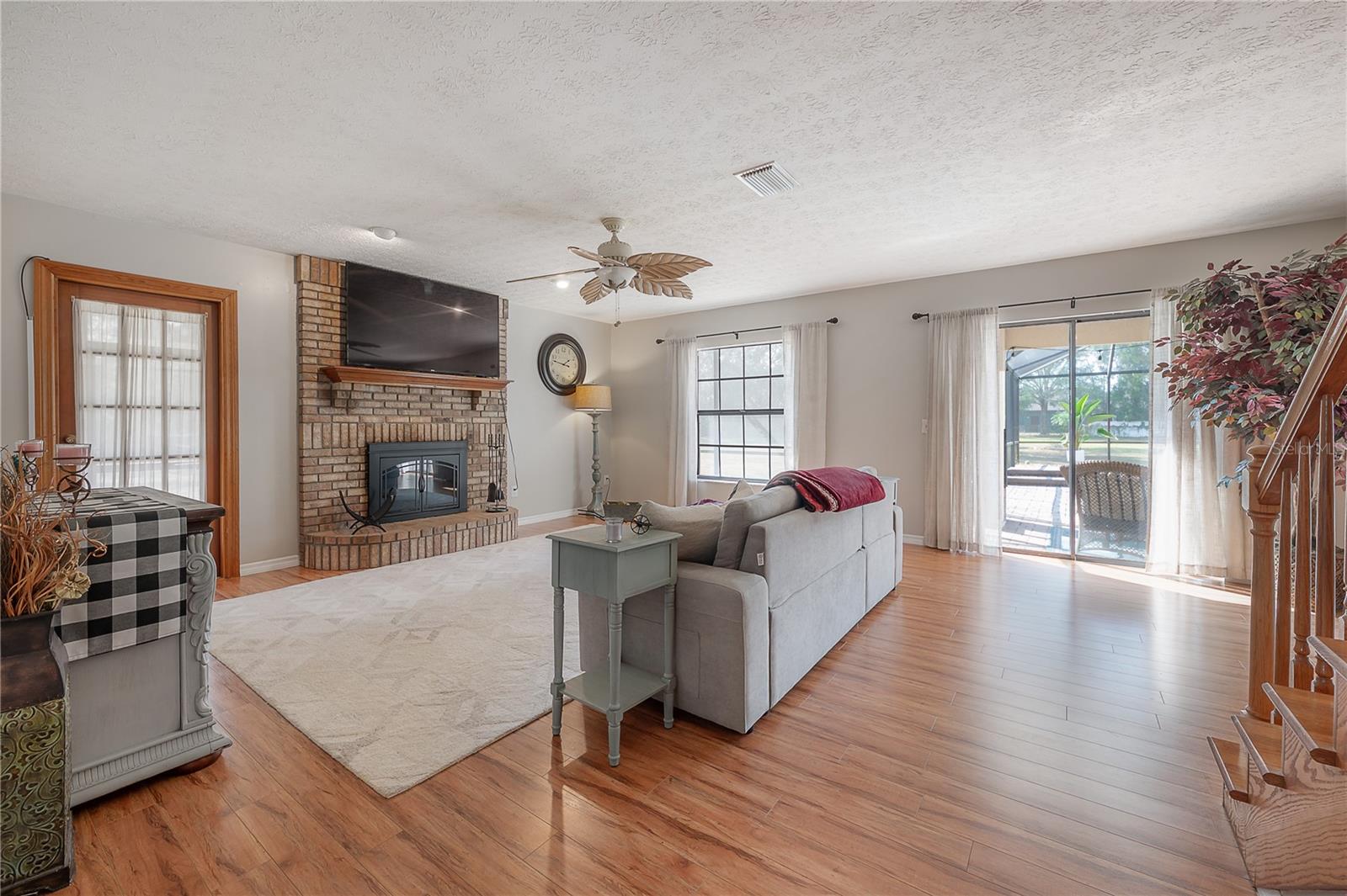 After the workday winds down, picture your short 20-minute drive home—leaving the noise of the city behind for the quiet comfort of “Our Country Home”. Tucked at the end of a private gated road & surrounded by more than 3 acres of peaceful land, this is where evenings are spent around the pool, cotton candy sunsets are a daily showpiece, & life slows down in all the right ways. Inside, the home feels cozy yet spacious, bright & warm, traditional yet modern. The large kitchen’s centerpiece is the brick wall with built-in stovetop & wall ovens. The kitchen features newly refaced shaker style cabinets, reverse osmosis filtration, large brick kitchen island,& newer stainless steel appliances. Engineered hardwood floors flow throughout the entire home, & all bathrooms were beautifully renovated in 2023. The downstairs layout is designed for both comfort & connection. Step through the inviting foyer into a home that feels warm & welcoming from the start. A formal dining room sets the stage for gatherings & holiday meals, while the spacious yet cozy family room offers the perfect spot to unwind or entertain. A versatile bonus space adds flexibility—it can serve as a formal living room, home office, or playroom. The outdoor spaces are just as inviting as the indoor ones, featuring a large wraparound screened front porch perfect for morning coffee or evening chats, & a fully screened pool & patio area with pavers, an outdoor bar, connections for an outdoor TV, & a convenient pool bathroom. While the downstairs area is all about the living & entertaining spaces, the upstairs houses all 4 spacious bedrooms, each with their own dedicated corner & serene views. Tucked away in the quiet back corner of the home, the primary suite is a true retreat overlooking the pool & peaceful property. This spacious 14x18 room feels open & inviting with vaulted ceilings, warm wood tones & accents throughout, & natural light pouring in from every angle. The walk-in closet features custom built-in shelving, offering both function & sophistication. The renovated en suite bath exudes spa-like tranquility, showcasing an oversized shower wrapped in wood-look tile, a sleek glass enclosure, & white large-format hexagon tile flooring that adds a touch of modern elegance. Distinctive green barn doors tie in beautifully with the deep green dual-sink vanity, creating a refined aesthetic. This home has been meticulously maintained with major updates: fully paid-off solar panels keep electric bills as low as $10/month, the roof was replaced in 2021, both HVAC units replaced in 2021, & the interior was recently painted. Outdoor improvements include a pool heater, screened pool enclosure & front porch, fully fenced property, & added bamboo for privacy from the front neighbors. The outdoor spaces are what truly make Our Country Home charming & special. The barn has been repainted to a picturesque farm red, upgraded with electricity, & the back corner of the property houses a dog kennel. The property also features a deep, fully stocked pond with catfish, bluegill, tilapia, bass, turtles, & even the occasional otter—complete with a culvert for easy access to the back pasture. With a well, water softener, tannin filtration system, & reverse osmosis in the kitchen, the home is self-sustaining & efficient. From the country-style charm to the solar-powered upgrades, Our Country Home offers a lifestyle that feels worlds away—yet keeps you within minutes of all that Tampa has to offer.