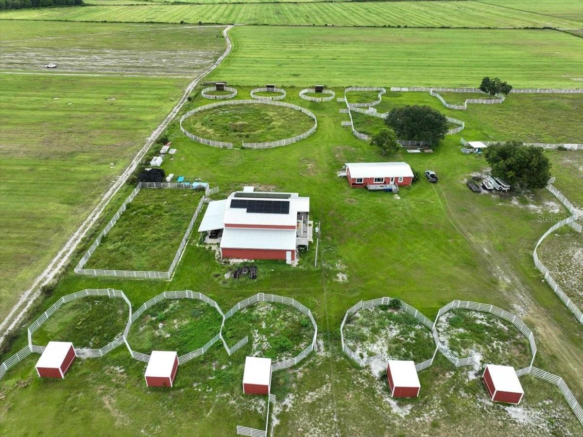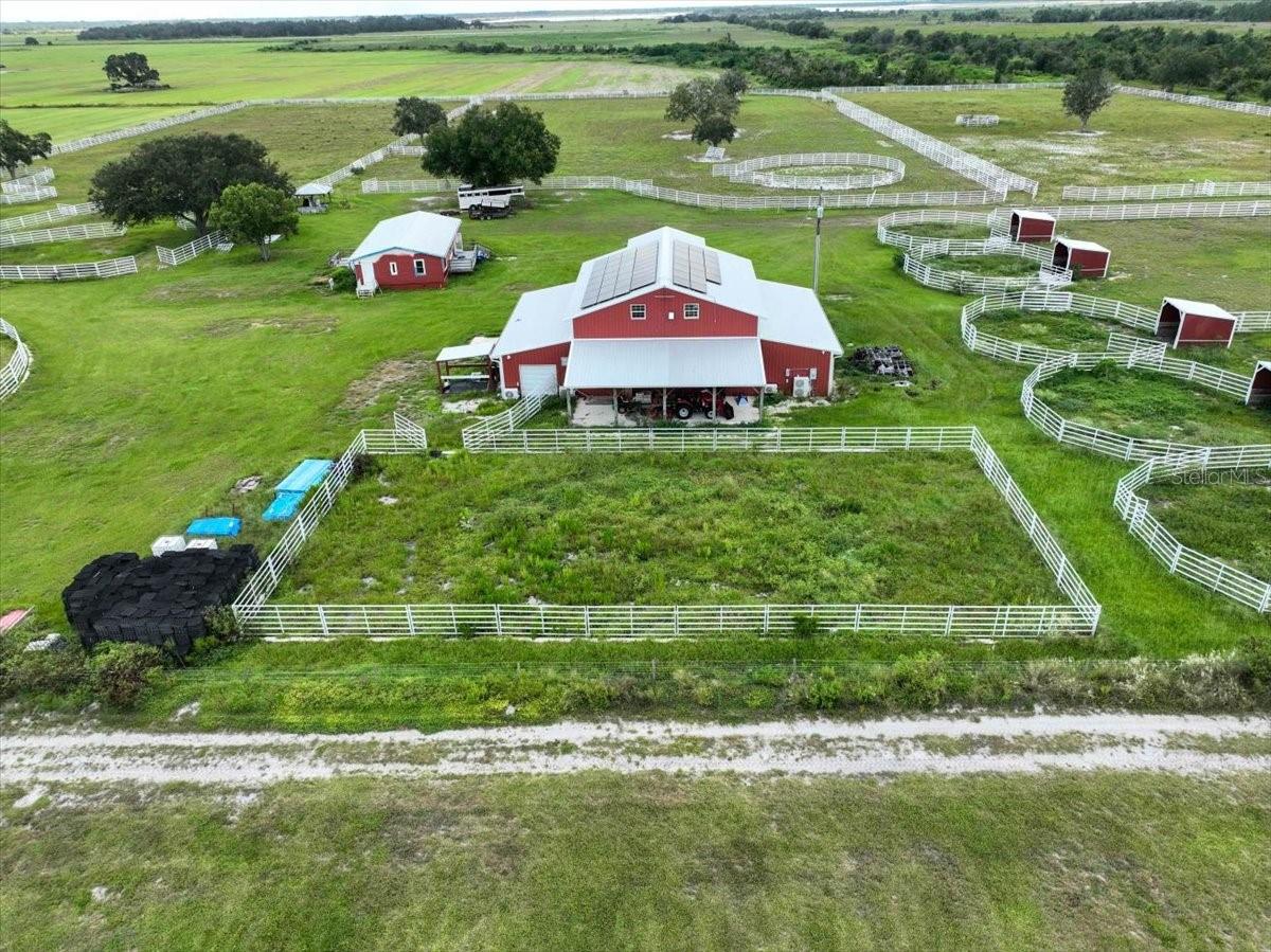 Reduced $500,000 below recent appraised value for quick sale. Rare 17+ Acre Equestrian Estate with Luxury Barn & Remodeled Home Welcome to this extraordinary 17+ acre estate—a rare opportunity for equestrian enthusiasts seeking luxury, space, and versatility. This fully fenced property combines a beautifully remodeled home with a state-of-the-art equine facility, offering endless possibilities as a private retreat, working horse farm, or future development. Luxury Barn & Living Quarters The custom-designed barn spans over 4,500 sq ft with soaring 14-ft ceilings, insulated metal walls, and striking exposed wood beams accented by imported chandeliers. Designed with both functionality and elegance in mind, the barn features: 8+ air-conditioned stalls with rubber paver flooring for your horses' comfort A feeding room, horse wash station, and additional double A/C stalls separate from the main barn Ample tack and storage areas A Tesla charging station and solar power system for efficient and eco-conscious operation Upstairs, a spacious 1,000 sq ft two-bedroom, one-bath suite is nearing completion—just add a kitchen to make it fully self-contained. The suite is equipped with a three-unit split A/C system, Starlink satellite internet, and premium finishes. Remodeled Residence The main home has been thoughtfully updated with: A newer metal roof Impact-resistant windows A brand-new kitchen, renovated bathrooms, and new flooring throughout Modern, comfortable, and move-in ready, the home blends perfectly with the estate’s high-end equestrian amenities. Property Highlights Entire 17+ acres fully fenced, with approx. 1,000 16-ft steel fencing & gates Solar stadium lighting for night riding and training Reinforced well house, deep water well, and a reverse osmosis water filtration system Seven shaded shelters, multiple round pens, and separate turnout pastures With room to build a dream home, add family lots, or subdivide into three separate parcels, this property offers unmatched flexibility and investment potential. Call today to schedule your private showing. This one-of-a-kind luxury horse estate is a rare find that must be seen to be believed.
