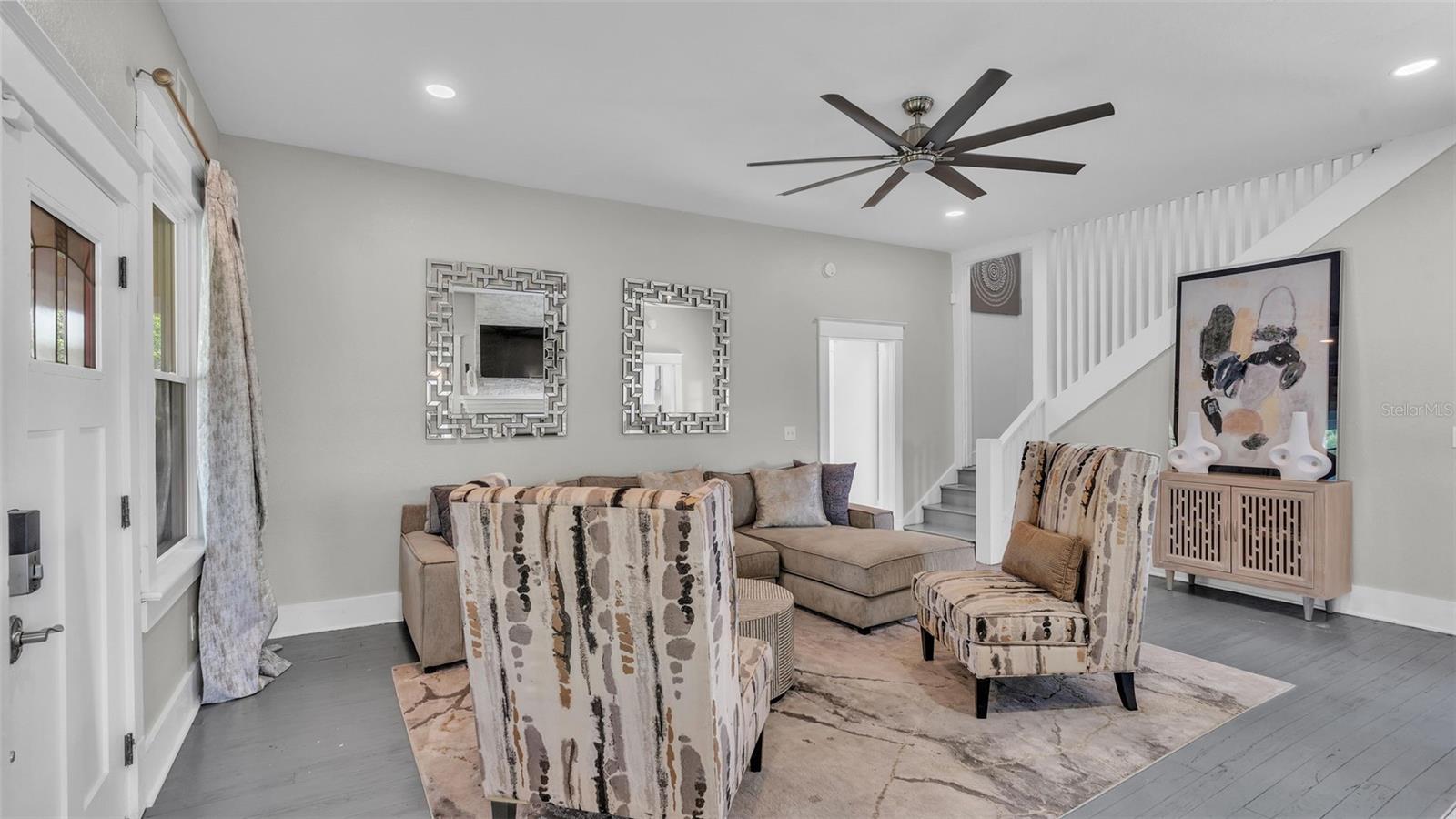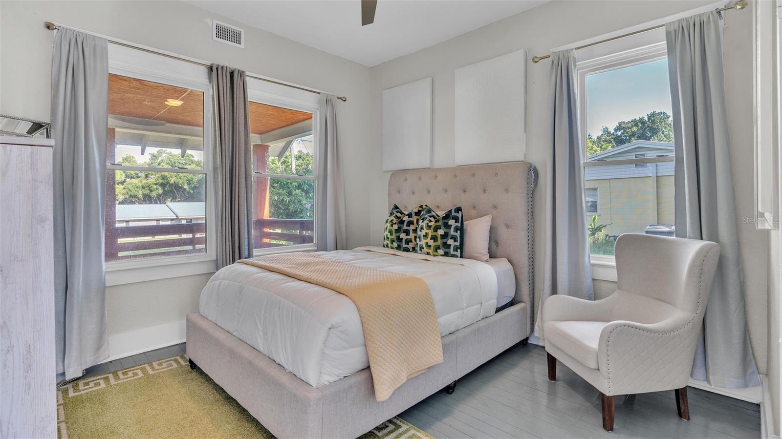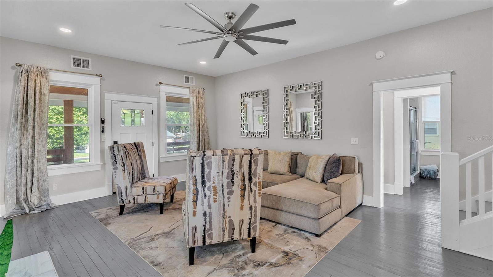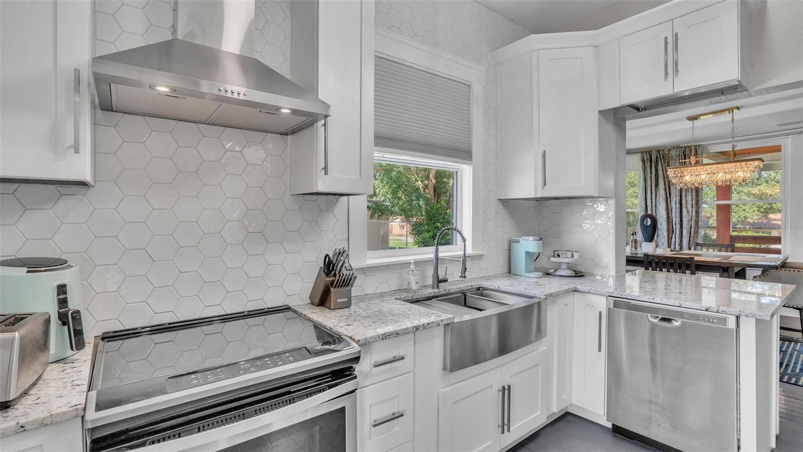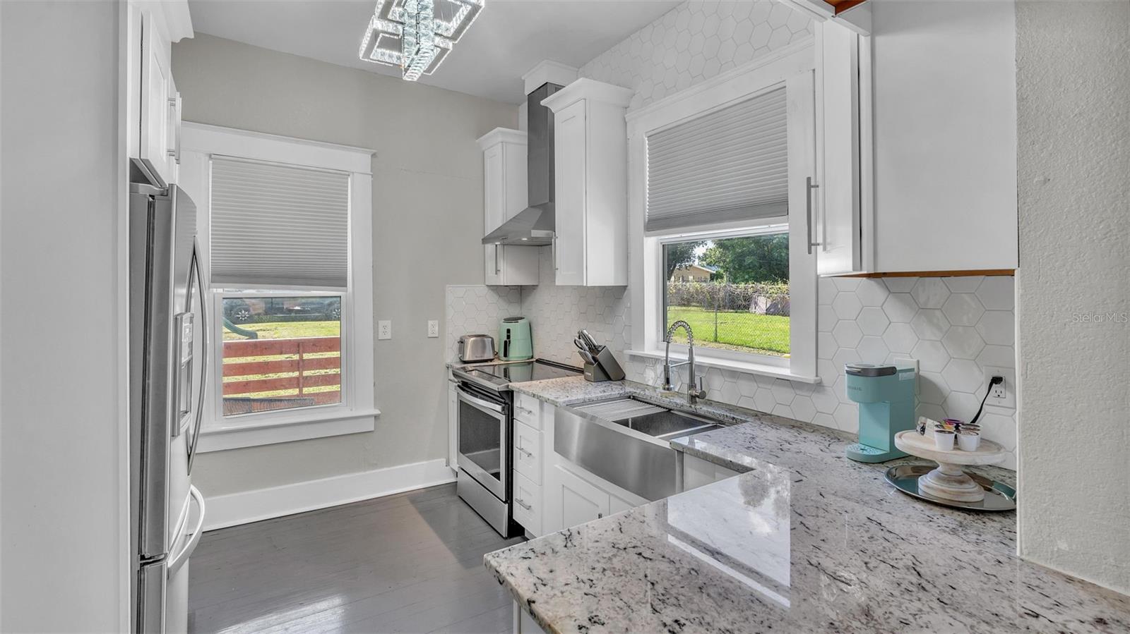 Welcome to this classic 19th century home located in the heart of Dundee, Florida. Originally built in 1925 and lovingly updated through the century, the structure’s recent renovation ensures access to all of your modern amenities. This 0.32 acre property perfectly balances the unique tastes of the past with the needs of the contemporary throughout its 5 bedroom and 2 bathroom layout. You’ll first be greeted by a sprawling covered porch which spans the front of the home, offering plenty of space to enjoy the outdoors with friends and family. Through the entryway is the spacious living room complete with a stone-accented electric fireplace and original hardwood floors, a feature consistent throughout the home. This living space flows flawlessly into every other feature of the home, including two bedrooms and the marble-tiled bathroom that reside on the first floor. From here you can move seamlessly to the dining room and adjoining kitchen where beautifully integrated granite countertops await the preparation of your next family meal. The backsplash adds an elegant touch with windows that overlook the back and side yard. The second floor of the home is equally impressive, boasting three bedrooms and a sunroom, the perfect additional space to meet your particular needs. The largest of these sleeping spaces sports a second electric fireplace for an ambient flare, and each is equipped with a generously sized walk-in closet for storage. The primary bedroom is flanked by the second floor bathroom, which matches the first in a modern marbled style. Every space is rich with natural lighting provided through an abundance of new window furnishings. At the rear of the first floor stands a second covered porch. Here you can appreciate the back yard, a wide and spacious play space that is sure to bring family and friends together. Finally, the long driveway that stretches alongside the property ensures that convenient parking is always available to do just that. This historic home is one of rare and expansive design, making it a dream residence for families both small and large alike. This home is conveniently located just minutes from downtown Dundee and access to Highway 27. Schedule your tour today to see all of the recent updates and everything this stunning and most charming home has to provide!
