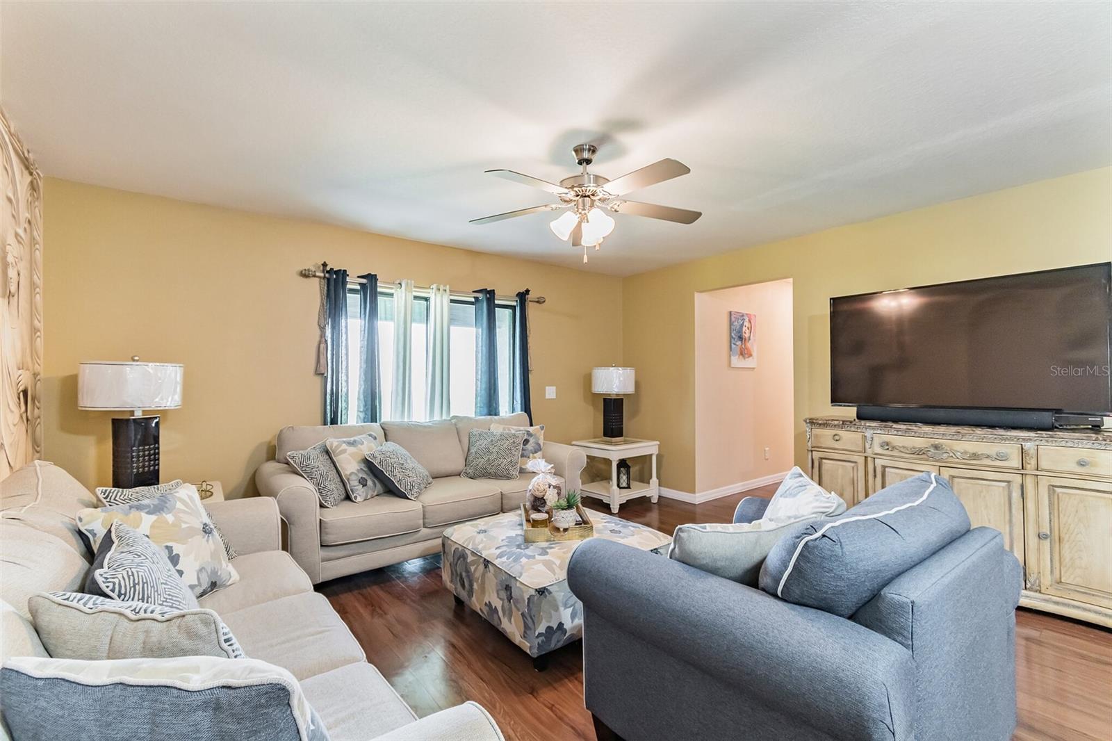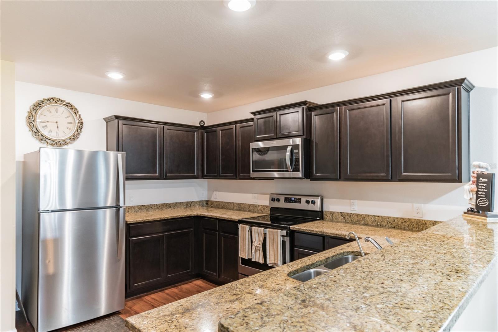 WELCOME! READY TO MOVE IN NOW a spacious one story retreat located within the highly desirable Orlando area community of Ridge at Swan Lake. This home features an open concept floor plan, 4 bedrooms, and 2 full baths complete with over $10, 000 in upgrades including energy-efficient appliances, spacious granite/quartz countertops, custom wood cabinets, brushed nickel hardware, and an attached two-car garage. The Estero II incorporates a master suite complete with a massive walk-in closet, as well as a utility room, covered back patio, and front yard landscaping and irrigation. In addition, Ridge at Swan Lake offers residents beautiful nature views filled with many beautiful lakes, and walking/biking trails and is just minutes from fine dining, shopping, Disney World and LEGOLAND.