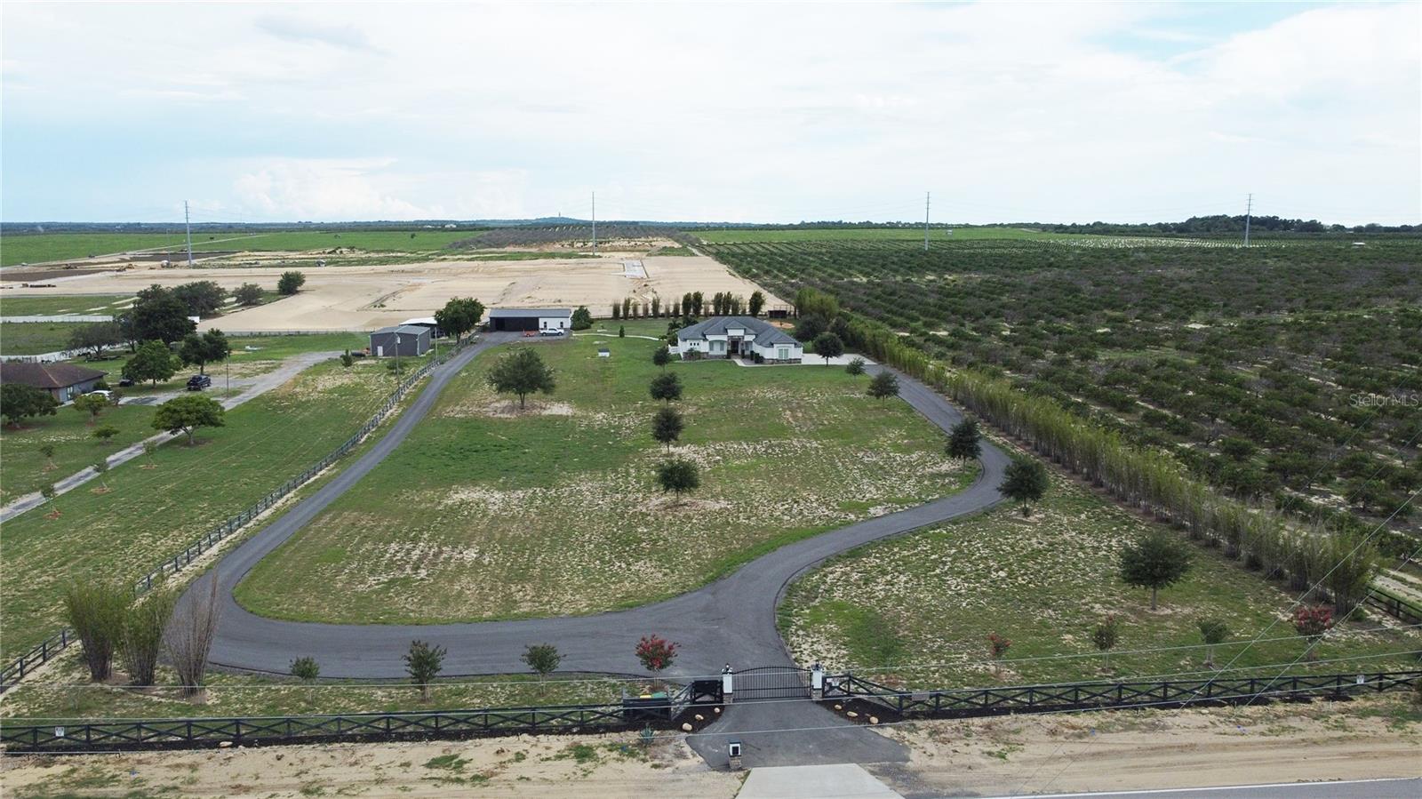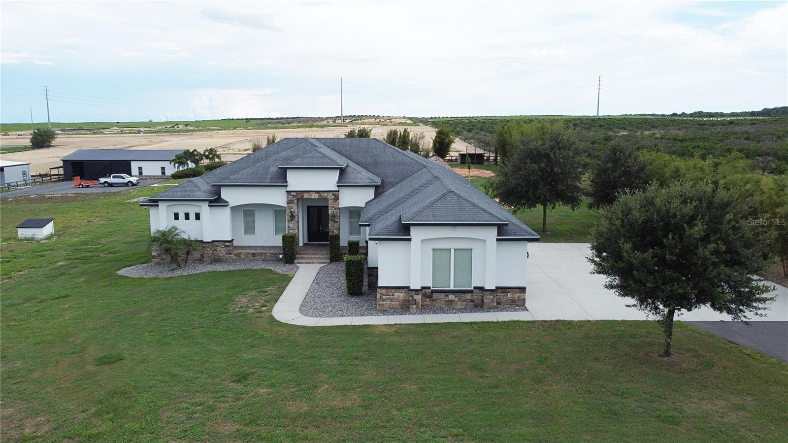 One or more photo(s) has been virtually staged. Welcome to your private 5-acre luxury estate, perfectly located in the rapidly growing I-4 corridor between Tampa and Orlando. This gated and fully fenced property features a custom 4-bedroom, 3-bath main residence with a bonus room, highlighted by a chef’s kitchen with quartz counters, massive island, two built-in refrigerators, ice maker, wine refrigerator, gas GE Monogram cooktop with pot filler, vented hood, built-in oven and microwave, and hidden pantry. The expansive great room with coffered ceilings, electric fireplace, and powered shades overlooks the pool, while the owner’s suite offers a spa-style bath, custom walk-in closets, and private lanai access. Additional features include spacious secondary bedrooms, a well-appointed laundry room, and an oversized 3-car garage. A separate ADU provides a full kitchen, great room, bedroom, and bath, ideal for multi-generational living or guests. Outdoor living shines with a covered lanai with retractable screens, resort-style pool, and a large tiki hut with summer kitchen, wet bar, and fire pit. A 1,600 sq. ft. outbuilding provides space for RVs, boats, or hobbies. This one-of-a-kind property combines elegance, functionality, and space in a serene Central Florida setting.