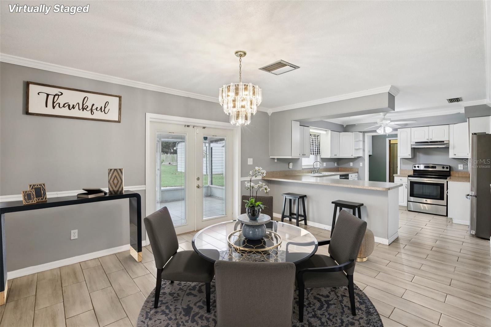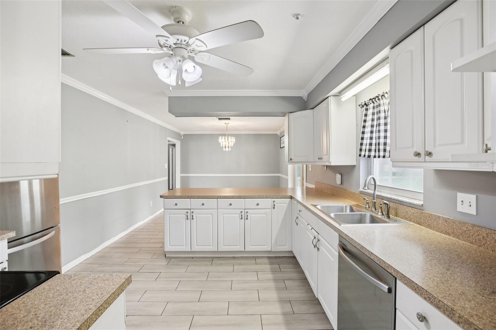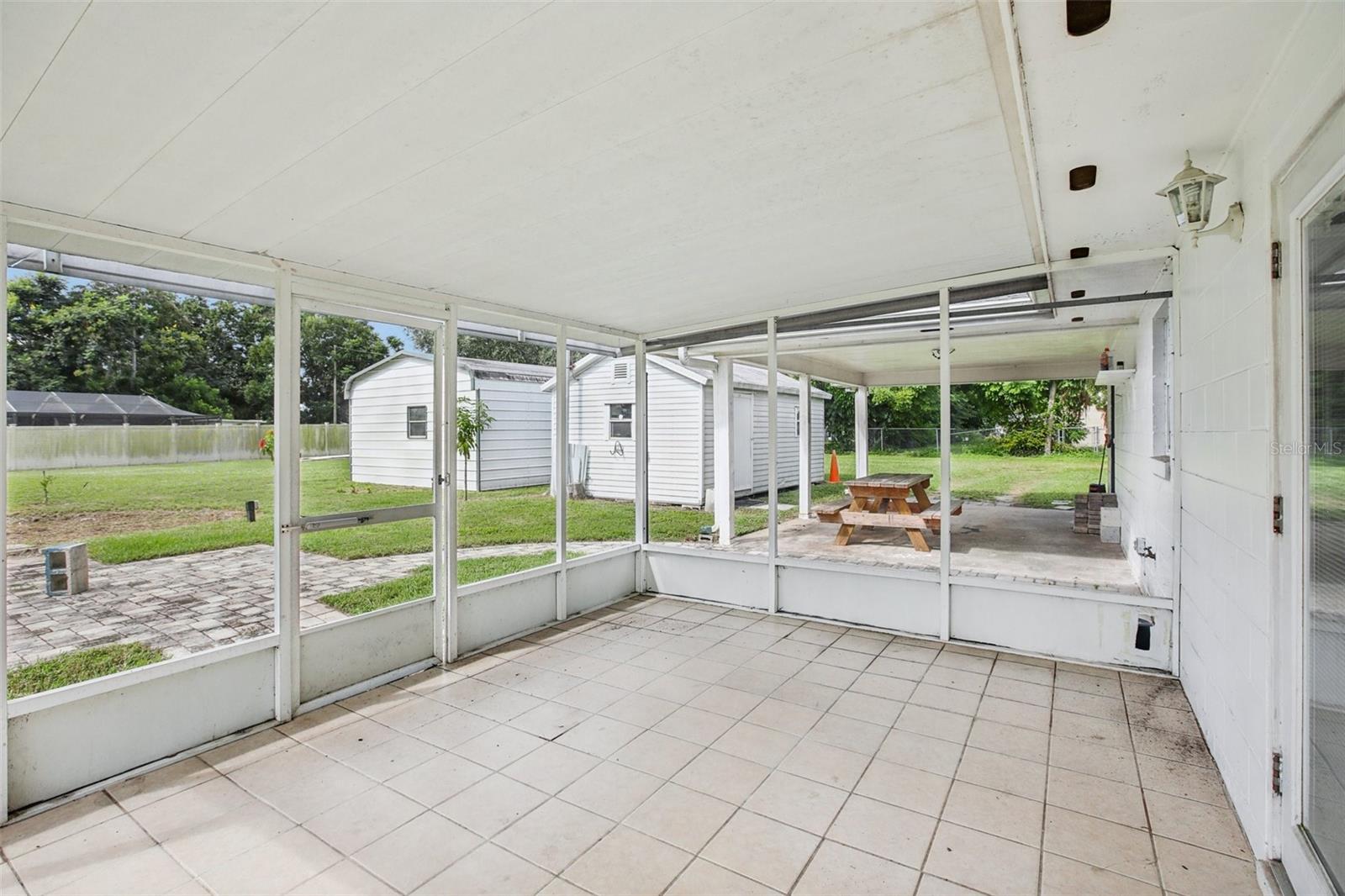 SELLERS ARE MOTIVATED!!! HUGE PRICE IMPROVEMENT!! Come and see this beautifully updated 4-bedroom, 2-bathroom home offering just over 2,000 square feet of comfortable living space. Set on a spacious corner lot with a circular driveway, it delivers fantastic curb appeal from the moment you arrive. Inside, wood-look tile flooring flows through expansive living areas freshly painted for a clean, modern feel. The thoughtfully designed eat-in kitchen features counter seating, sleek stainless steel appliances, and excellent storage—ideal for everyday meals and entertaining. The private primary suite includes its own en-suite bath, while three additional bedrooms provide flexibility for family, guests, or a home office. The updated hall bath showcases a tiled walk-in shower. Sliding doors open to a covered, enclosed lanai—perfect for year-round relaxation. An attached carport offers flexible space for parking or additional entertaining, complemented by two exterior sheds and an indoor utility room for extra storage. A newer roof adds peace of mind. Conveniently located and truly move-in ready, this corner-lot gem has it all. Schedule your private showing today!