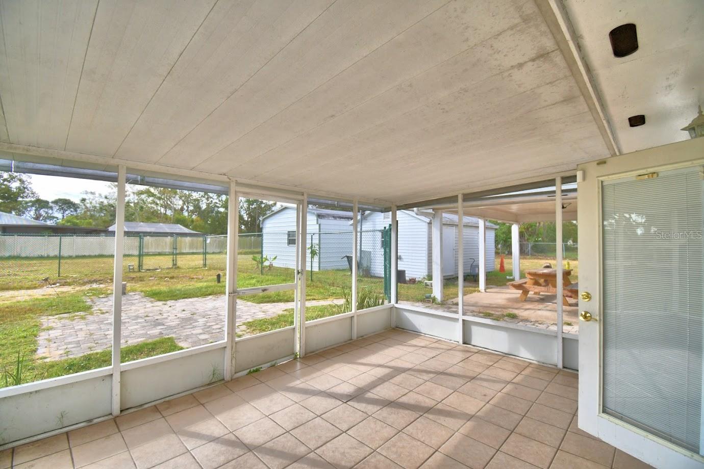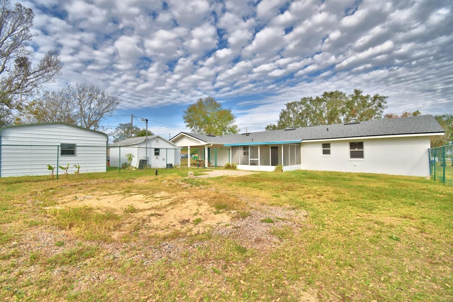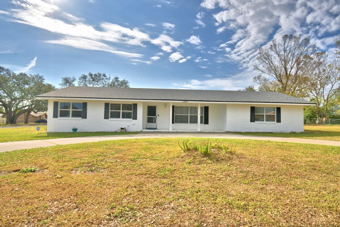 This home sits on a big corner lot with a partially fenced rear yard accessed from lanai. Circular drive and front entry way brings you into a large and bright living room and into the kitchen and dining area and circles around into a bonus room with plenty of space to play, work at home, you name it, this home is very versatile. 3 bedrooms and 2 baths with plenty of closet space. Newer roof, central air, and freshly painted exterior. Newer tile floors throughout really pop against the tastefully painted interior. Exterior sheds (2) w/garage and carport, all with electricity is what you've been dreaming of!