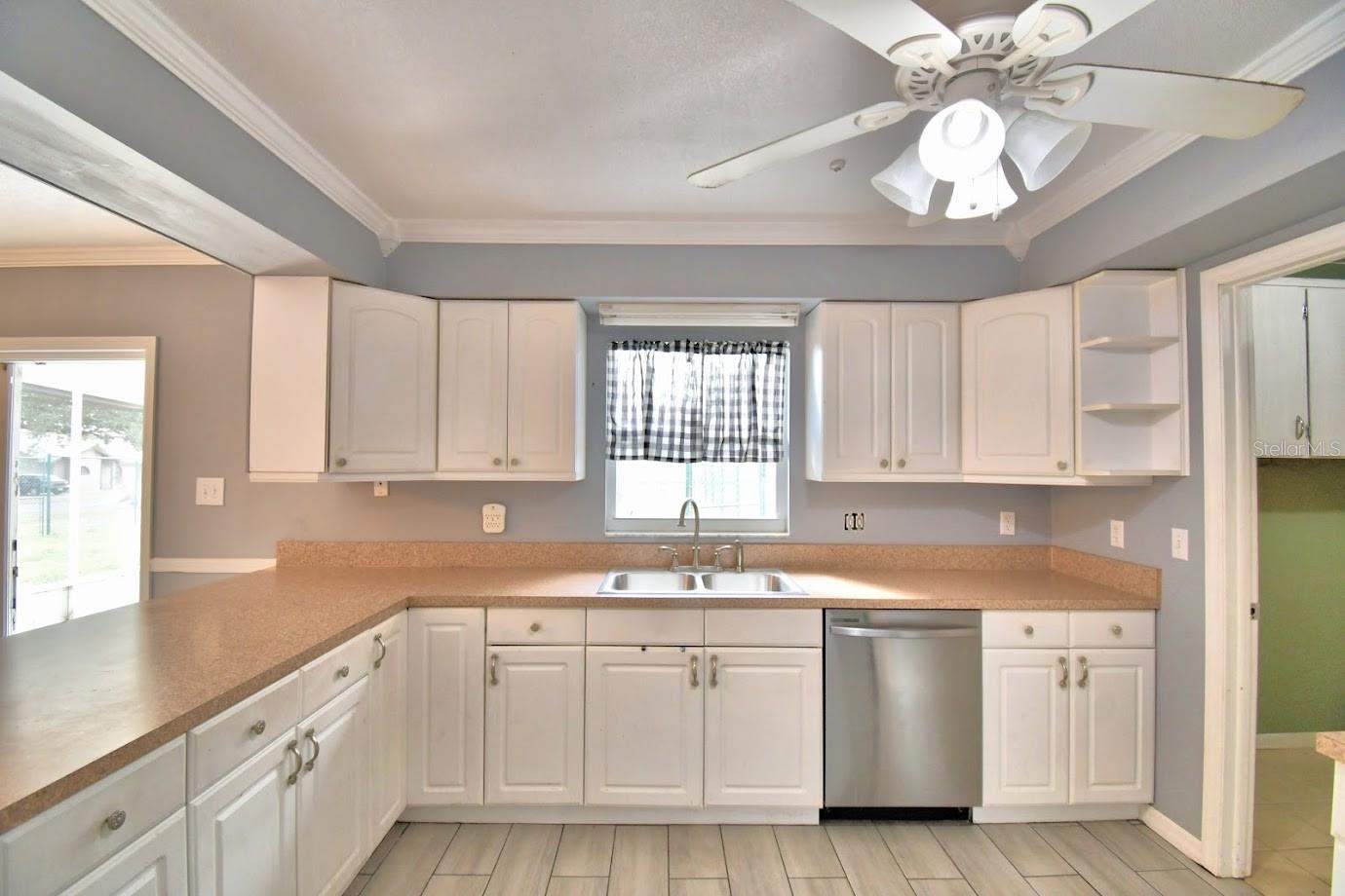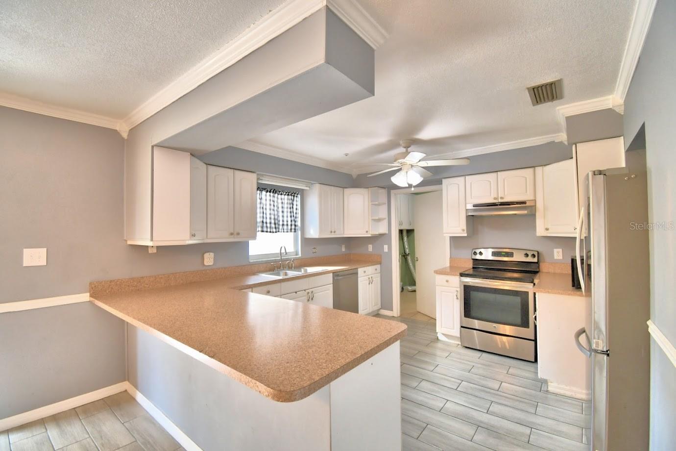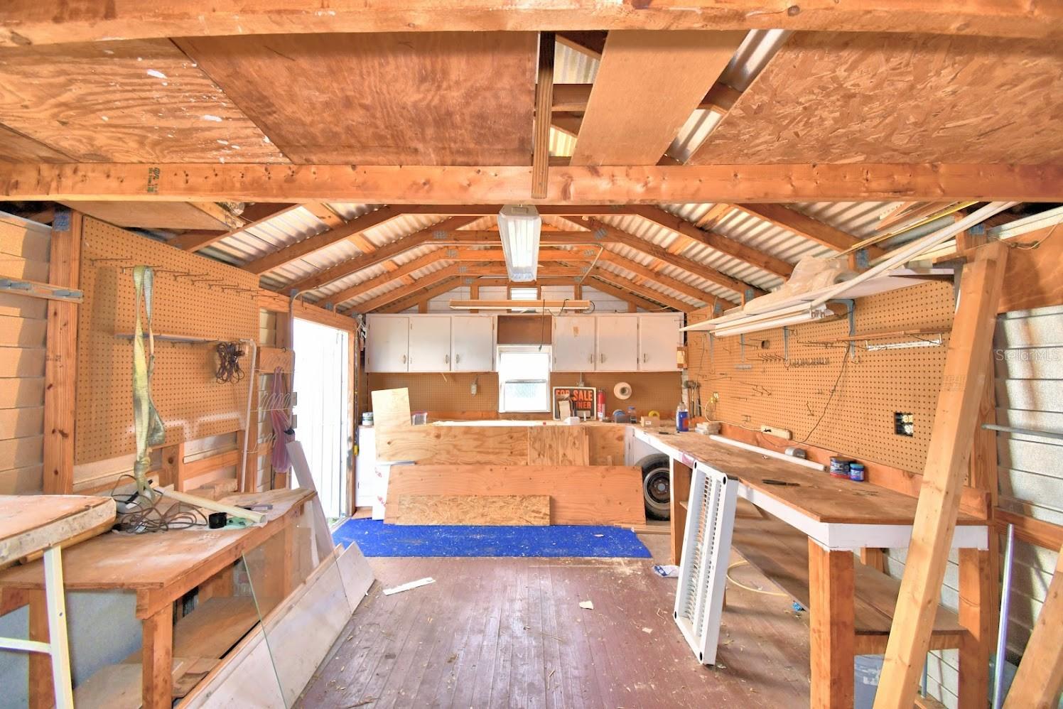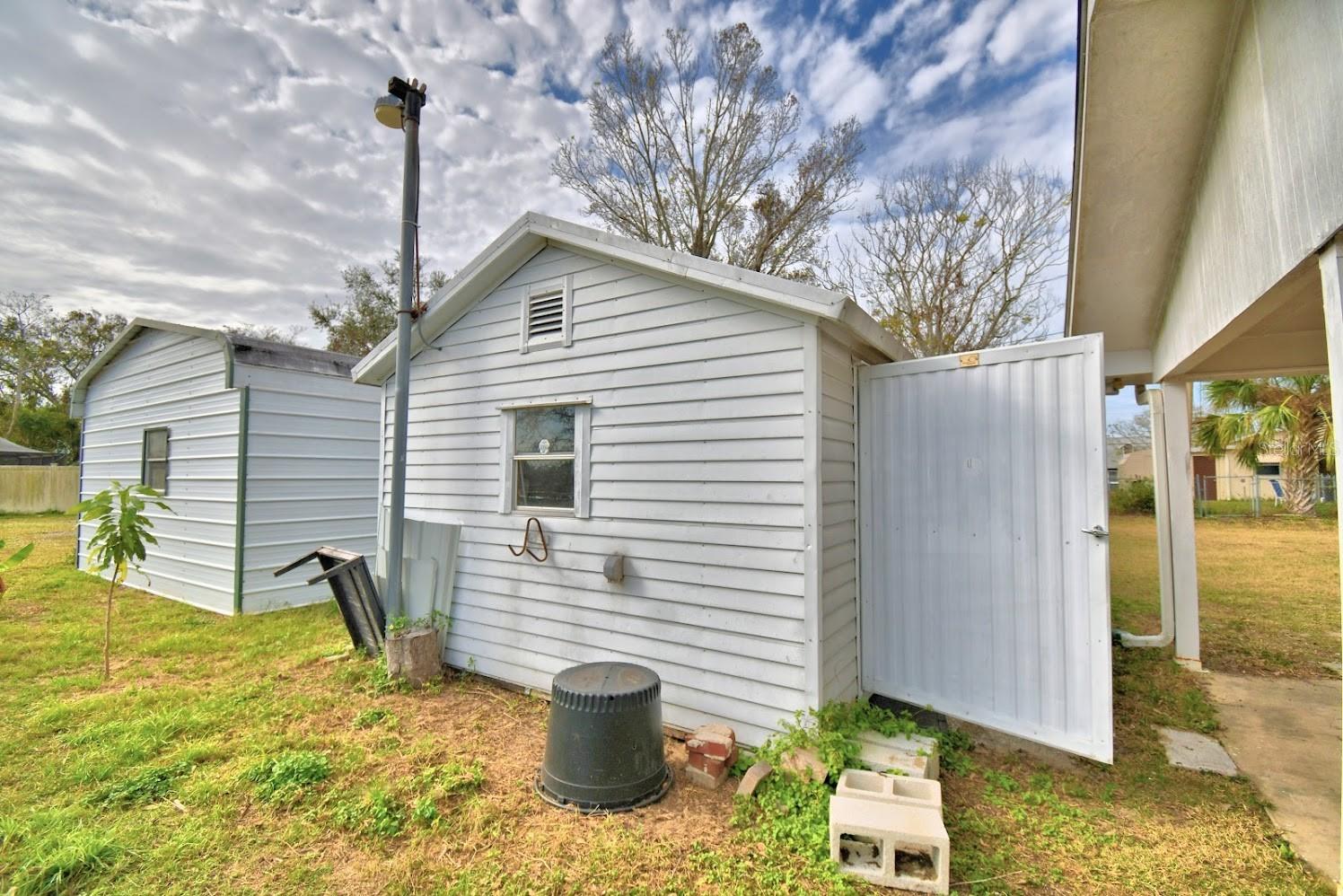 This home sits on a big corner lot with a partially fenced rear yard accessed from lanai. Circular drive and front entry way brings you into a large and bright living room and into the kitchen and dining area and circles around into a bonus room with plenty of space to play, work at home, you name it, this home is very versatile. 3 bedrooms and 2 baths with plenty of closet space. Newer roof, central air, and freshly painted exterior. Newer tile floors throughout really pop against the tastefully painted interior. Exterior sheds (2) w/garage and carport, all with electricity is what you've been dreaming of!