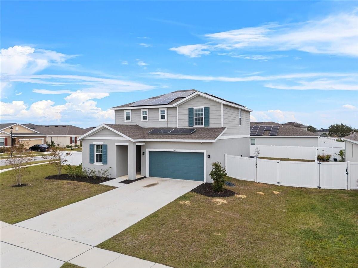 Short Sale. Short sale process approved!!!! Offer still must be approved by the bank! Welcome to this energy-efficient home at 245 Hillcrest Dr in Dundee, Florida. This spacious 2,155 square foot house features four bedrooms and three bathrooms, with a thoughtful layout spread across two floors. Situated on a corner lot, the property offers excellent curb appeal and includes a fully fenced backyard for added privacy and security. The first floor features a versatile bedroom that's perfect as a home office or guest room, complete with its own adjacent bathroom. The well-designed kitchen stands out with dual pantries and a striking island topped with designer pendant lighting. The open-concept layout seamlessly connects the kitchen to both the living area and dining space, where glass sliders bring in natural light. Upstairs, you'll find three additional bedrooms and a convenient laundry room. The oversized primary bedroom offers a private retreat with its en-suite bathroom, featuring twin vanity sinks and a walk-in shower. The location couldn't be better - you're just minutes from shopping centers, restaurants, and major roadways. This move-in ready home combines practical features with modern comfort, making it an ideal choice for families seeking space and convenience. The solar power system adds long-term value while helping reduce monthly utility costs. You can feel secured at all times with the installed security system. Contact us today to schedule your private viewing of this fantastic property in Dundee.