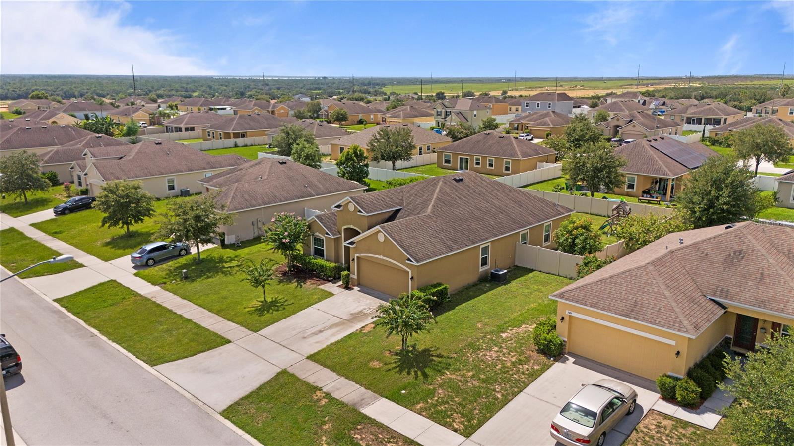 Come see this spacious 3-bedroom, 2-bathroom home with a flexible room that can be converted into a bedroom or used as an office. This house has a brand new roof and is situated on a 0.22-acre lot in Mable Loop Ridge. It features an open-concept kitchen with granite countertops, an island with a breakfast bar, and space for a dining room, along with a huge living room. The master bathroom boasts a double sink vanity, a separate shower, and a garden tub, along with a walk-in closet. Located just 15 minutes from Legoland and 45 minutes from Disney World, this home is also right around the corner from the Lake Marie walking path. Come and make this home yours!